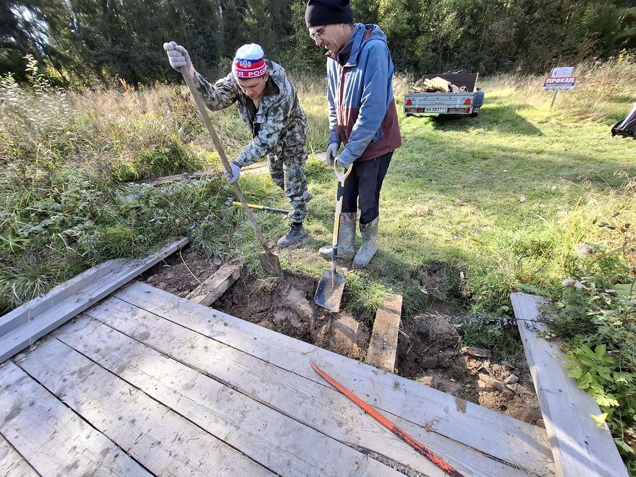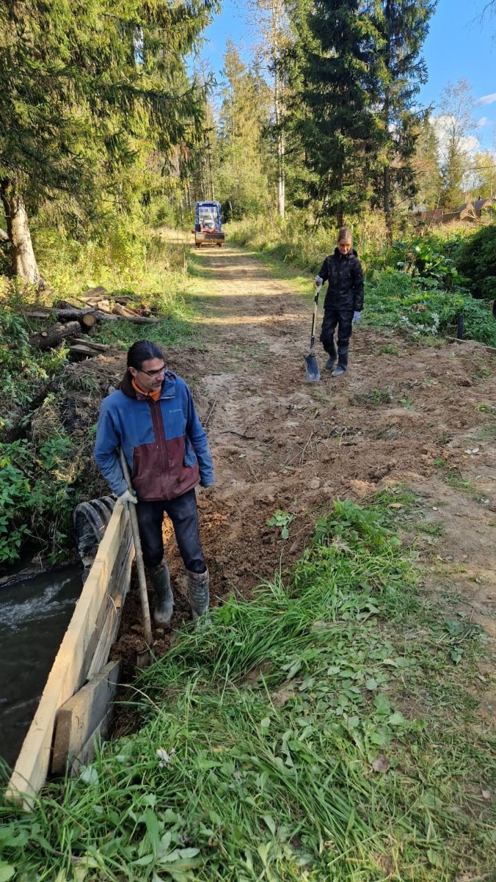 Силами наших операторов за три дня удалось отремонтировать и восстановить три моста на терренкуре, которые были сильно повреждены летними паводками! Два моста пришлось почти полностью восстанавливать! Потребовалось извлекать огромные трубы, прочищать русло речки и закапывать все это заново, практически с нуля переделывая проезд... В одну из таких труб нам даже пришлось попросить залезть Сергея Алтунджи и срезать болгаркой саморезы так как они торчали изнутри сантиметра на четыре... Этими саморезами нам пришлось скреплять две части большой трубы, чтобы в ней не застревал крупный мусор.