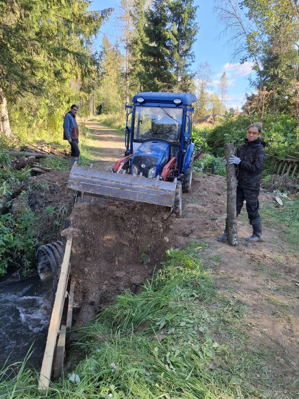 Благодаря нашей технике, трактору и нашему опытному механику-оператору Саше Репетухе, удалось проделать все эти работы относительно быстро, так как силами волонтеров и лопатами, пришлось бы повозиться здесь неделю, а то и больше... Заодно, мосты удалось расширить и модернизировать для более комфортного проезда техники во время подготовки трассы и лыжников, особенно во время проведения массовых стартов!