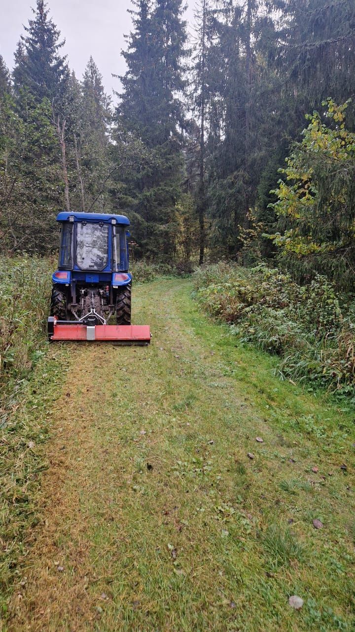 Трасса прокошена нашим трактором с косилкой - мульчером, расширена на столько, на сколько можно. По бокам трассы убраны подлесок и несколько упавших деревьев !