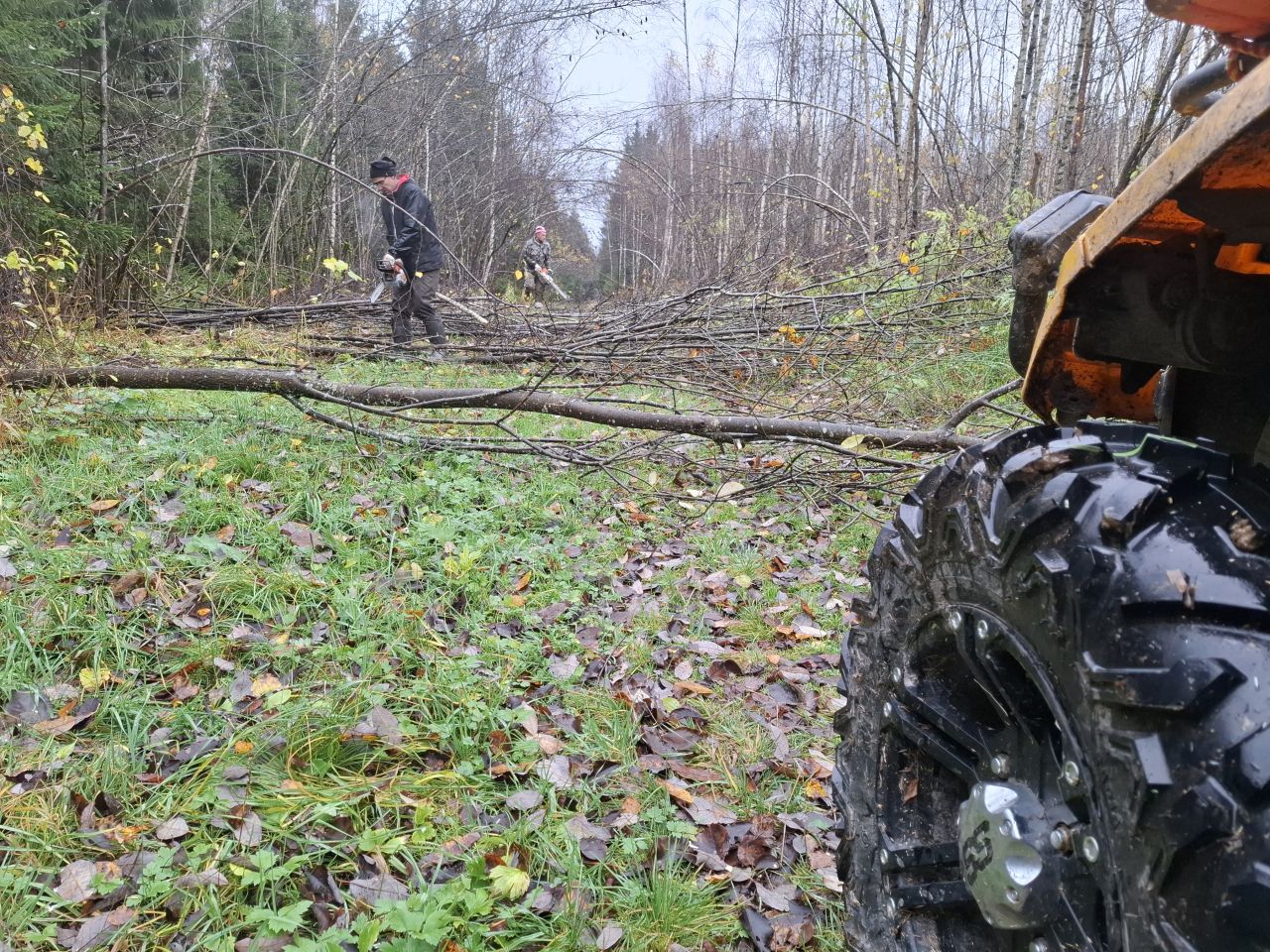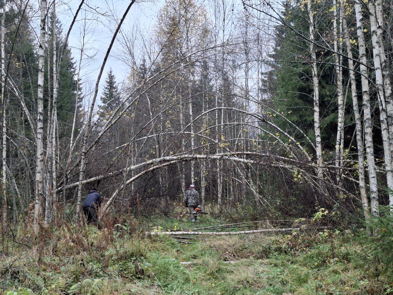 Наши операторы, в качестве волонтеров, выполняют поставленную задачу: распиловку поваленных и опасно нависших над трассой деревьев! Прошли уже практически половину трассы, работая весь день: с утра и практически до наступления темноты.