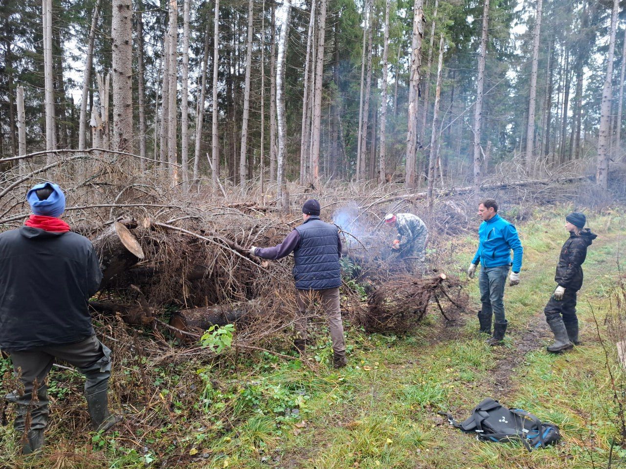 Будем складировать распиленные деревья, упавшие в результате майского снегопада.