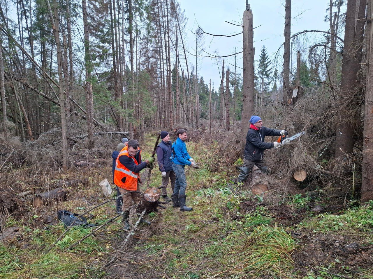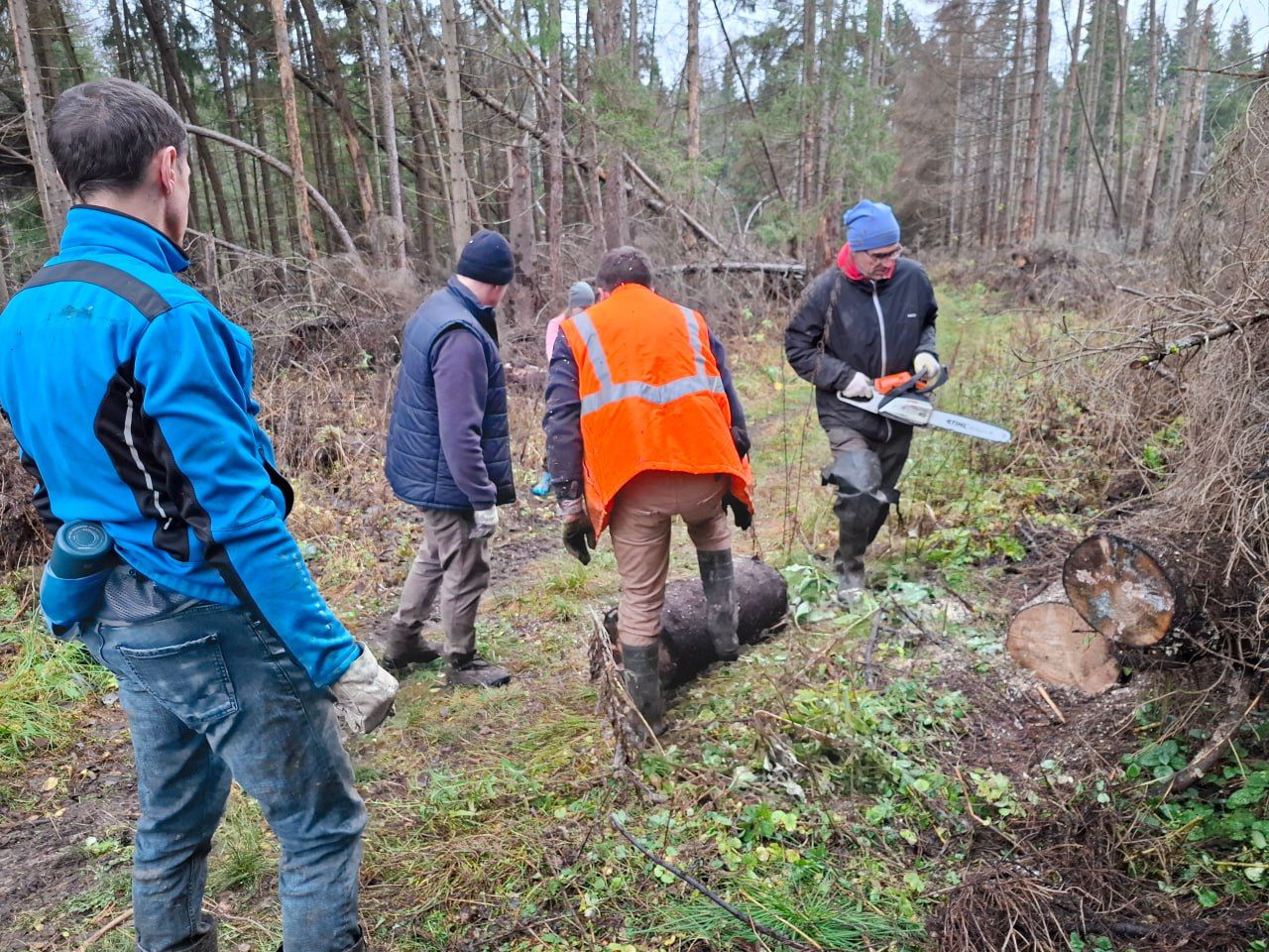 После того, как упавшие деревья будут распилены, проведем массовые субботники, чтобы навести на трассе порядок.