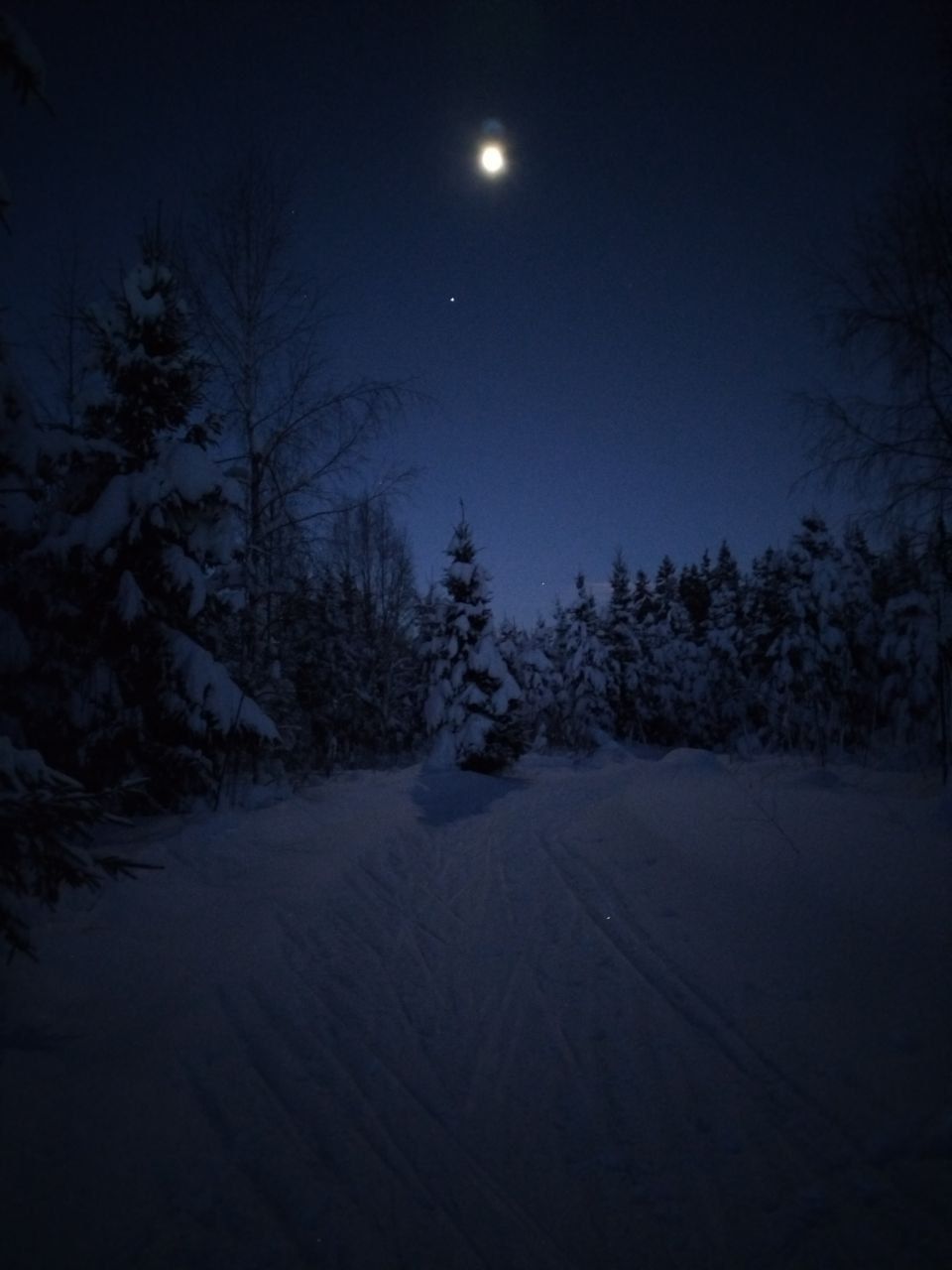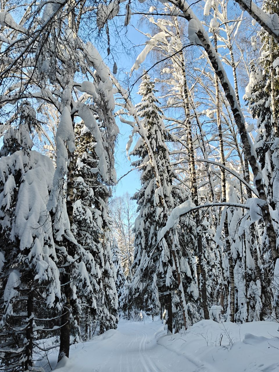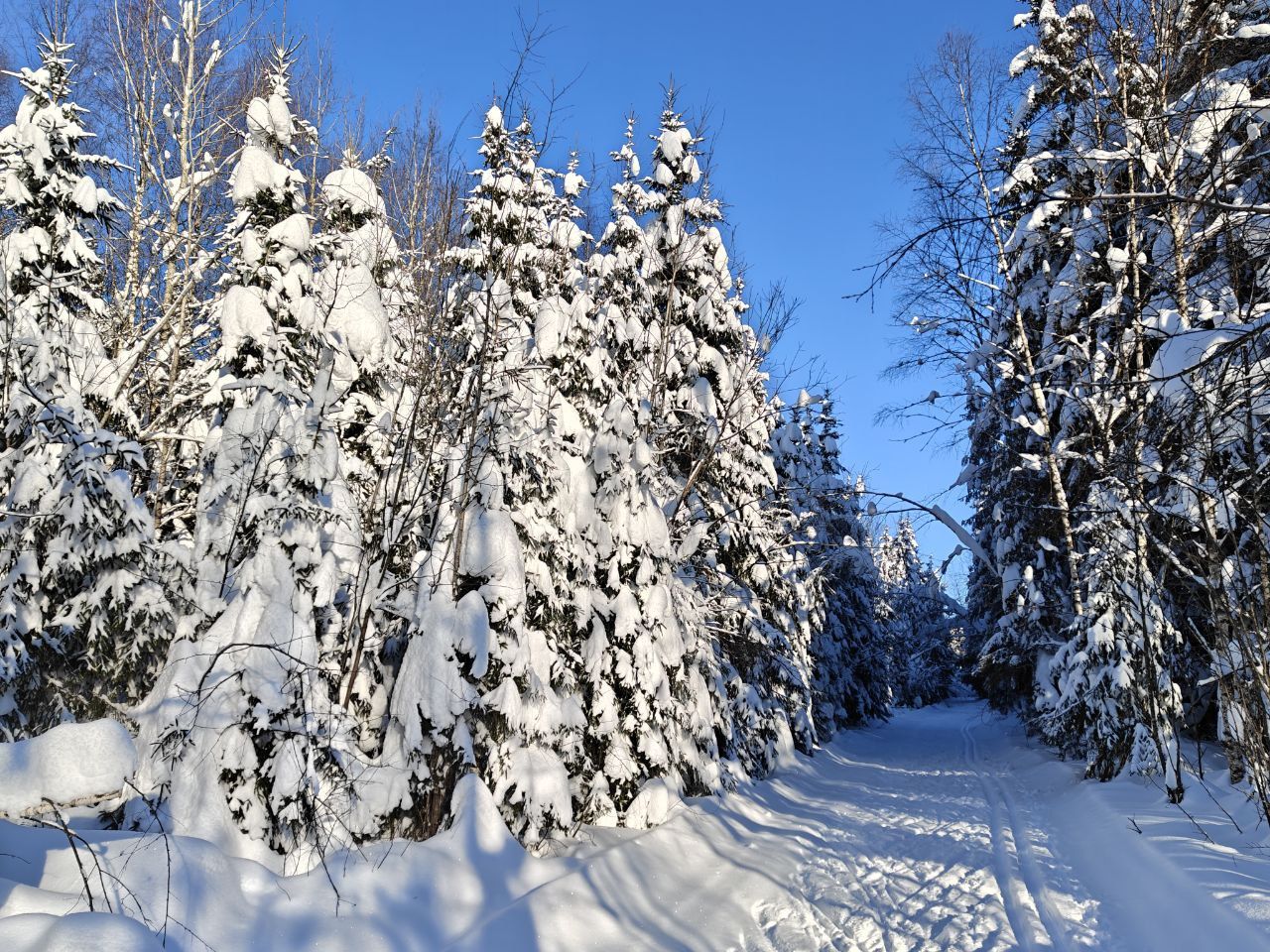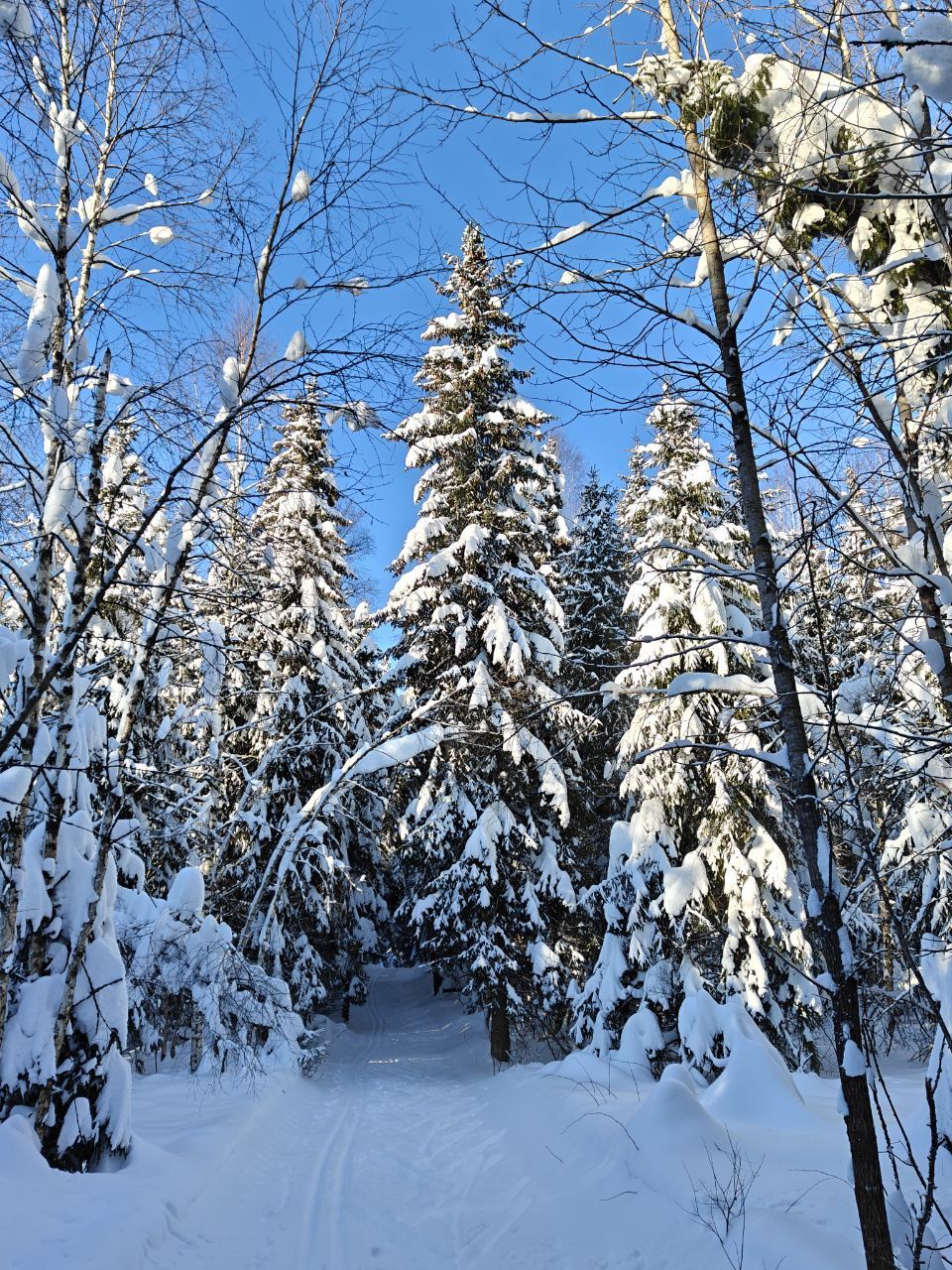 Народу мало, скольжение медленное, морозное. Трасса отлично подготовлена. Встречаются кочки снега с деревьев, еловый мусор местами, но всё это мелочи жизни
