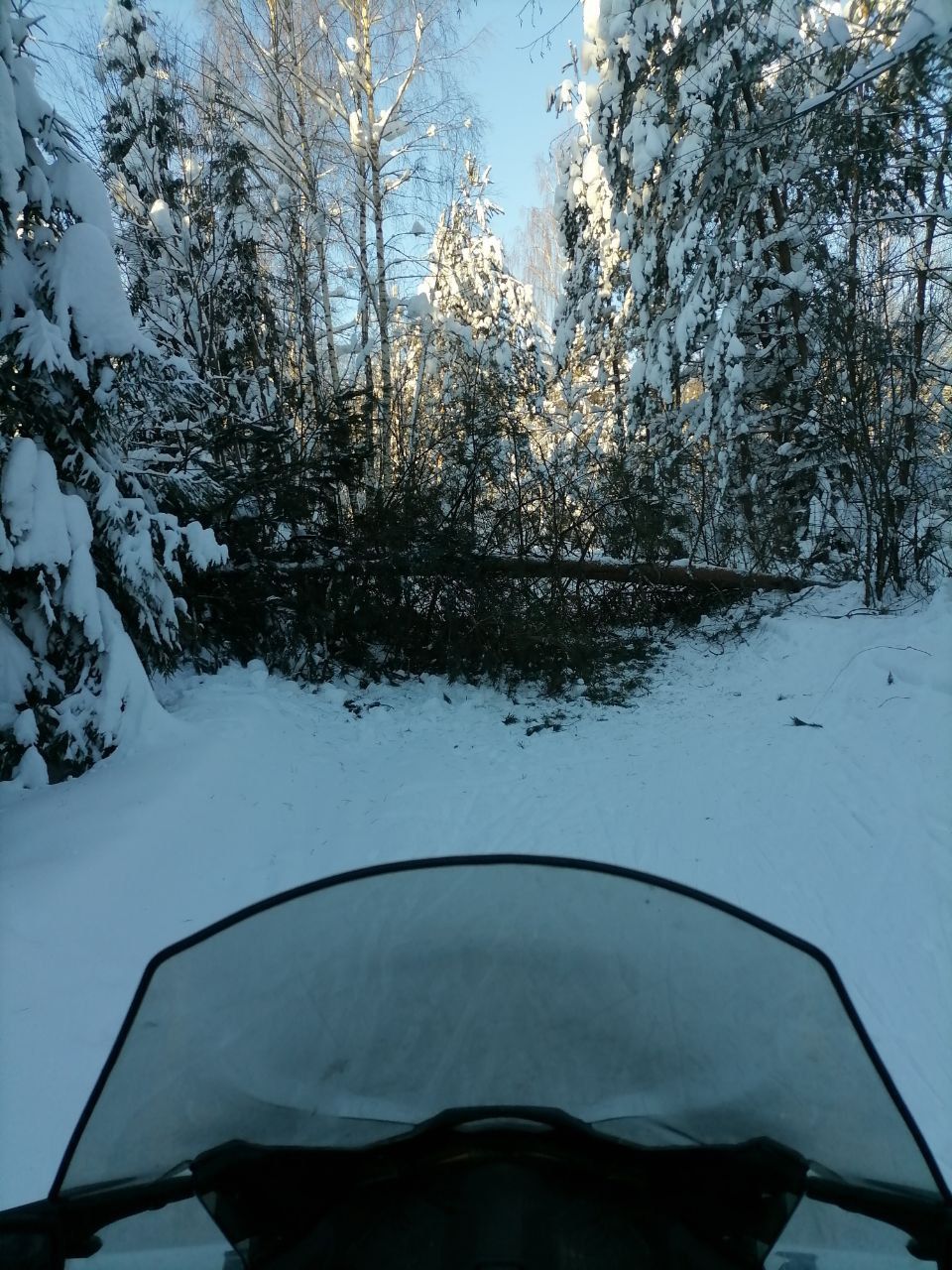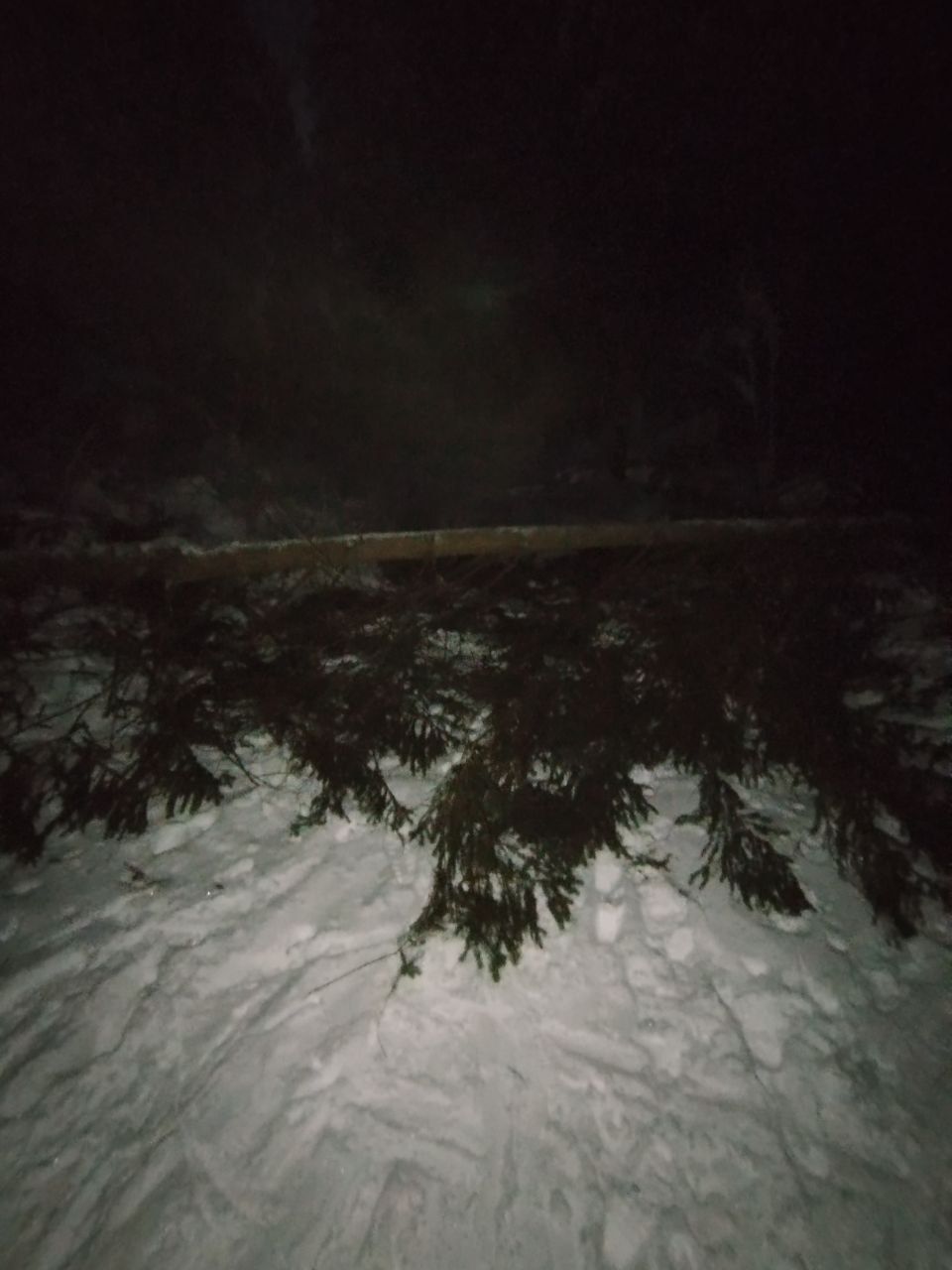 Лежащих деревьев насчитал 3, трасса сегодня не готовилась везде самотоп, любитель раскатали катающиеся, остальное всё засыпано снегом, ветвями. Жаль не сделал фотографии!