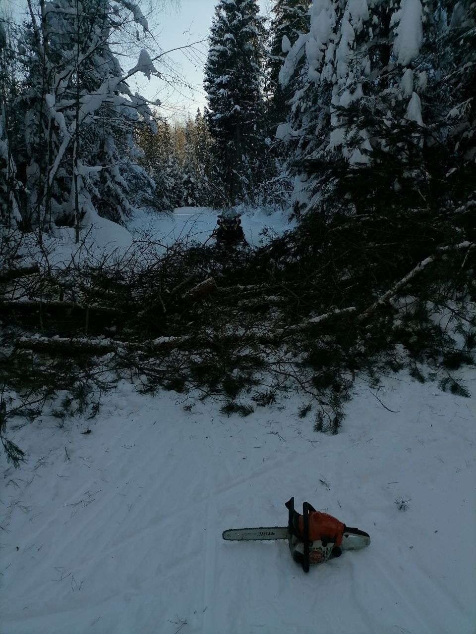 Во время подготовки трассы пришлось убирать множество упавших и опасно нависших крупных деревьев...