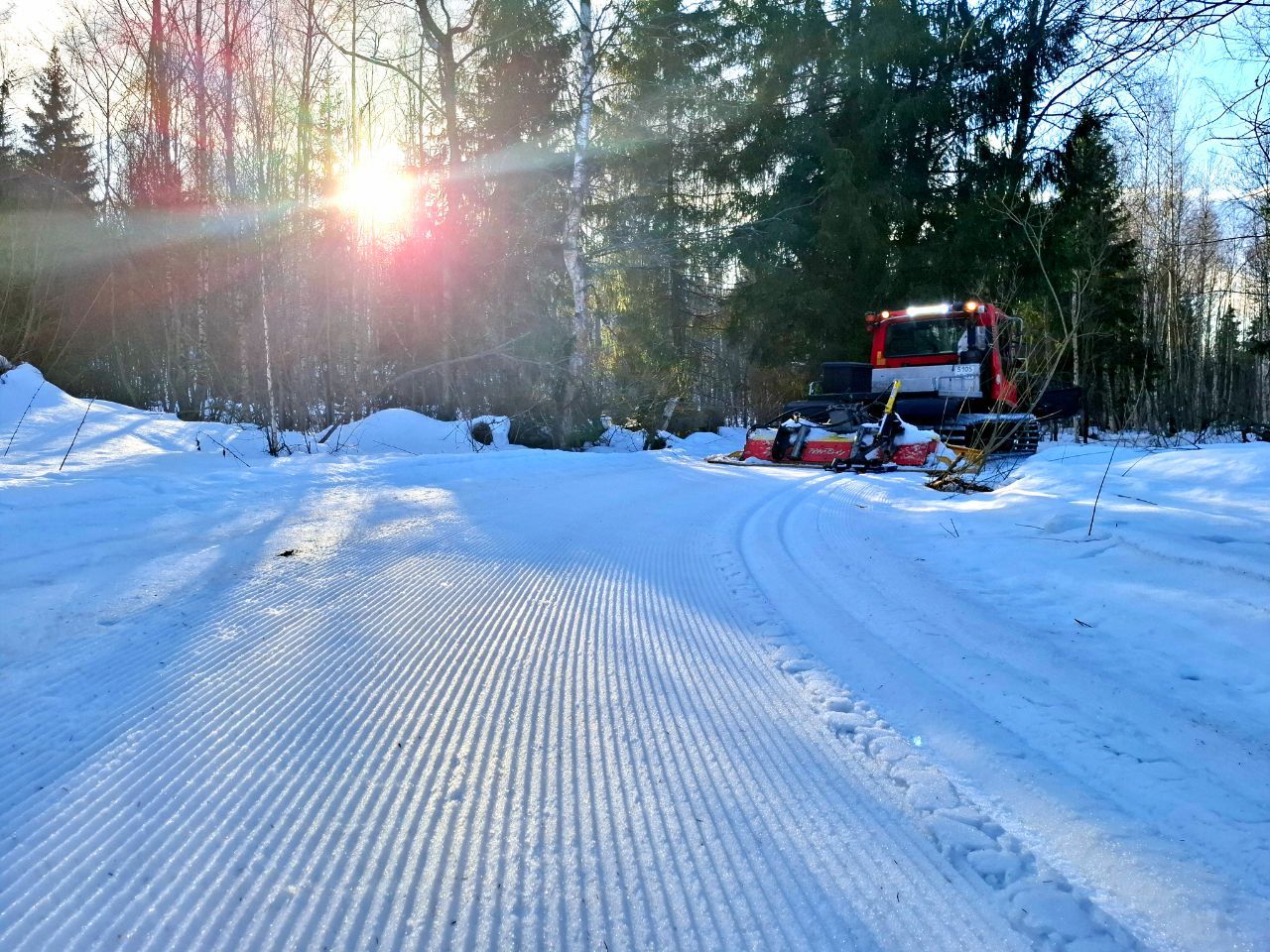 Завтра с утра заледенелый вельвет и следы от лыж будут убраны снегоходом с Габошей.