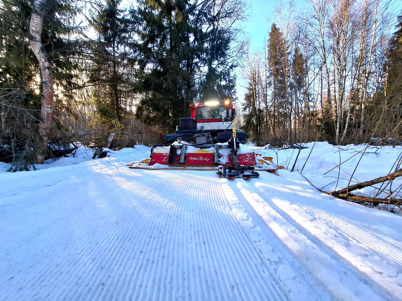 Вся трасса 17, 5 км (со срезками - 20км, за исключением сокращенных участков) с вечера готовилась ратраком.
