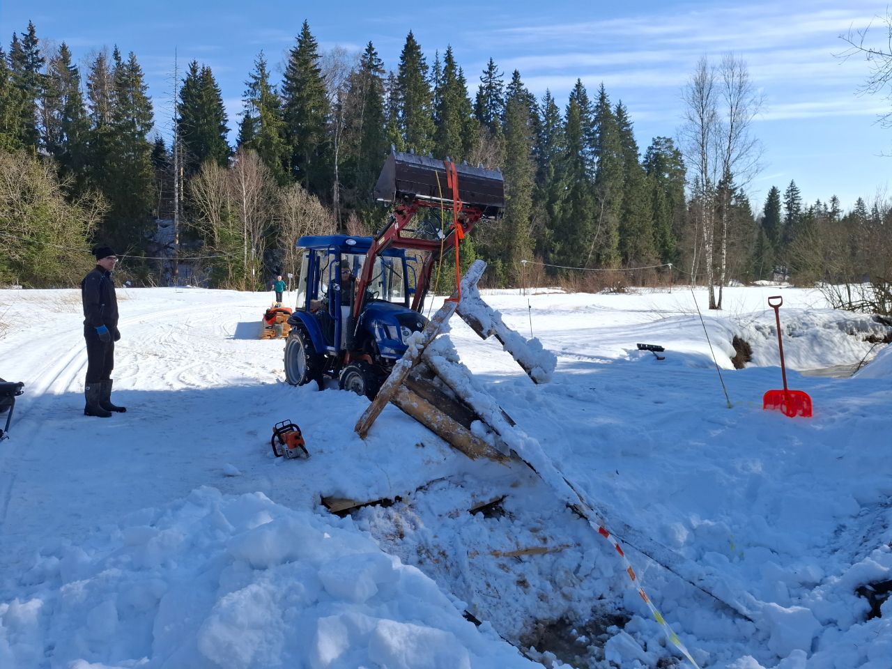 Также вчера наши операторы начали работы по восстановлению моста на Солнечной долине для комфортного проезда лыжников со старта экстрим-марафона Прощание со снегом - 2026!