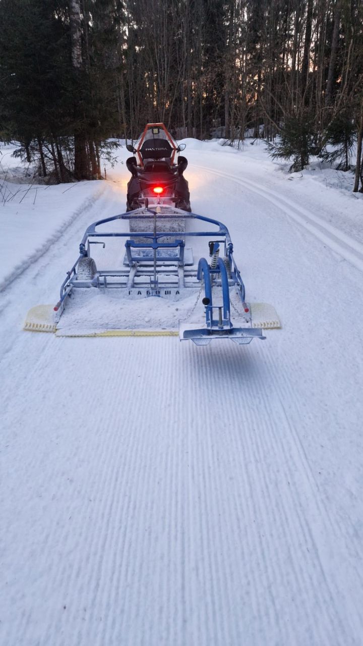 ❄️ Трасса и тюбинговая горка подготовлены снегоходом с Габошей.