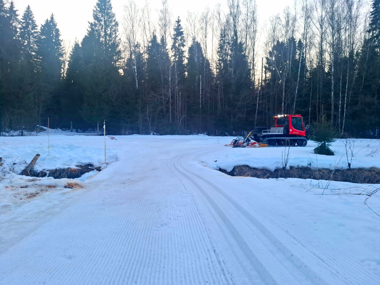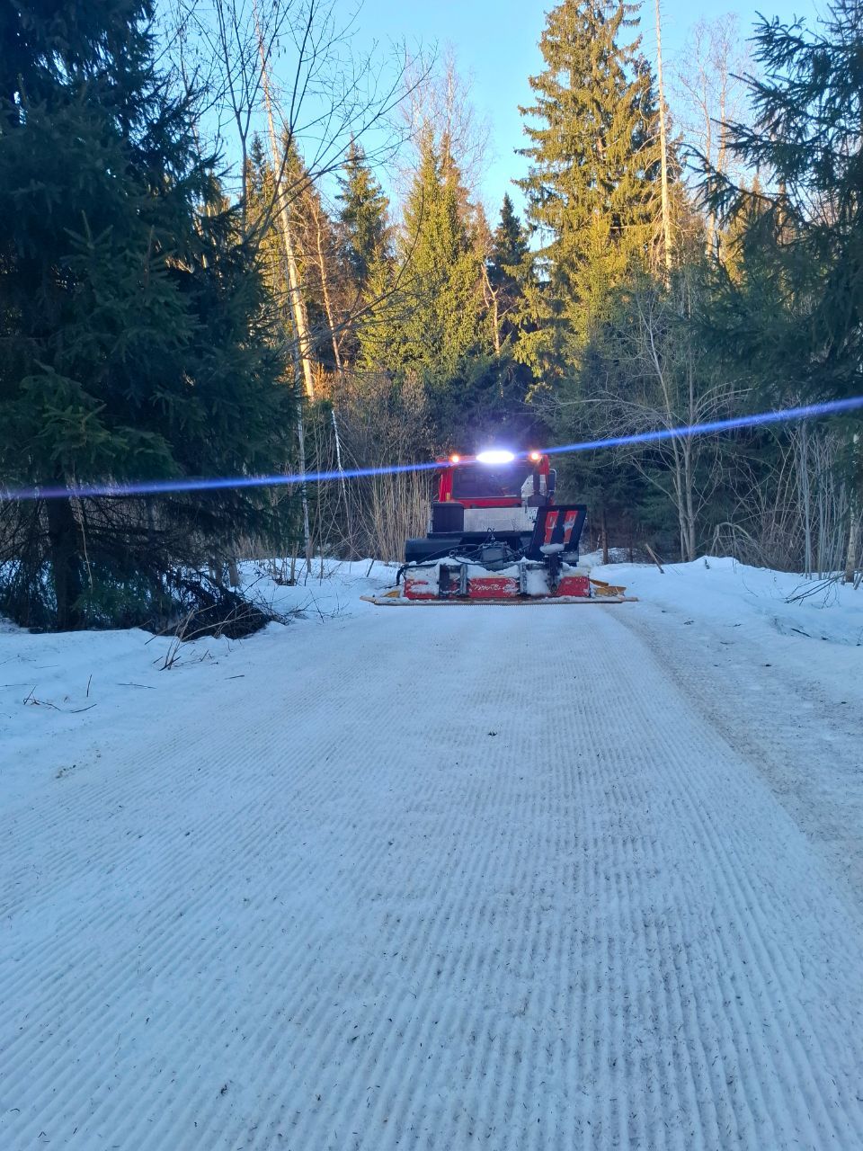 ❄ Трасса, пока есть такая возможность, готовилась ратраком и дежурным оператором А. Репетухой с помощником оператора М. Поселовой в вечернее время, когда в ГАБО начало подмораживать.