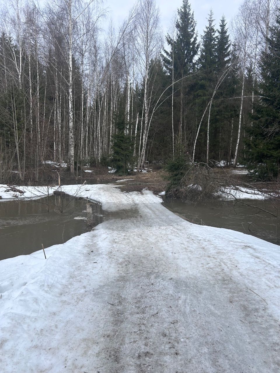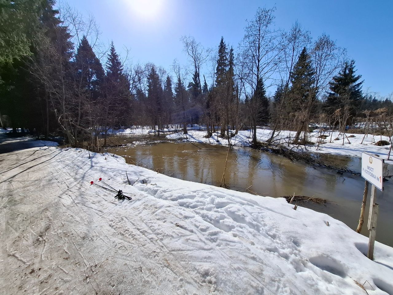 🔹По трассе "Турист" до моста 1 на р. Котловке (самый чистый маршрут) и обратно впротивоход (так как мост 4 сегодня начало затапливать водой, то подготовка круга через первую срезку на трассе "Турист" пока, до ухода воды, невозможна).