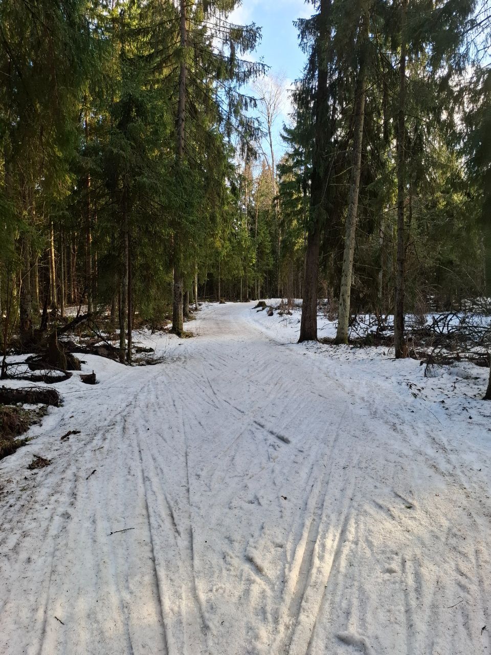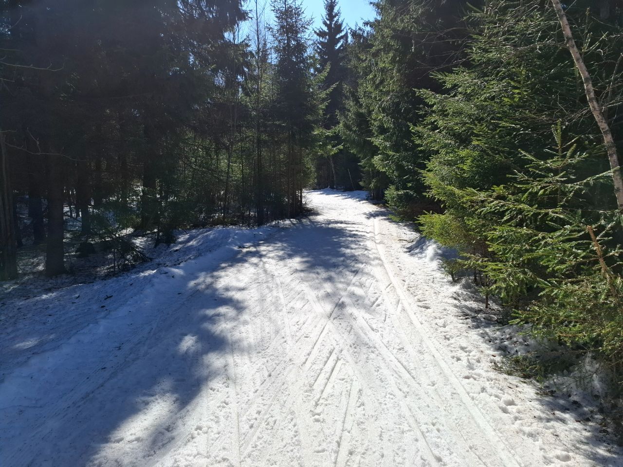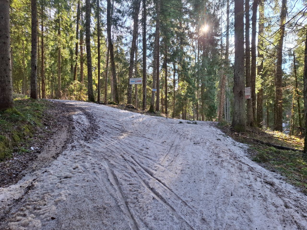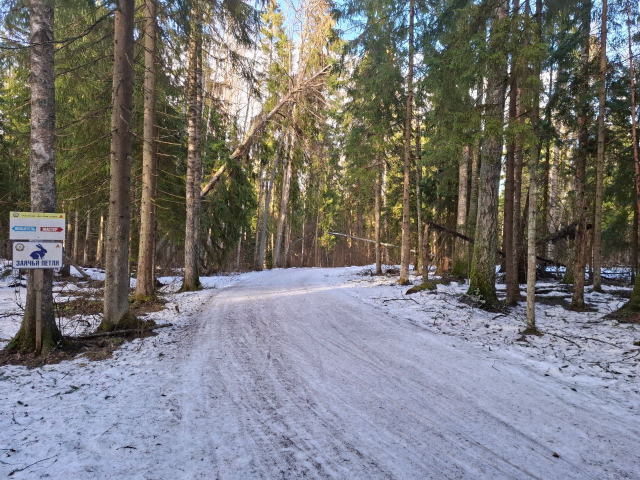 Но мне в лесу на "Любителе" очень понравилось! Там даже после обеда трасса жёсткая. Благодаря этому скольжение не хуже, чем на "Туристе", зато не приходится месить мокрую кашу.
