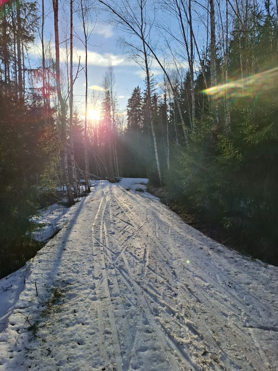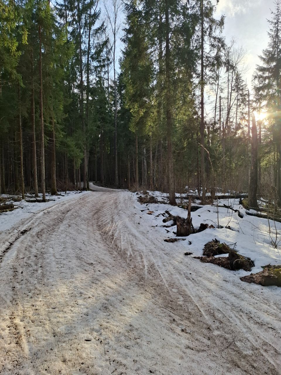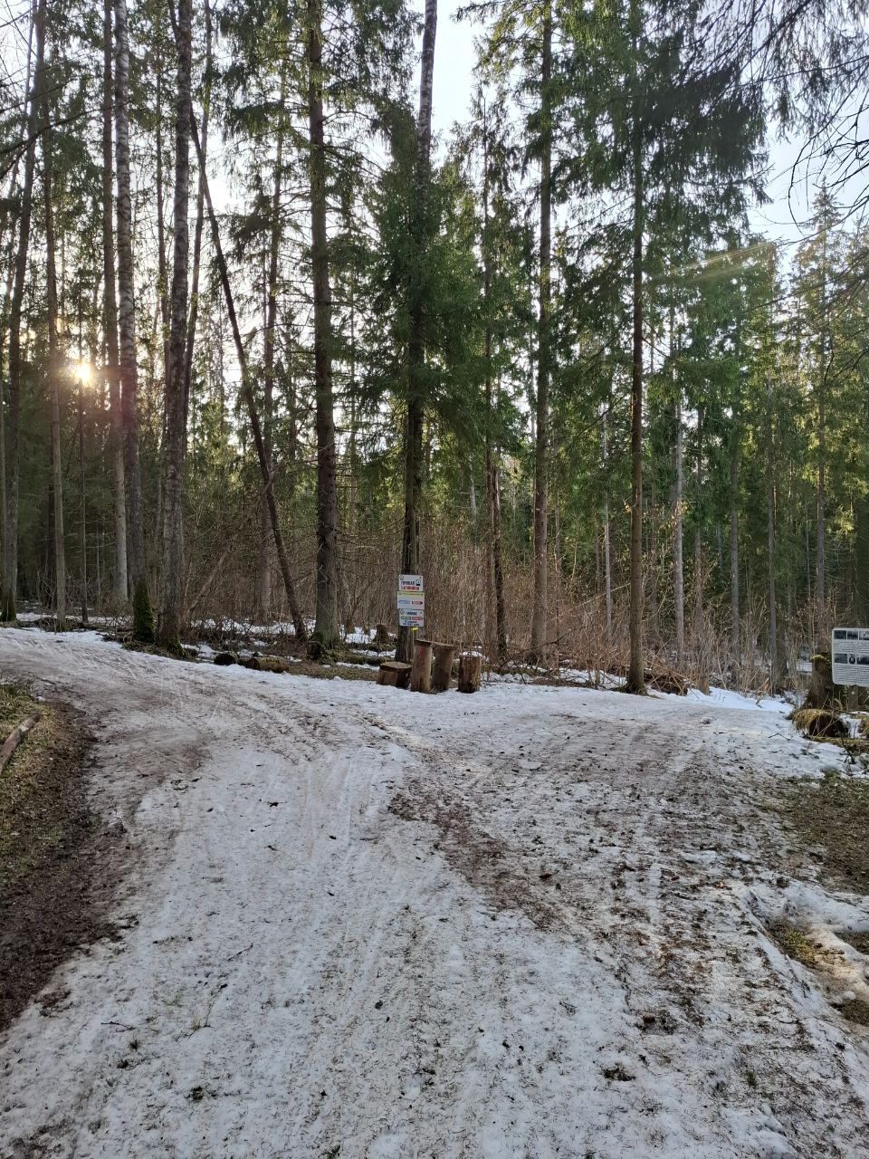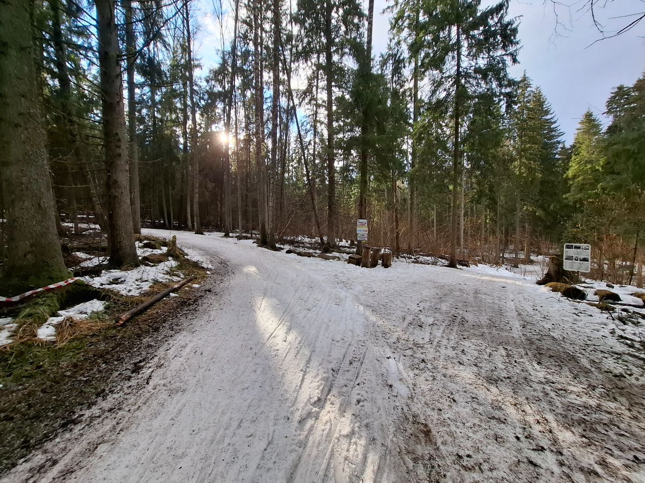 Но мне в лесу на "Любителе" очень понравилось! Там даже после обеда трасса жёсткая. Благодаря этому скольжение не хуже, чем на "Туристе", зато не приходится месить мокрую кашу.