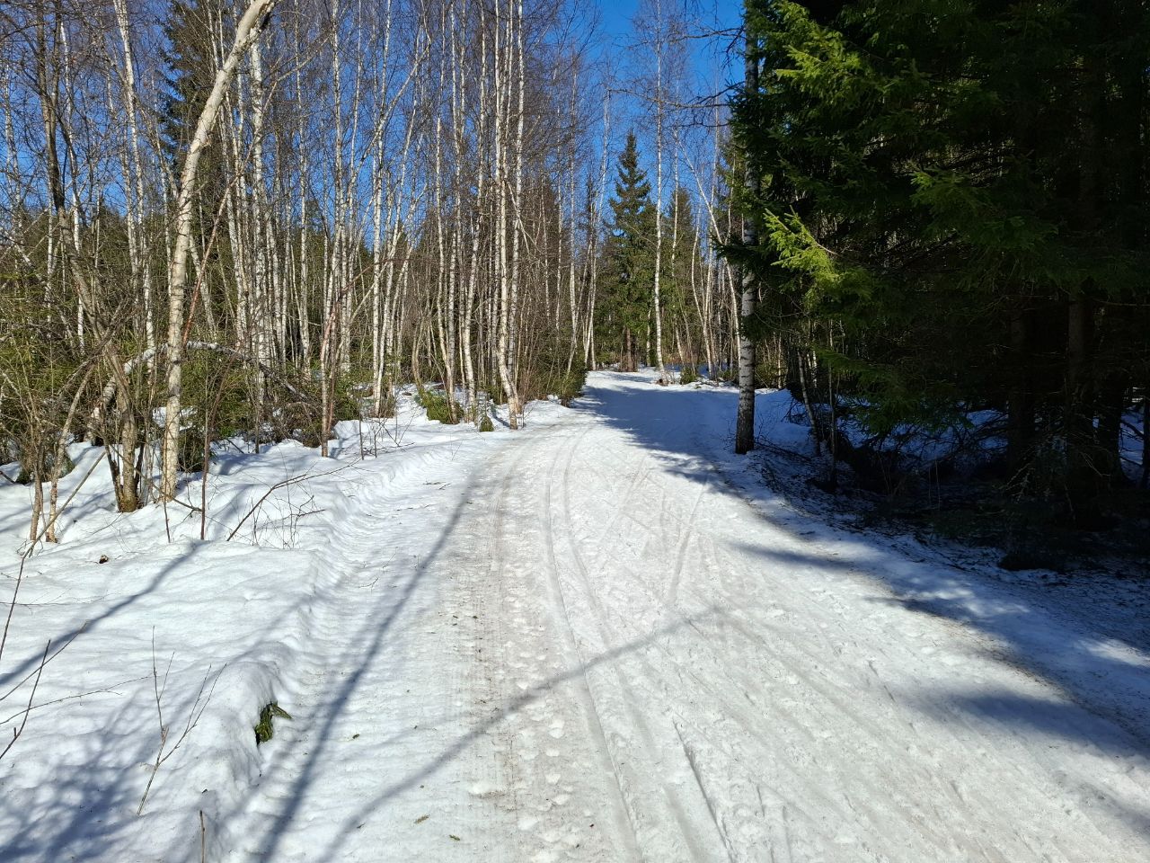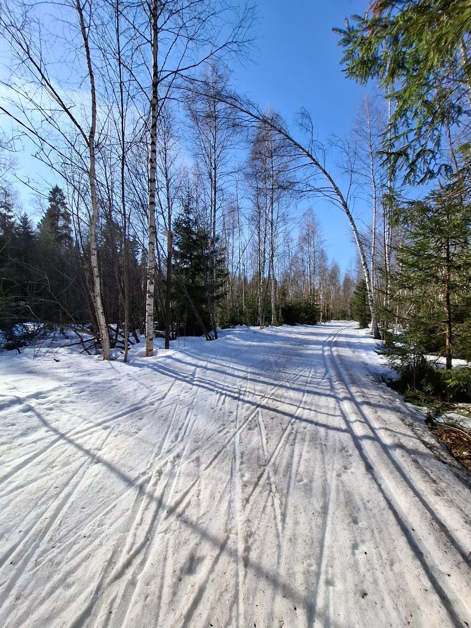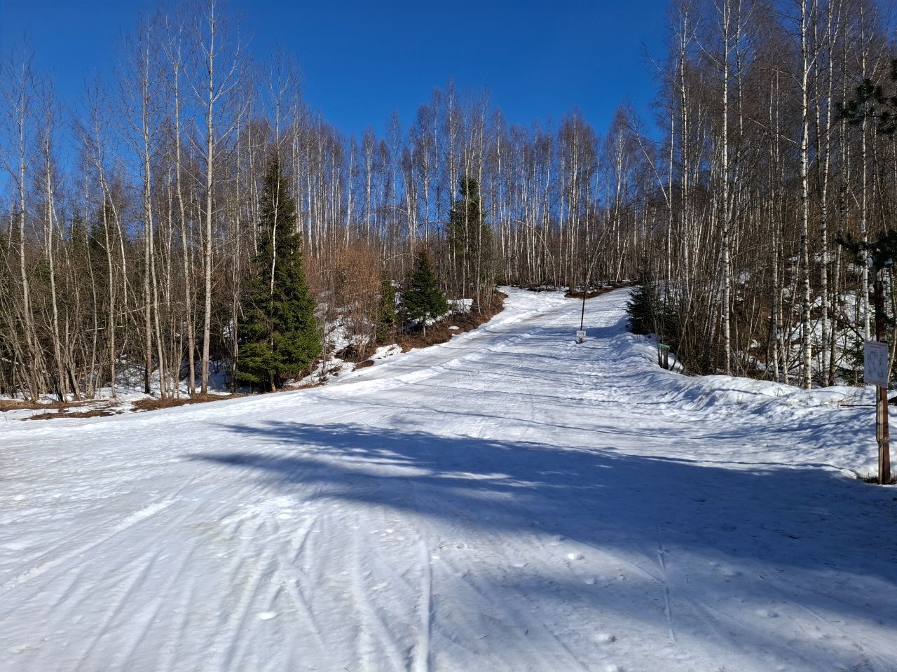 Проехал весь круг Турист+Мастер, 27 км. В целом все еще проезжаемо с небольшими препятствиями, и на плохих лыжах. По трассе - около старта где готовят - вообще все идеально, но к середине дня, конечно, распахано. Отдельные открытые куски по всей трассе даже лучше, чем те, что готовят, т.к. они не разбиты.