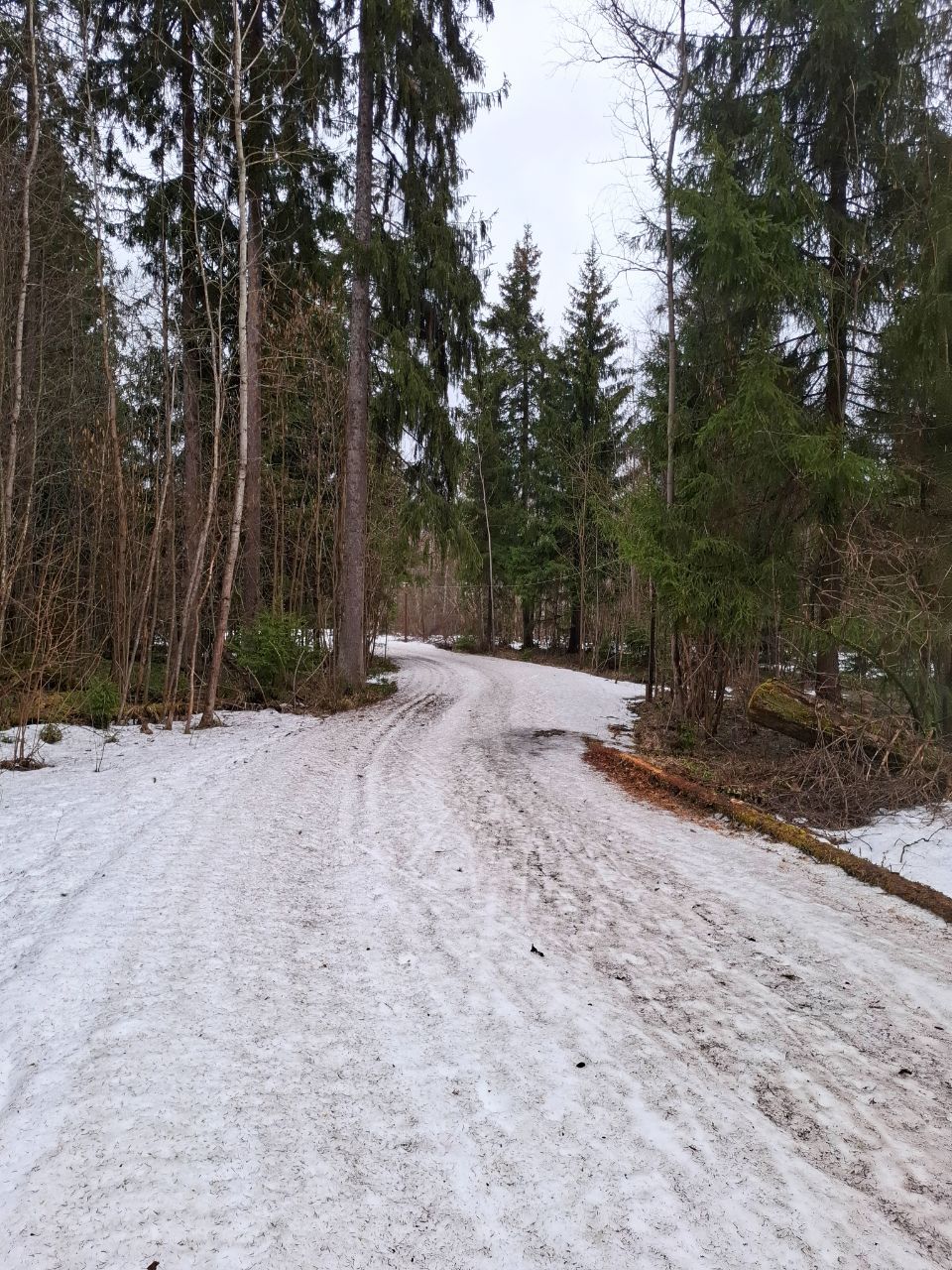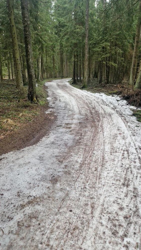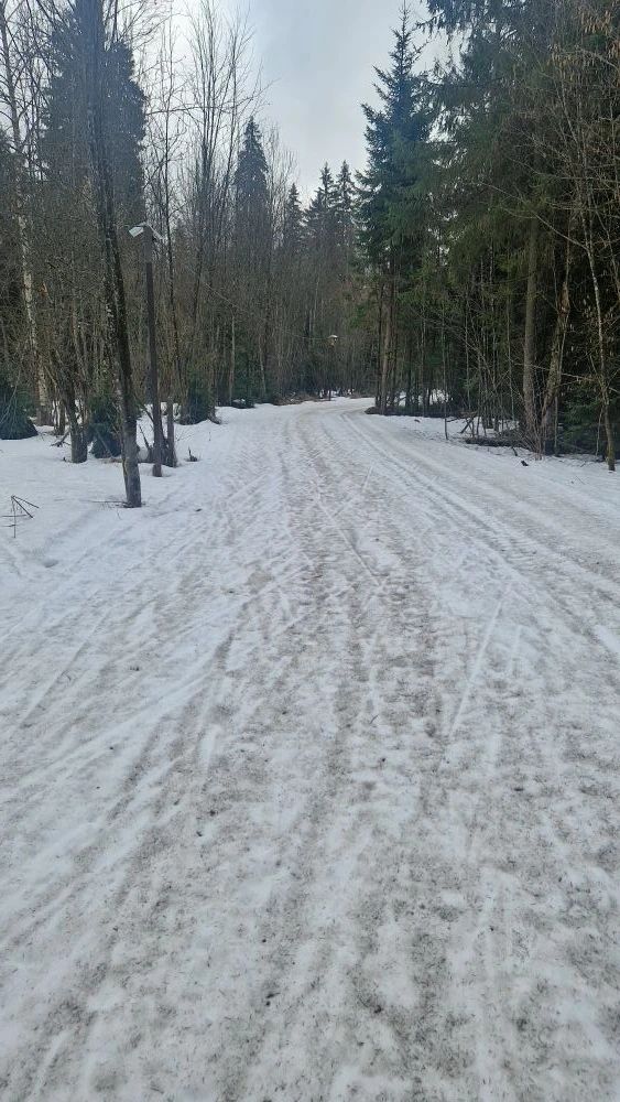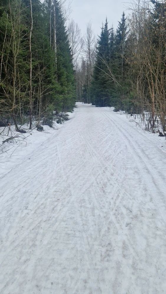 По состоянию на вечер воскресенья круг полумарафона 2,5 км на трассе "Любитель" (от Северных ворот") в очень неплохом состоянии! А выпавшая в небольшом количестве снежная крупа, так и не растаяла, перемешавшись со старым снегом.