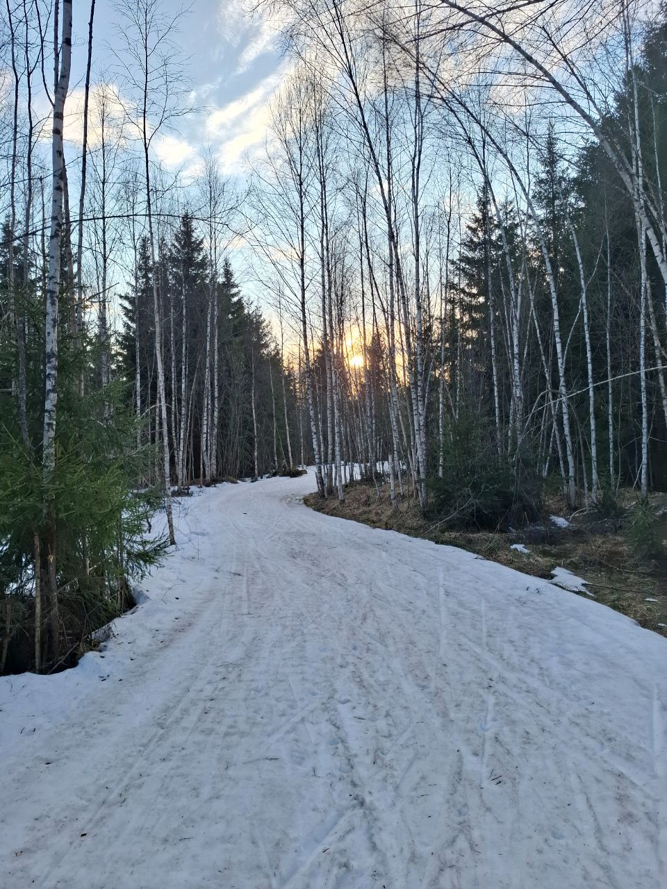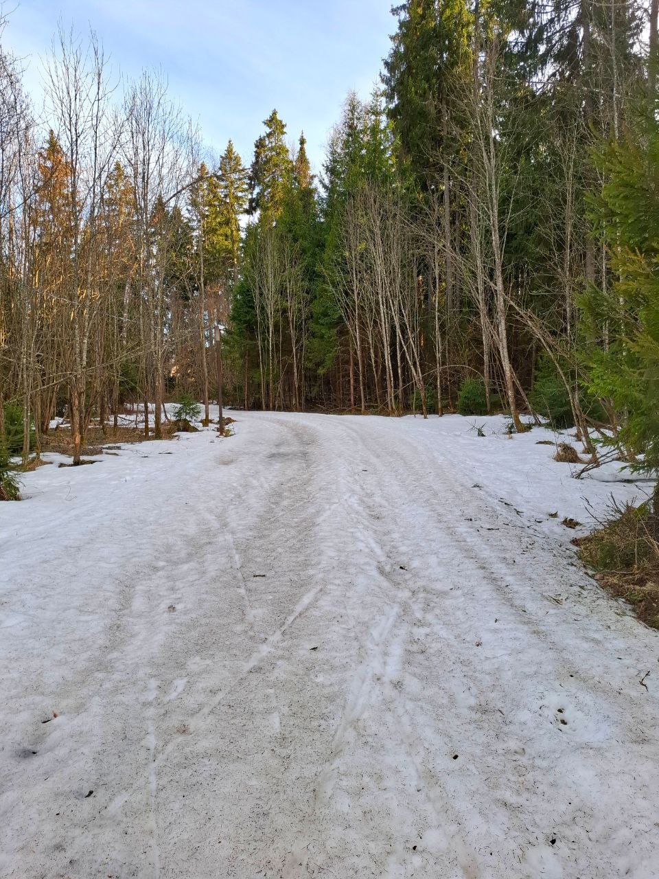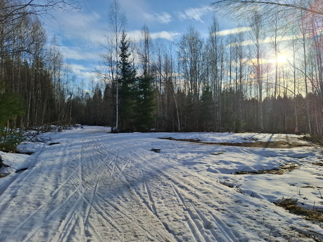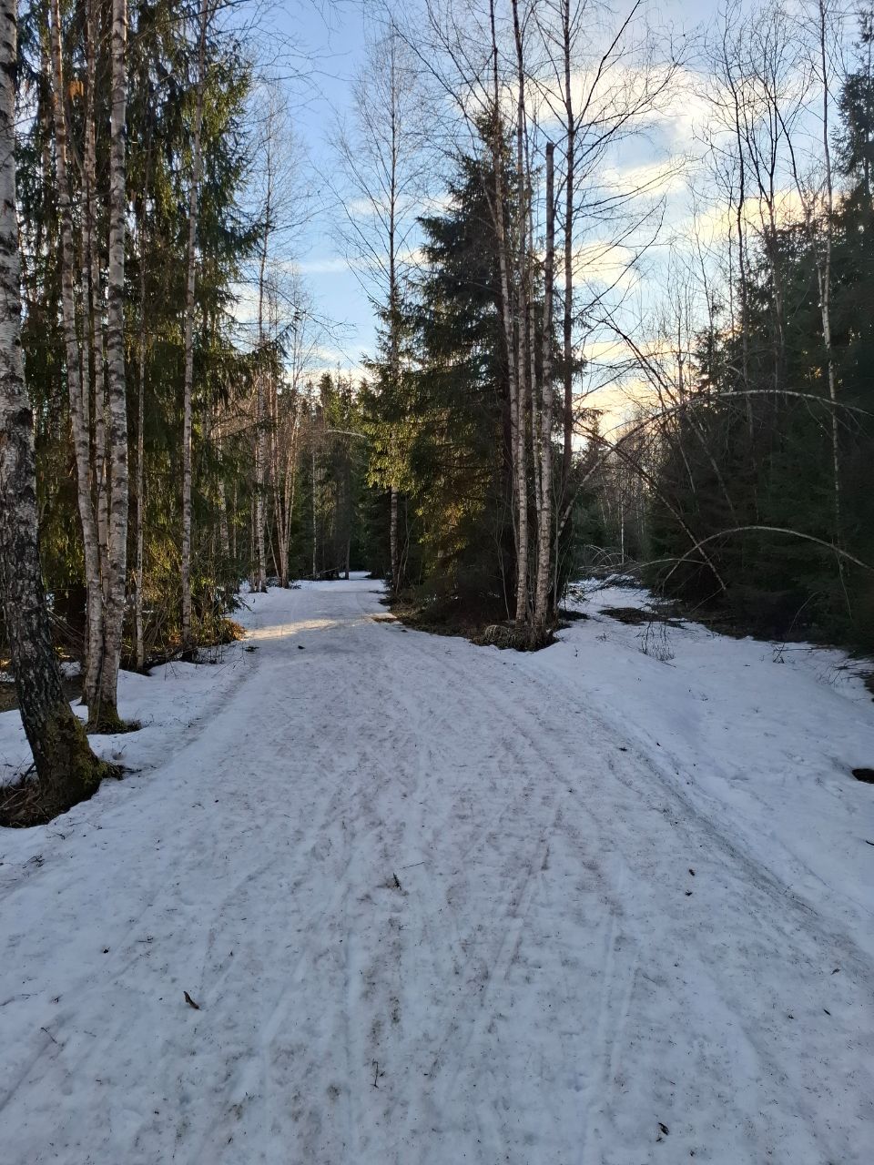 По-прежнему можно кататься по тем же участкам трассы "Турист", что и раньше и кружке за СНТ, местами некоторые участки протаяли сильнее за выходные, но все еще проходимо.