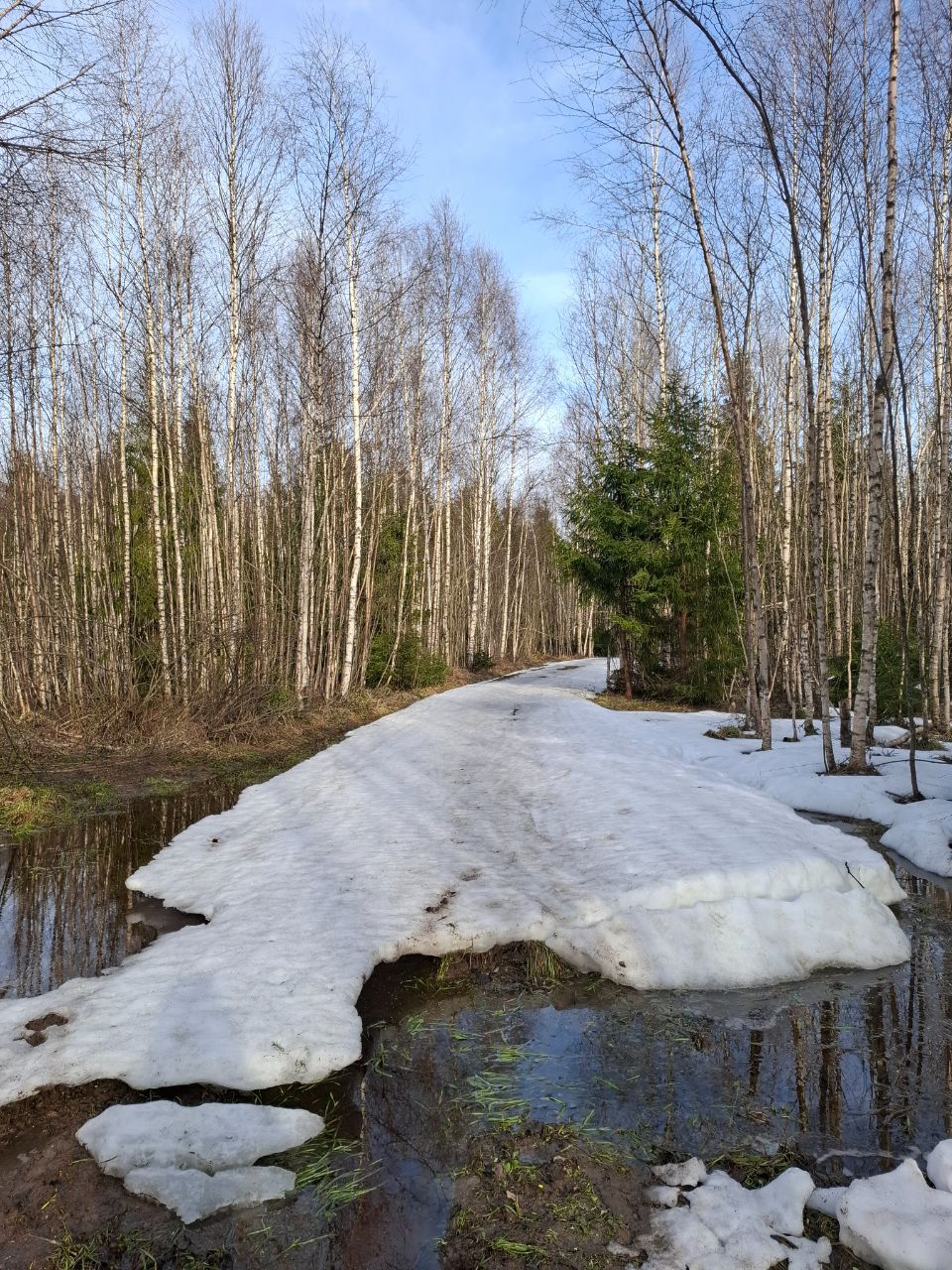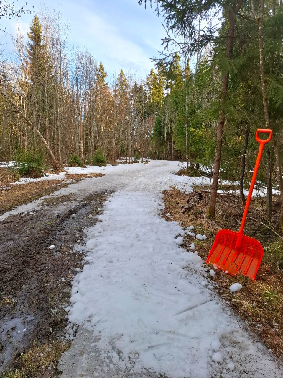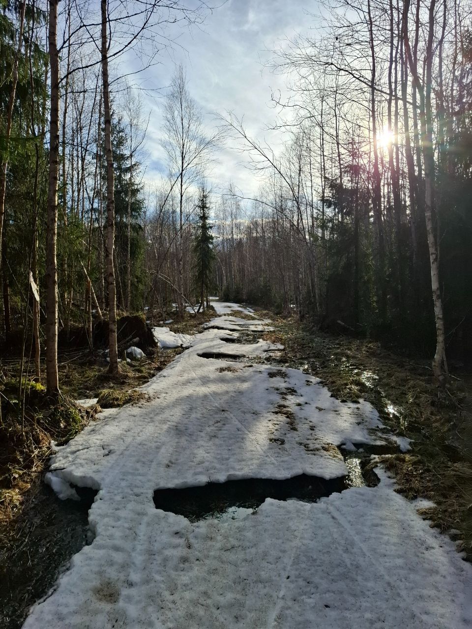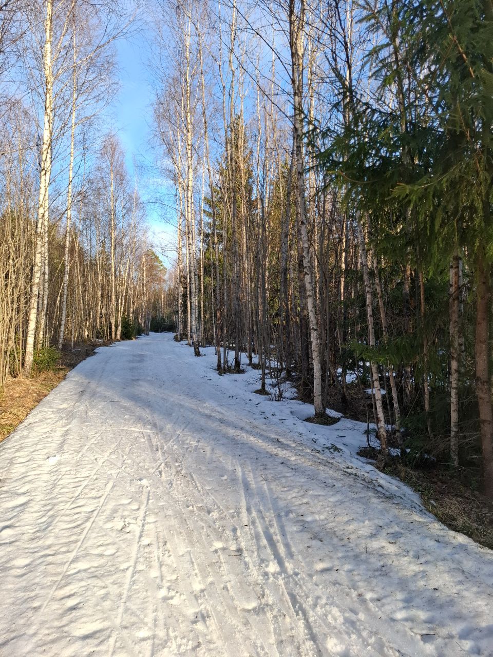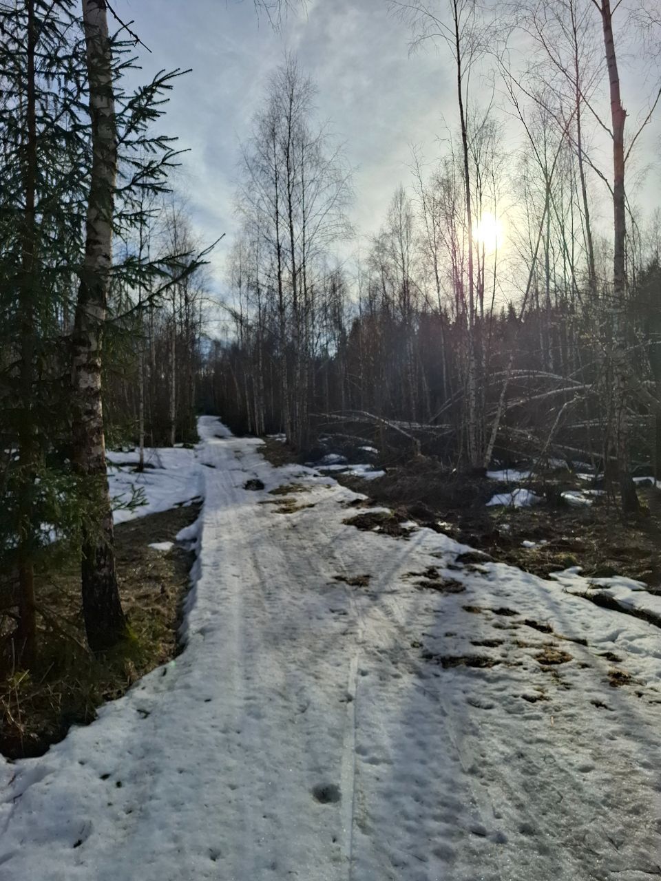 По-прежнему можно кататься по тем же участкам трассы "Турист", что и раньше и кружке за СНТ, местами некоторые участки протаяли сильнее за выходные, но все еще проходимо.