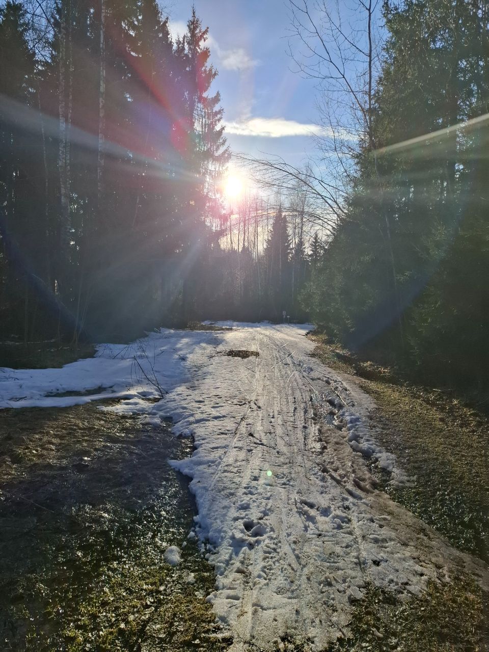 Если даже где-то еще подтает, или волонтеры не справятся, то в 2-3х местах можно пройти на лыжах по траве!