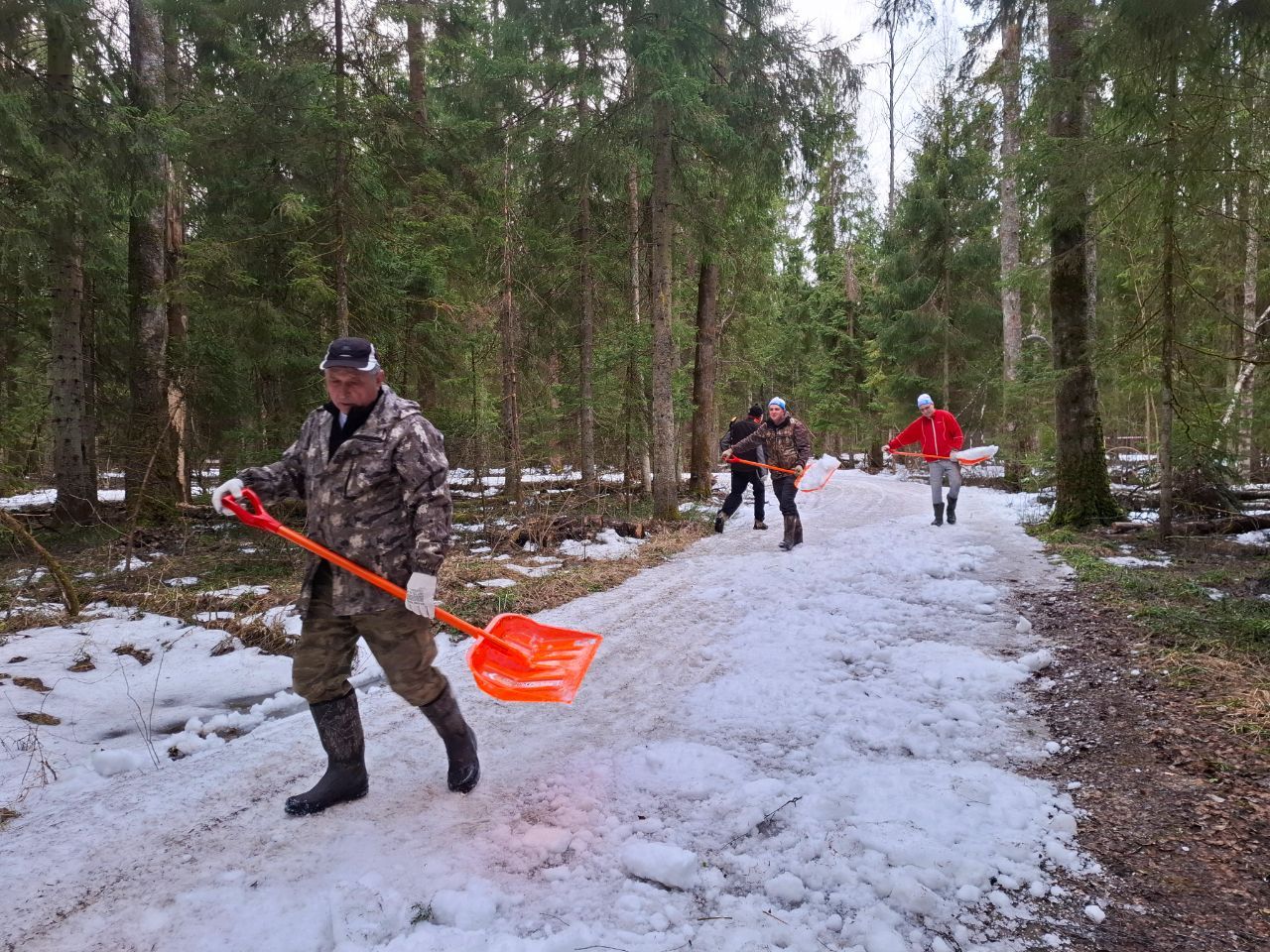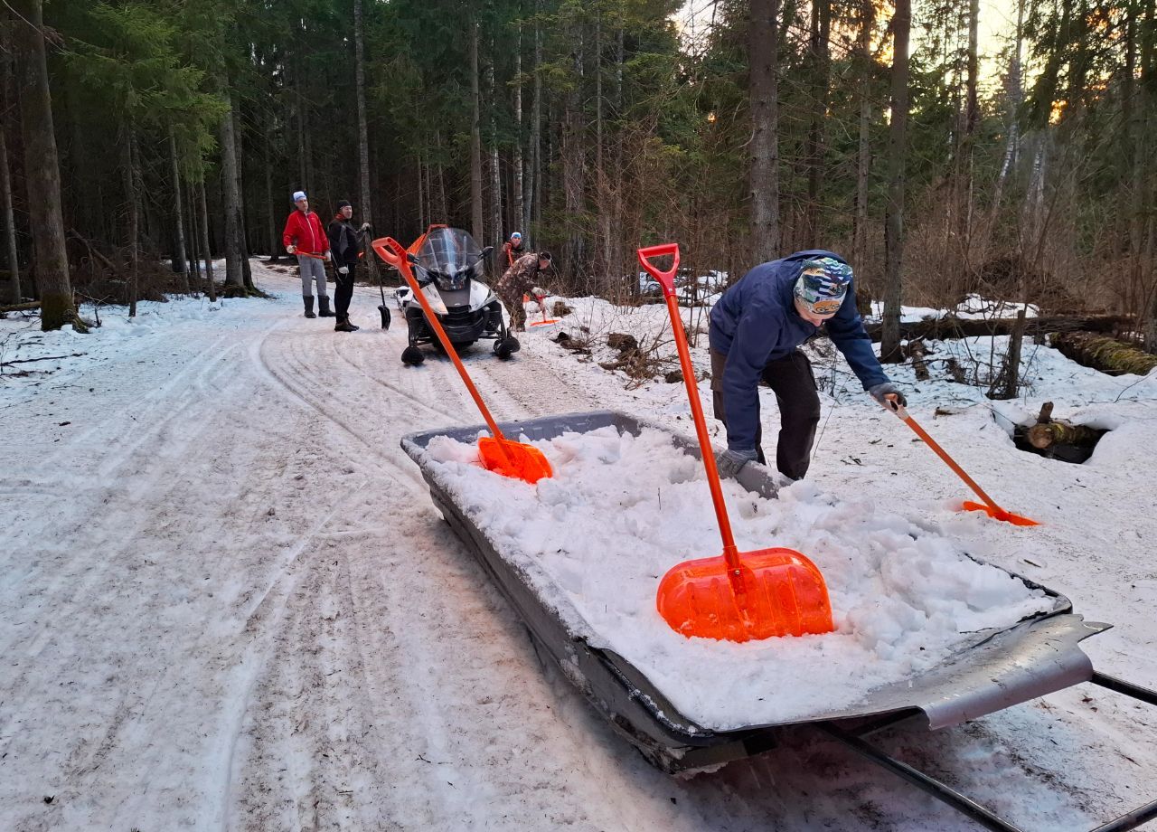 Если волонтеров окажется мало, то снег будет подброшен на проблемных и опасных спусках, а на равнинных участках можно будет пройти по траве, там нет ни камней ни песка.