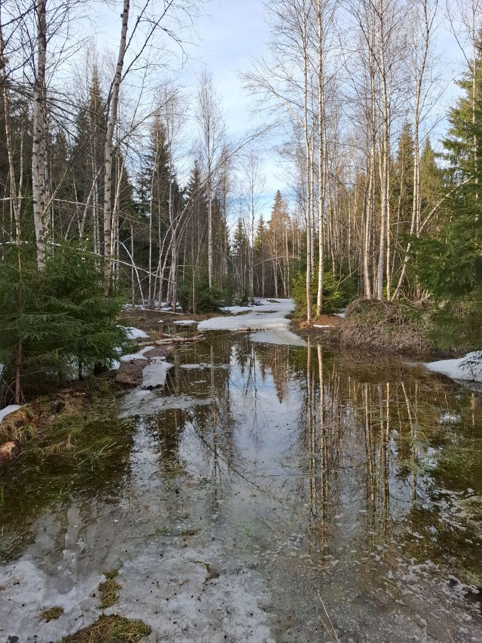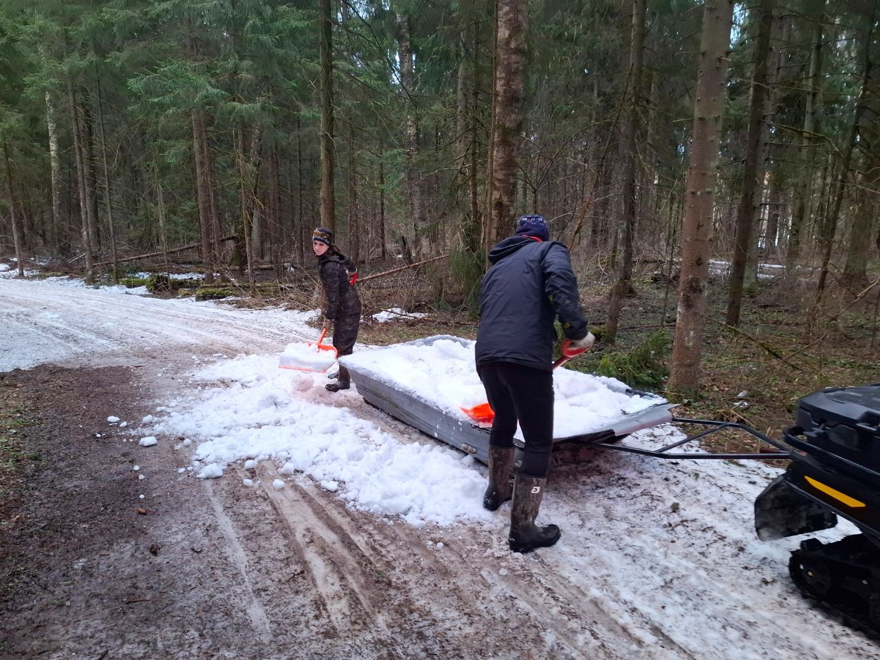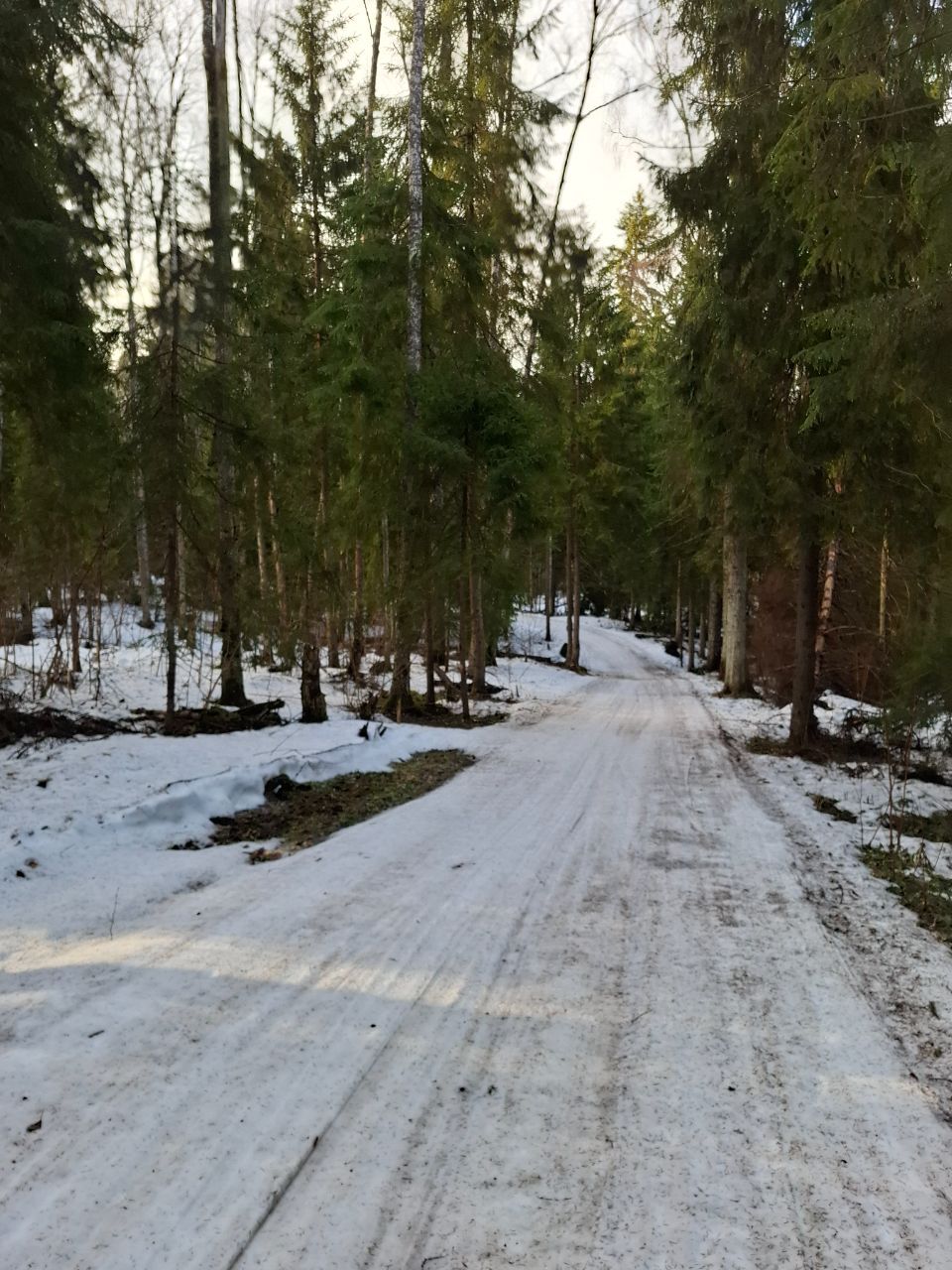 Под вечер даже немного подморозило. Есть пара-тройка участков с небольшими проталинами, но все это забросаем снегом.