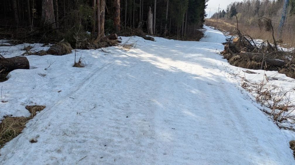 Еще можно покататься по нескольким участкам трассы: 250 м на кружке за СНТ, 150 м на лыжне Ворошина, около 300 м на 3-х участках вдоль ЛЭП на трассах "Мастер" и "Турист", а также небольшие снежные участки сохранились в районе ручья "Косой овраг"!