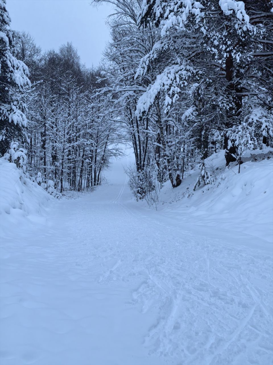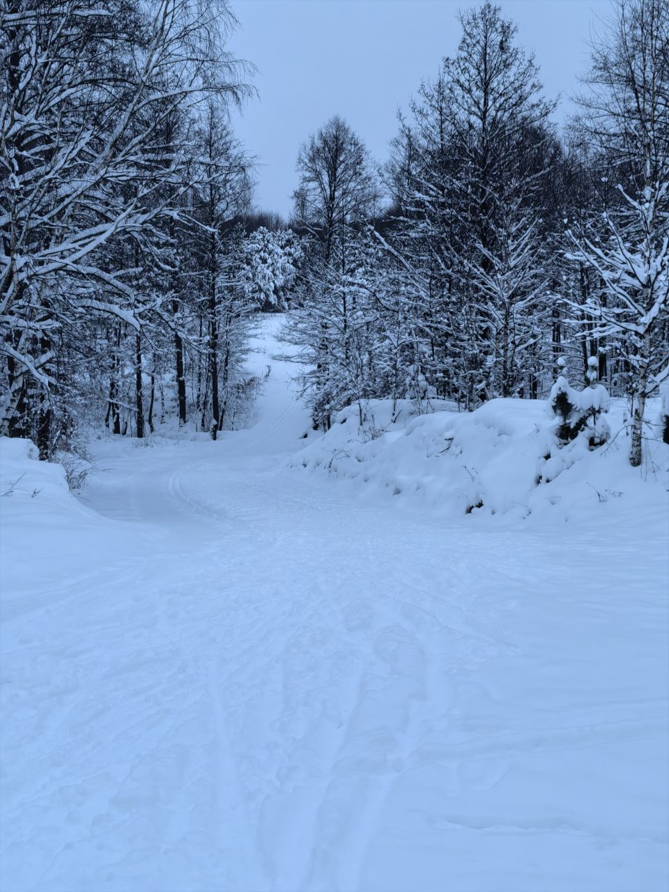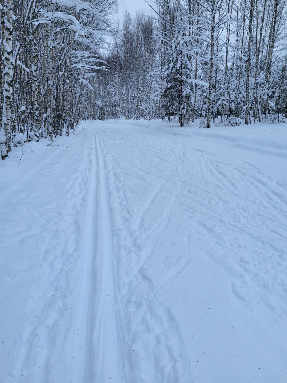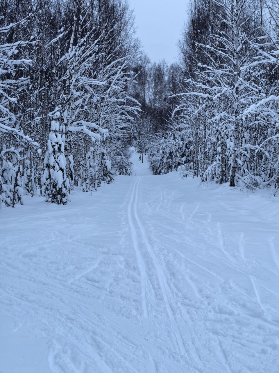 В муромских лесах сегодня чистейшая лыжня, накатанная любителями лыжного спорта. Проходит она пересекая овраг, поэтому, много пологих спусков и крутых подъемов. Равнинный круг примерно 700 м. Большой, со всеми вилюшками, думаю, около 4 км. GPS не работает.