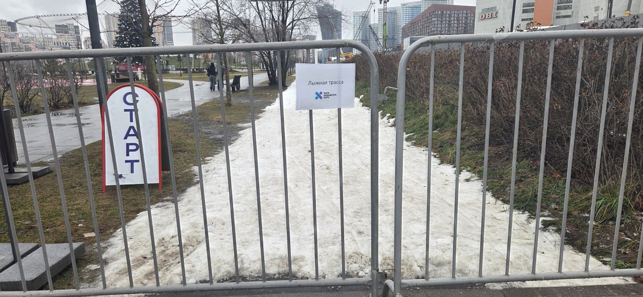 В парке есть снежная пушка. По состоянию на 17 декабря настрелян большой сугроб, снег для трассы берут с него. Трасса ограничена металлическим забором от пешеходов и указателями Лыжная трасса, Старт, Финиш.