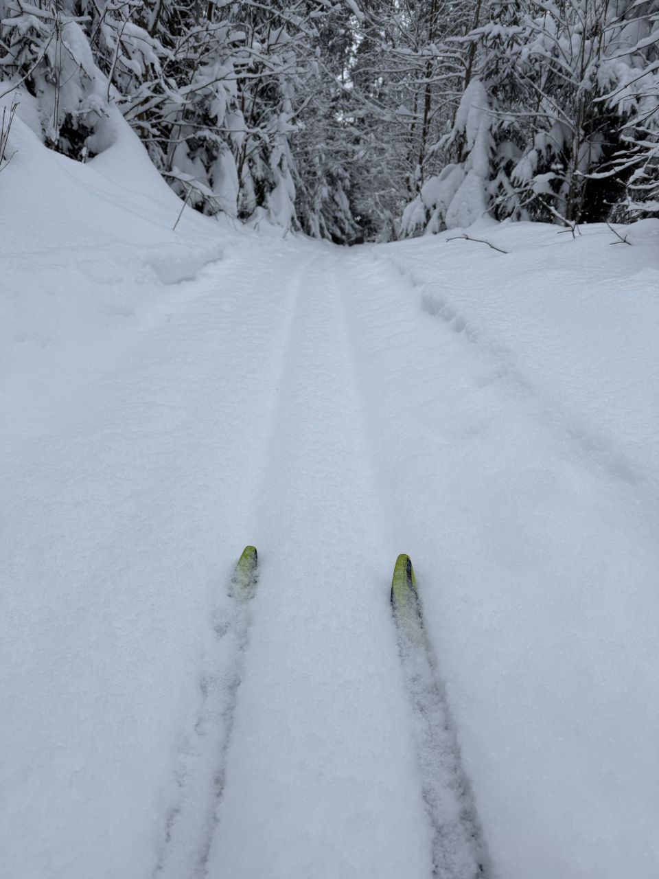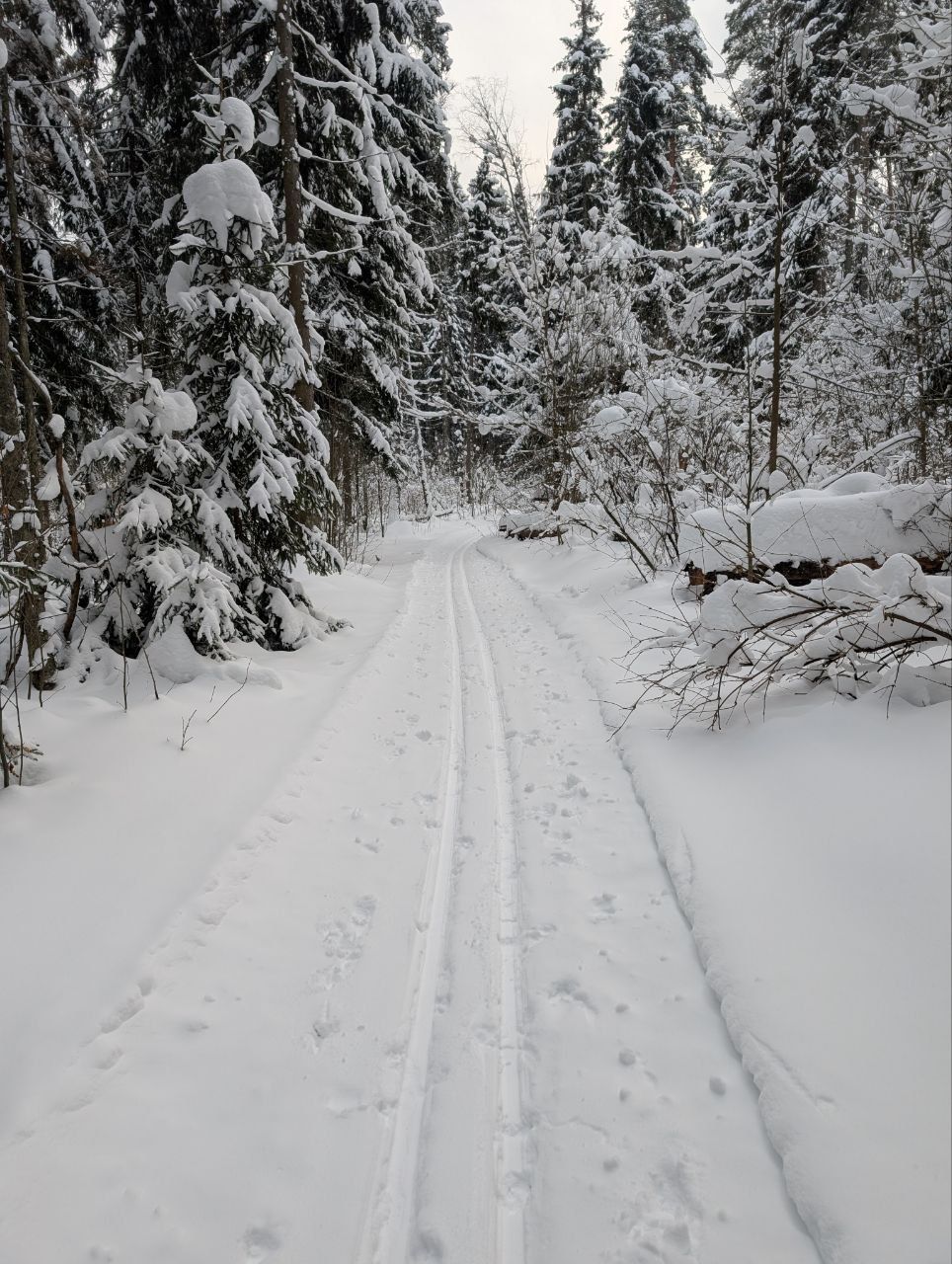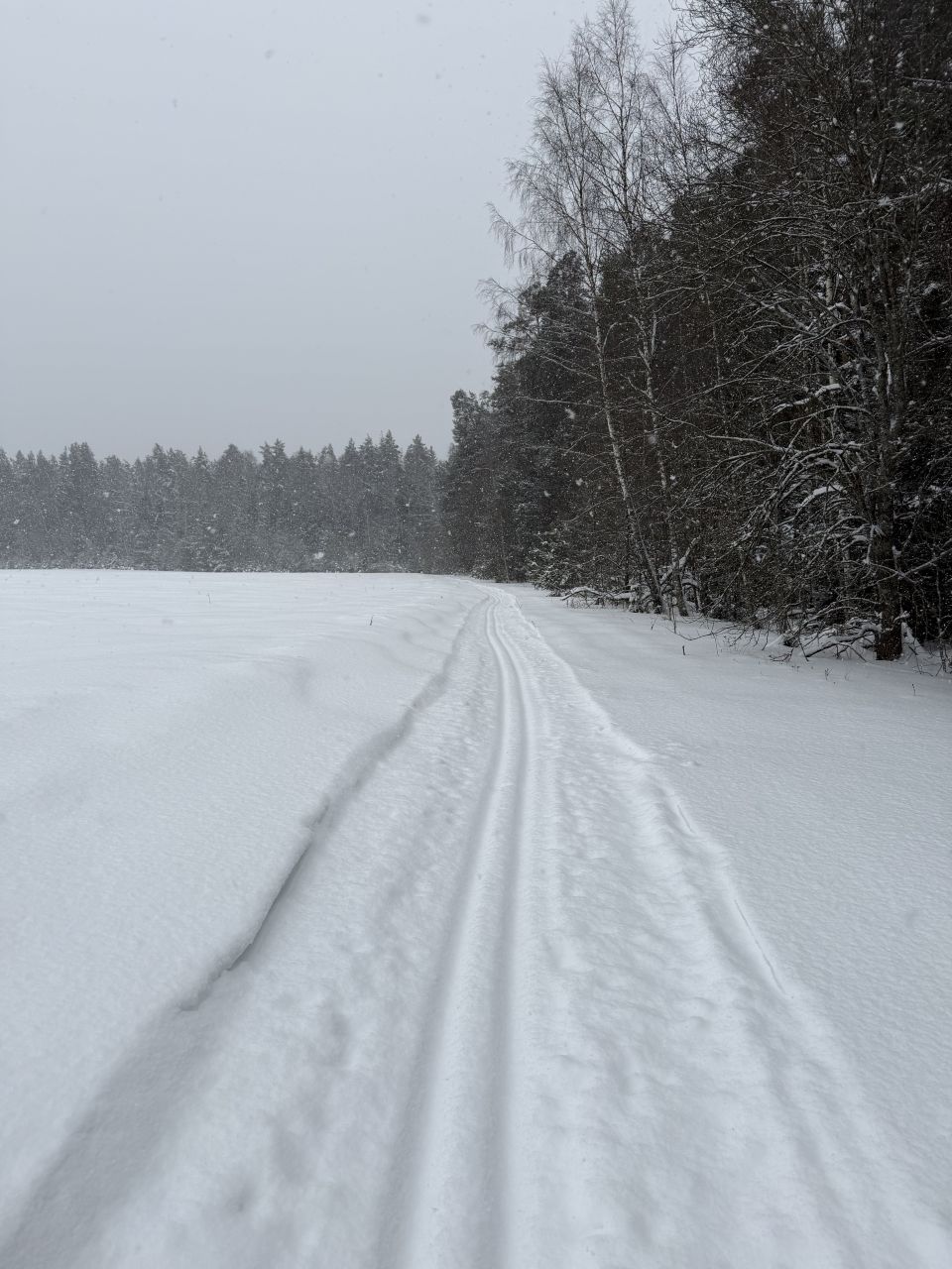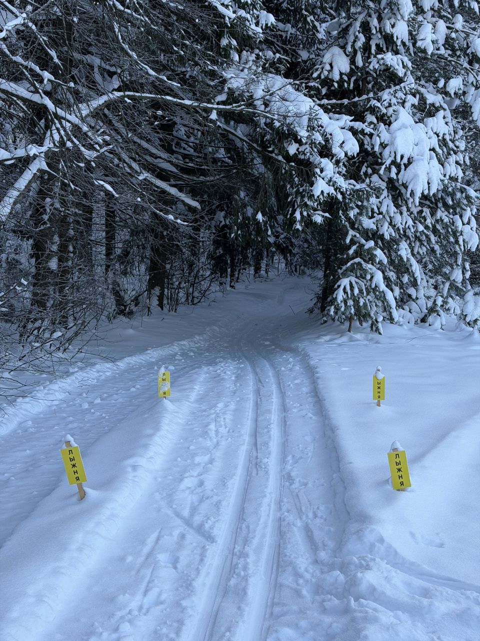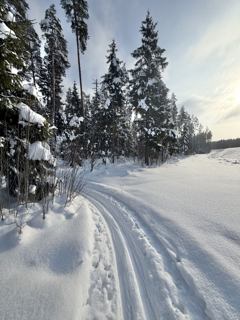 Готовится снегоходом под классику, периодически (к выходным и/или после снегопадов), но достаточно регулярно. Общая протяженность в районе 10 км, конфигурация время от времени чуть меняется. Рельеф щадящий, для спортсменов будет скучновато, для умеренных физкультурников самое то. Плоские поля и лес с небольшим рельефом. Есть указатели.