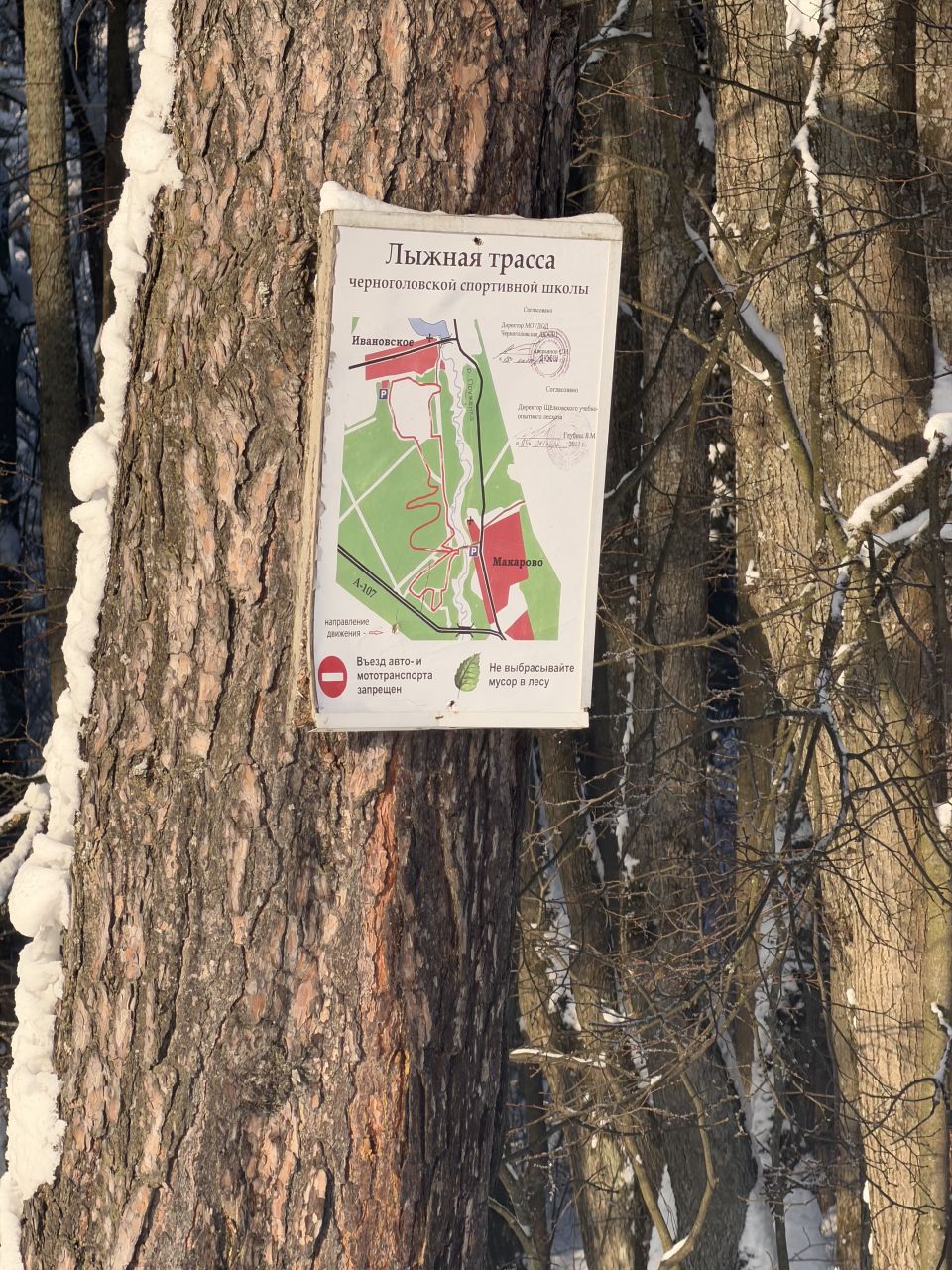 Есть два места захода на трассу с удобной парковкой - либо возле дороги в д.Макарово, либо на опушке леса в Ивановском (56.0243766, 38.2850274)