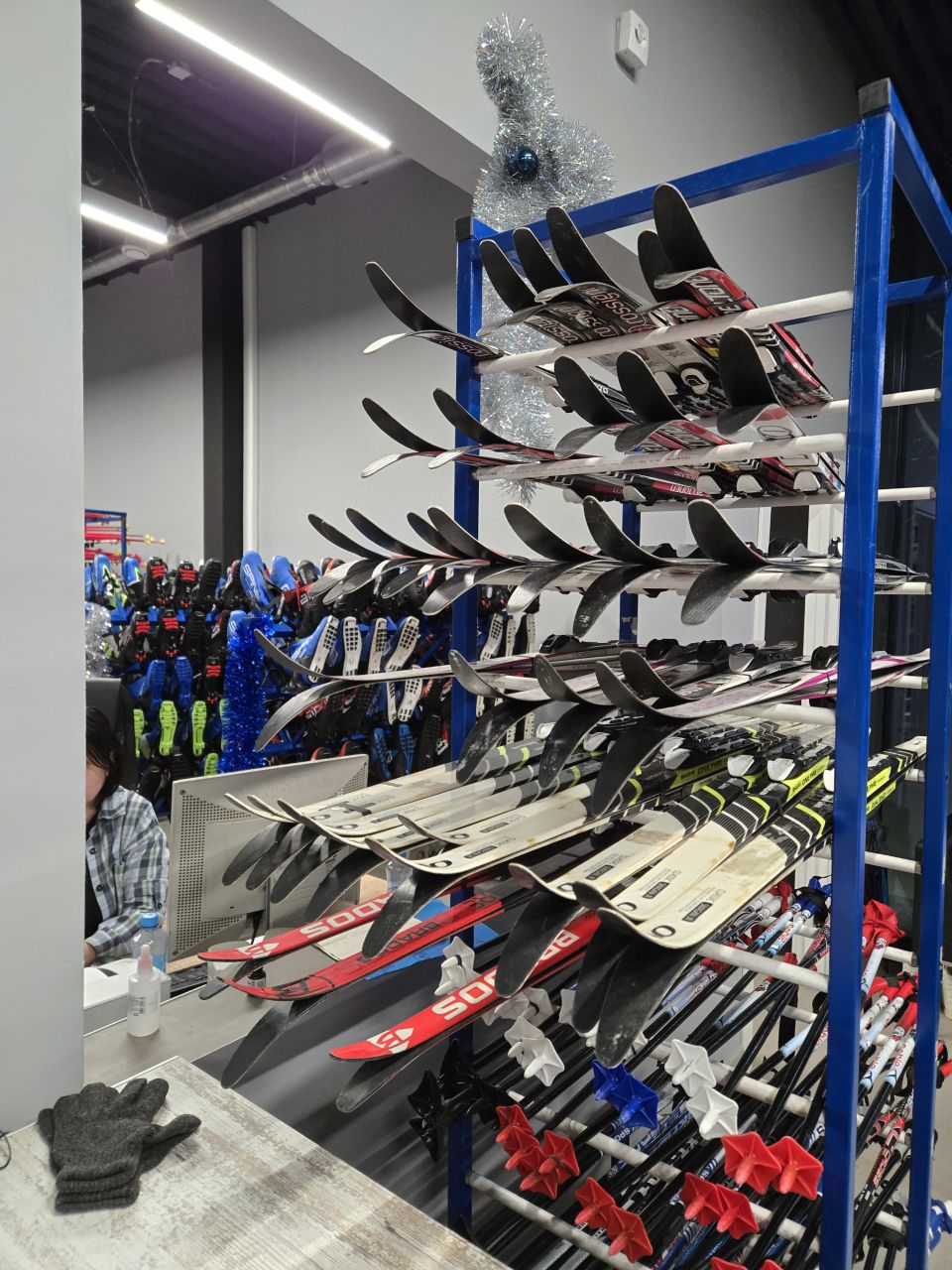В прокате аншлаг, приличные очереди. Шкафчики свободные есть, как и халявщики, которые закидывают сумки наверх..