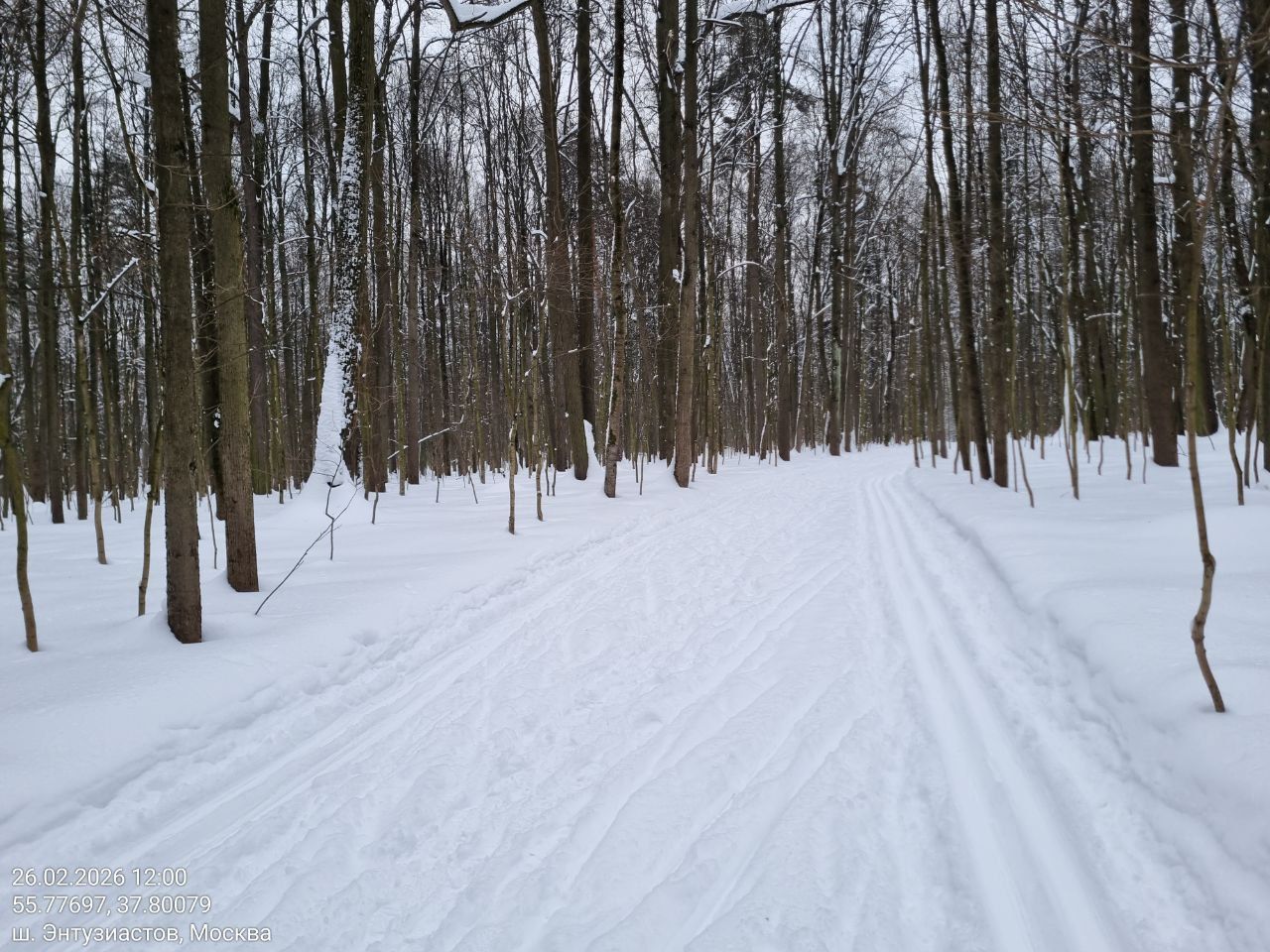 10.01.2026. 17:00. Соглашусь с двумя предыдущими комментариями от лыжников. После «аномального» и «сильнейшего за последние 70 лет» снегопада трассы подготовлены очень хорошо, твердая «четверка»👌. Не обнаружил горба на подъеме от Красного озера, а смесь снега с землей местами совсем не мешает скольжению. Был восхищен наблюдая, как работники лыжного проката удовлетворяют резко возросшую потребность граждан в катании на лыжах после снегопада. Сотни желающих прокатиться на лыжах, стоят очереди 😲. Наличие снежного покрова не вдохновляет граждан кататься на лыжах так, как мощный снегопад. 😊