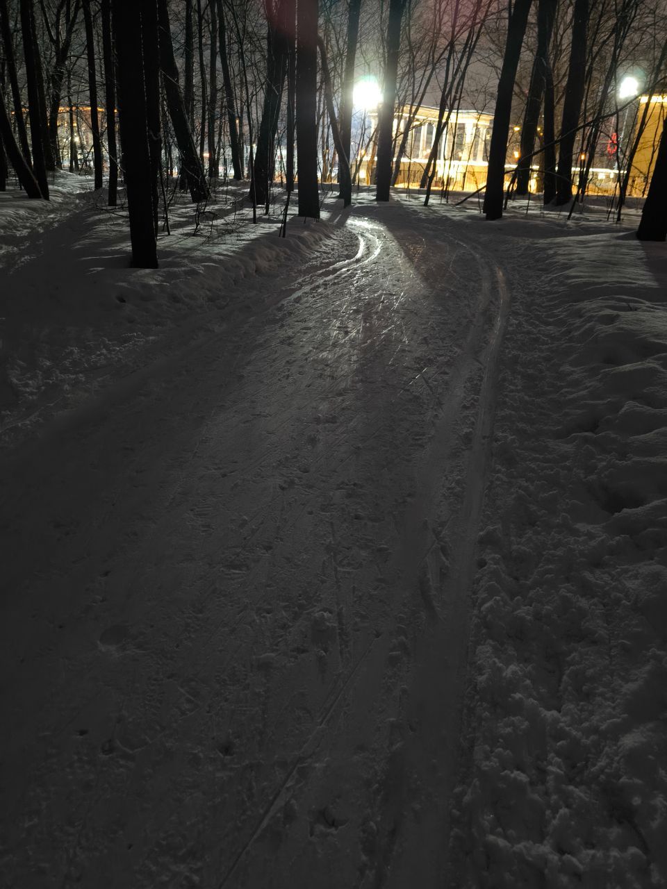 Вечером 27.01.2026 на трассах Измайловского парка, как говорится, «конь повалялся». Трассы специальной техникой не готовили, но есть самотоп, который замечательно подходит для силовой тренировки 💪. На «сапоге», 3 км, трасса самая жесткая и снег не очень глубокий. Ну а на серпантине возле Пасеки есть лыжня под конек на подьемах, но мягко и лыжи проваливаются. Удовольствия мало, но для желающих помучиться, весь круг проезжаем.
