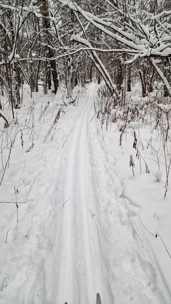 В Яузском лесопарке есть очень даже неплохой самотоп под конек (на схеме красного цвета) Протяженность примерно 2,5-3 км очень даже неплохо раскатанной довольно ровной трассы! Проходит в середине этого леса, поэтому народf там, по крайней мере в будни, совсем мало. Но, в то же время, сегодняшний без конца падающий свежий снег очень неплохо раскатан! Трасса довольно узкая, но для местных жителей довольно неплохой вариант! Рядом проходит и самотопная классика. Также самотопную классику протаптывают в этом же лесу на освещенной прямой по "выделенке" (на схеме - оранжевый участок, на фото-последние 2 фото)