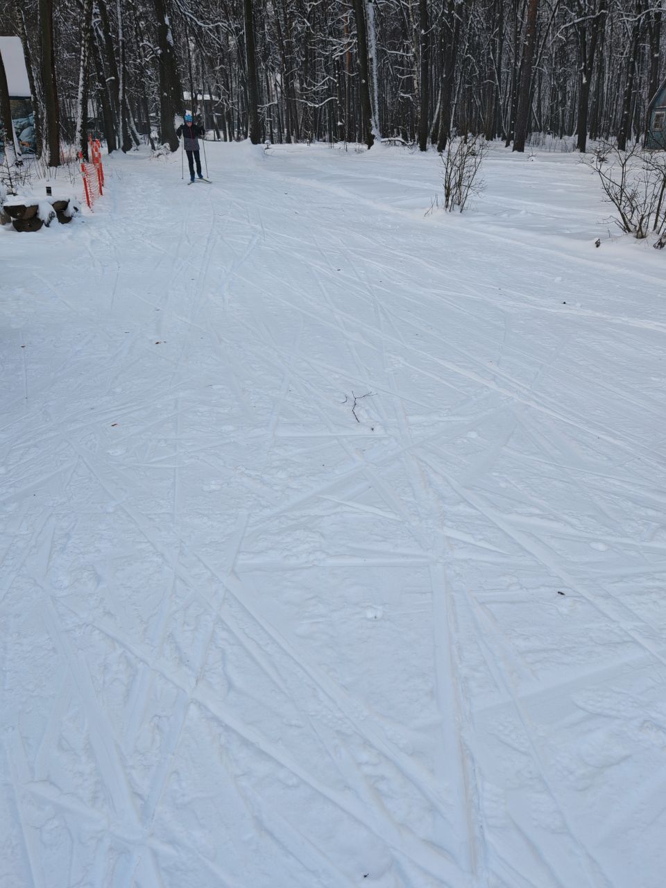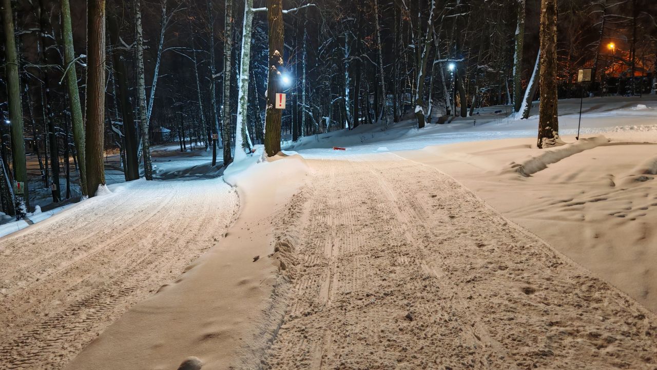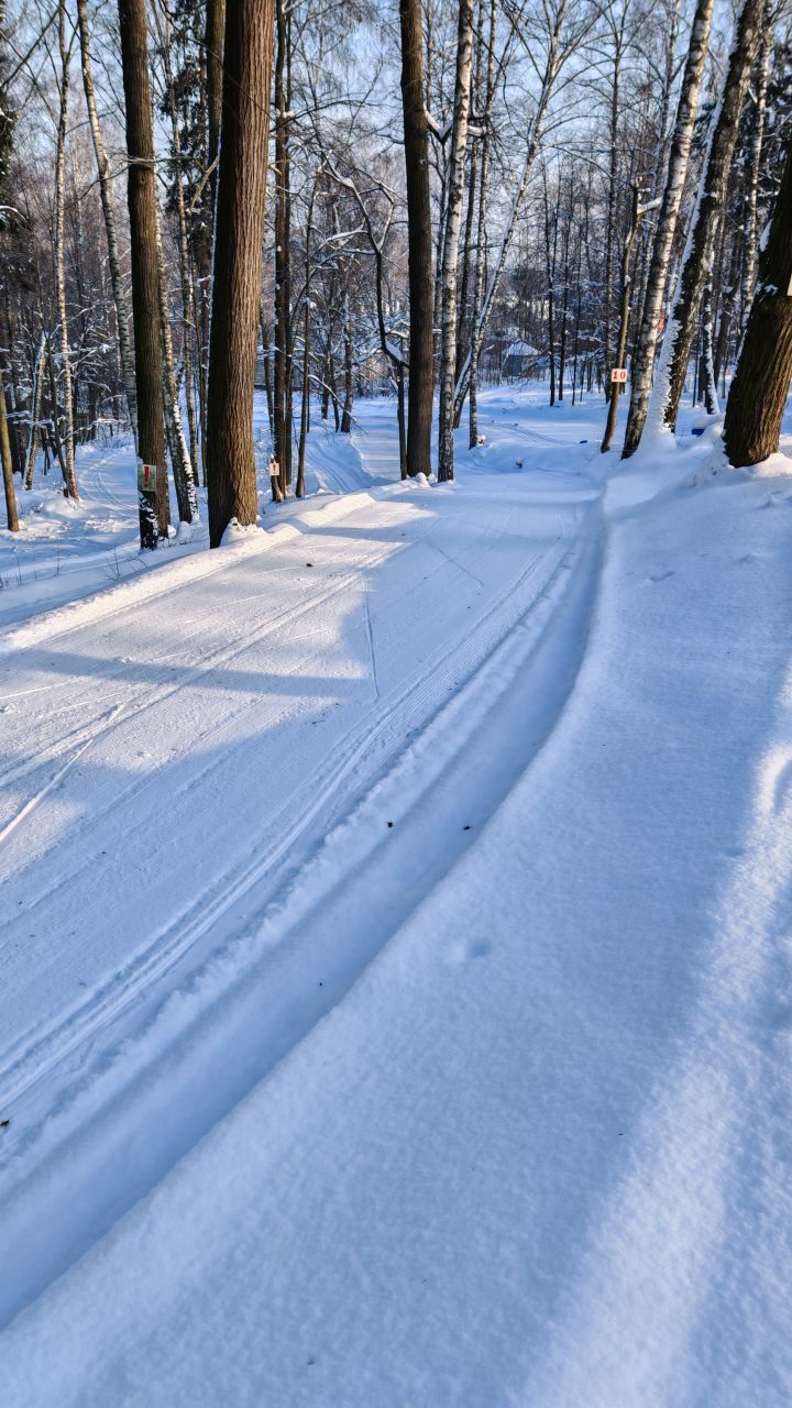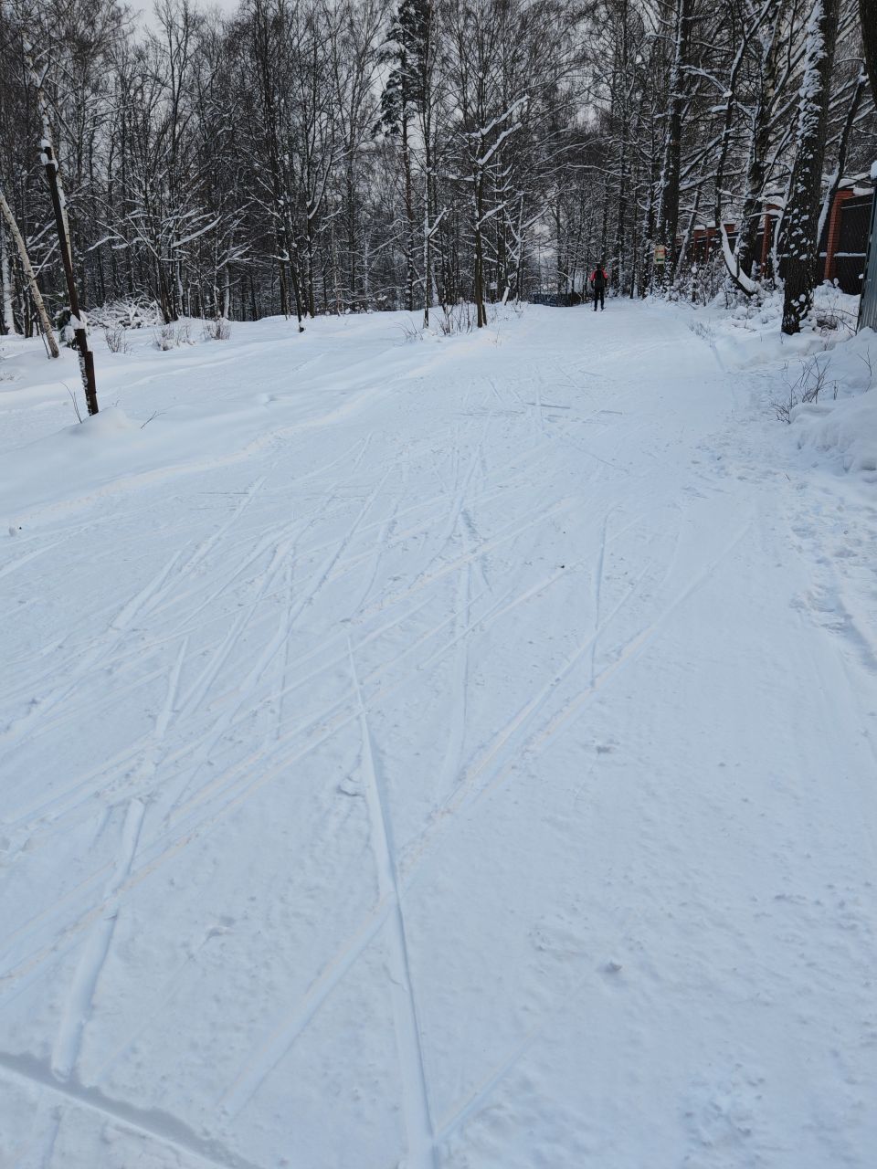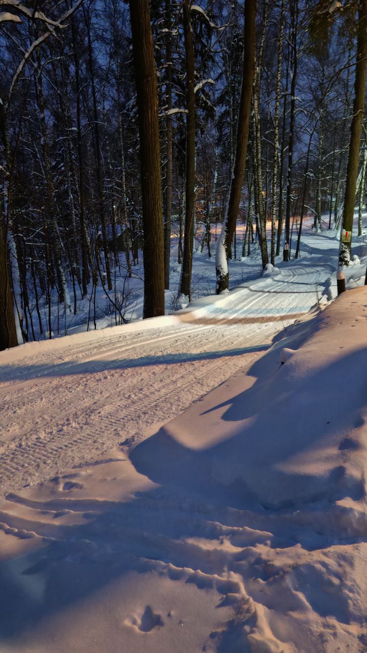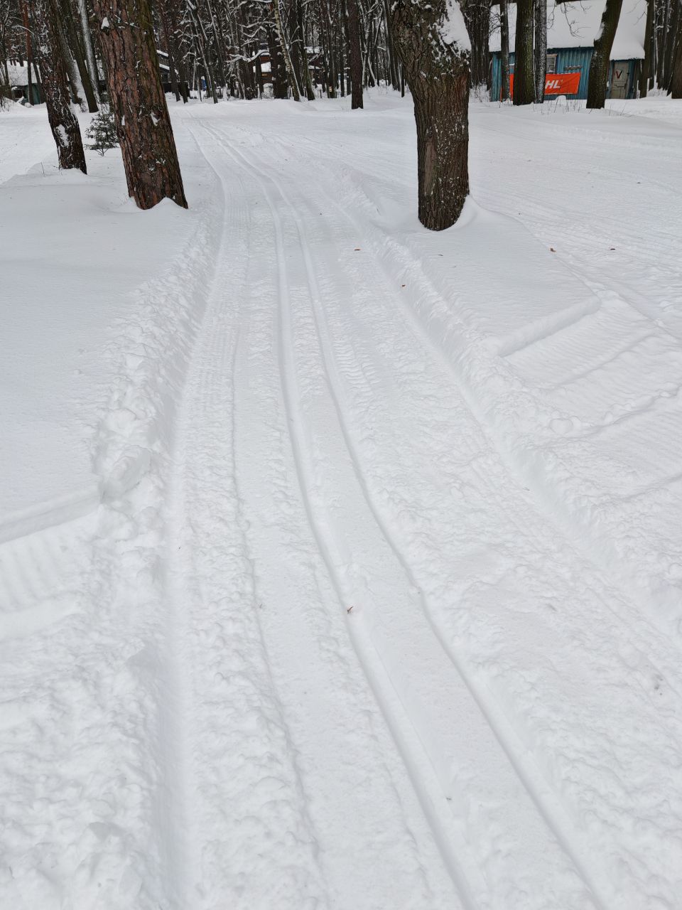 Снегопад закатали. На коньке мягкая основа, лыжи не зарываются. Нарезали классику.
