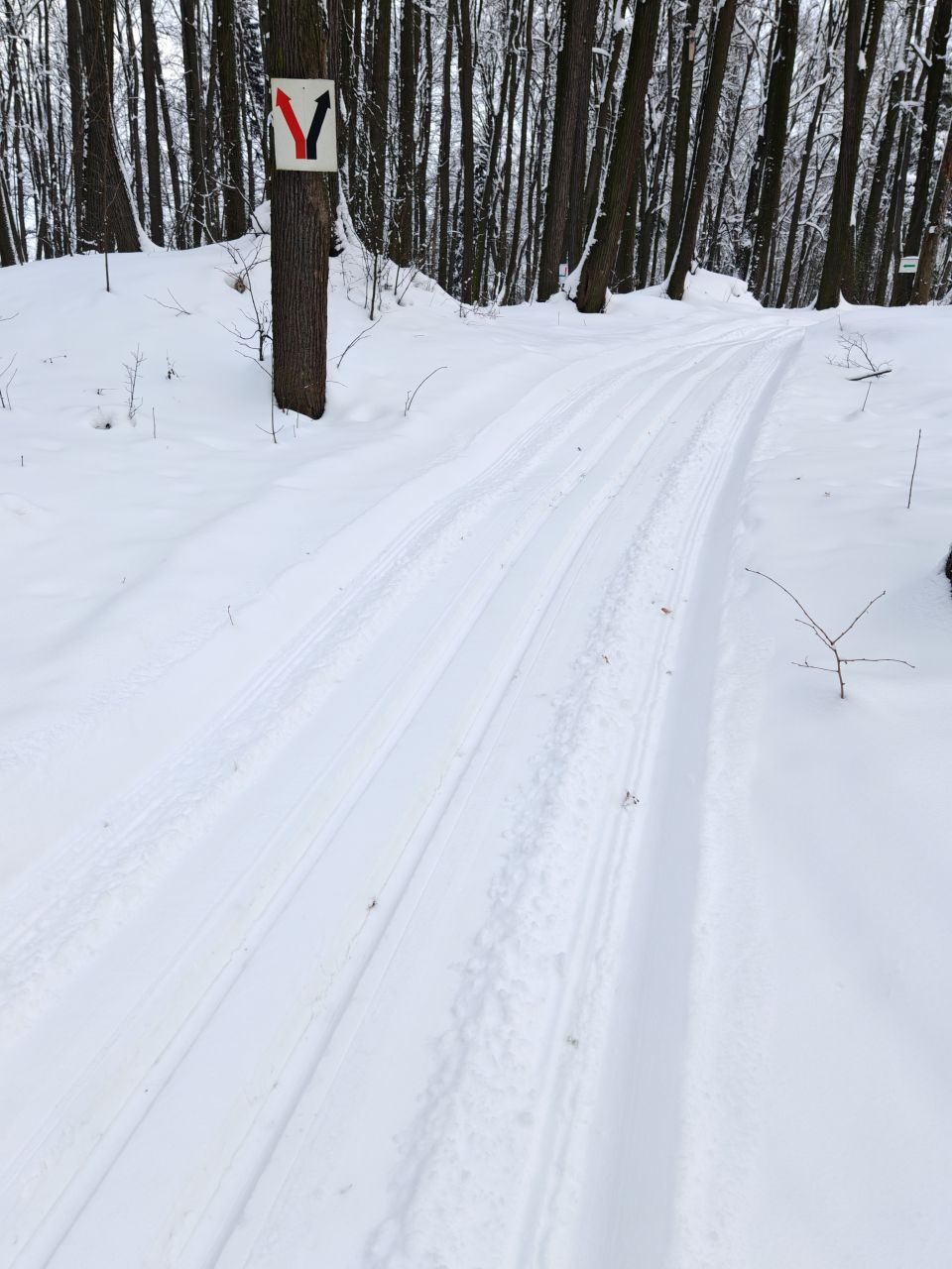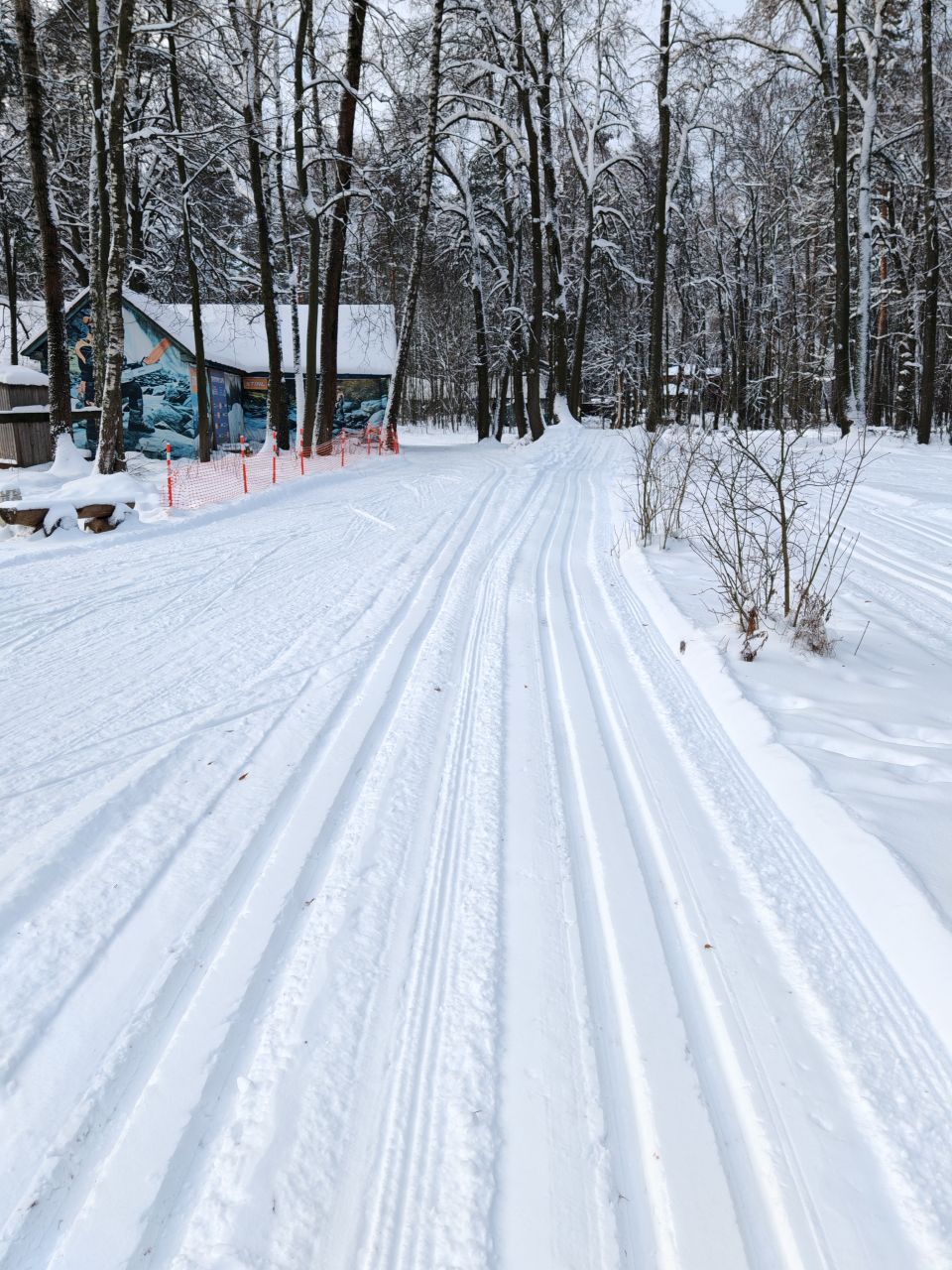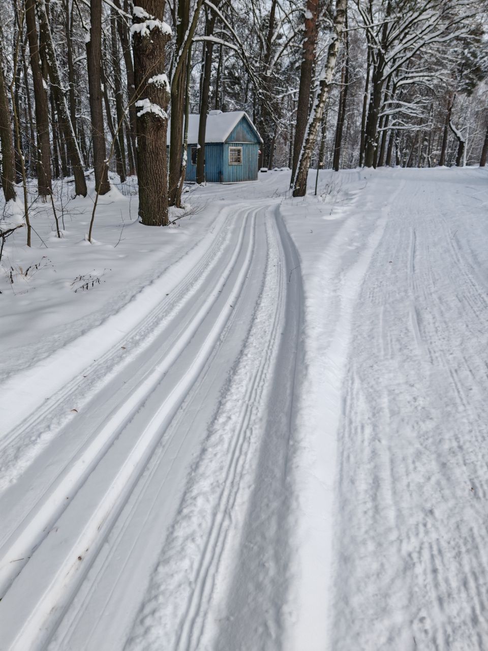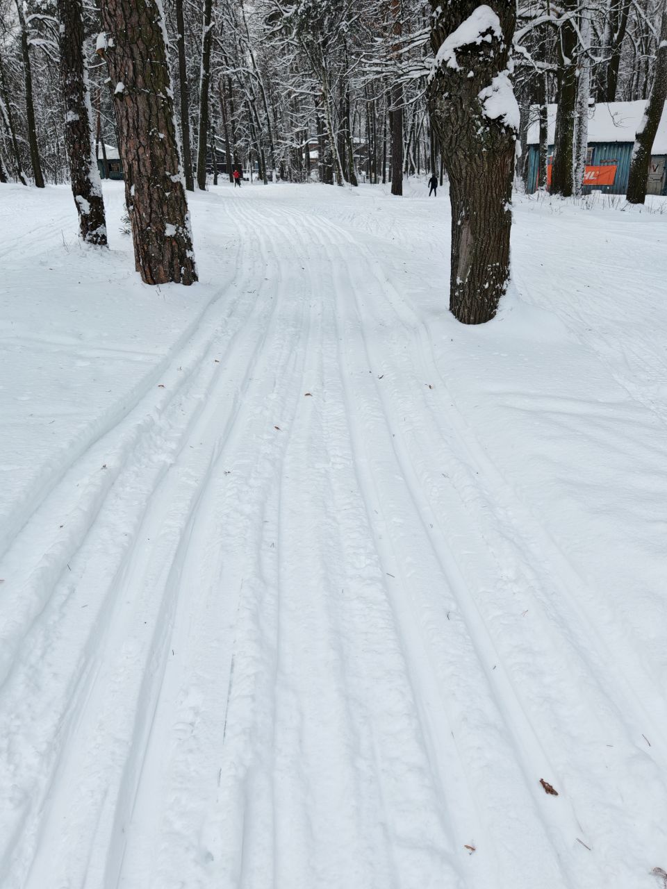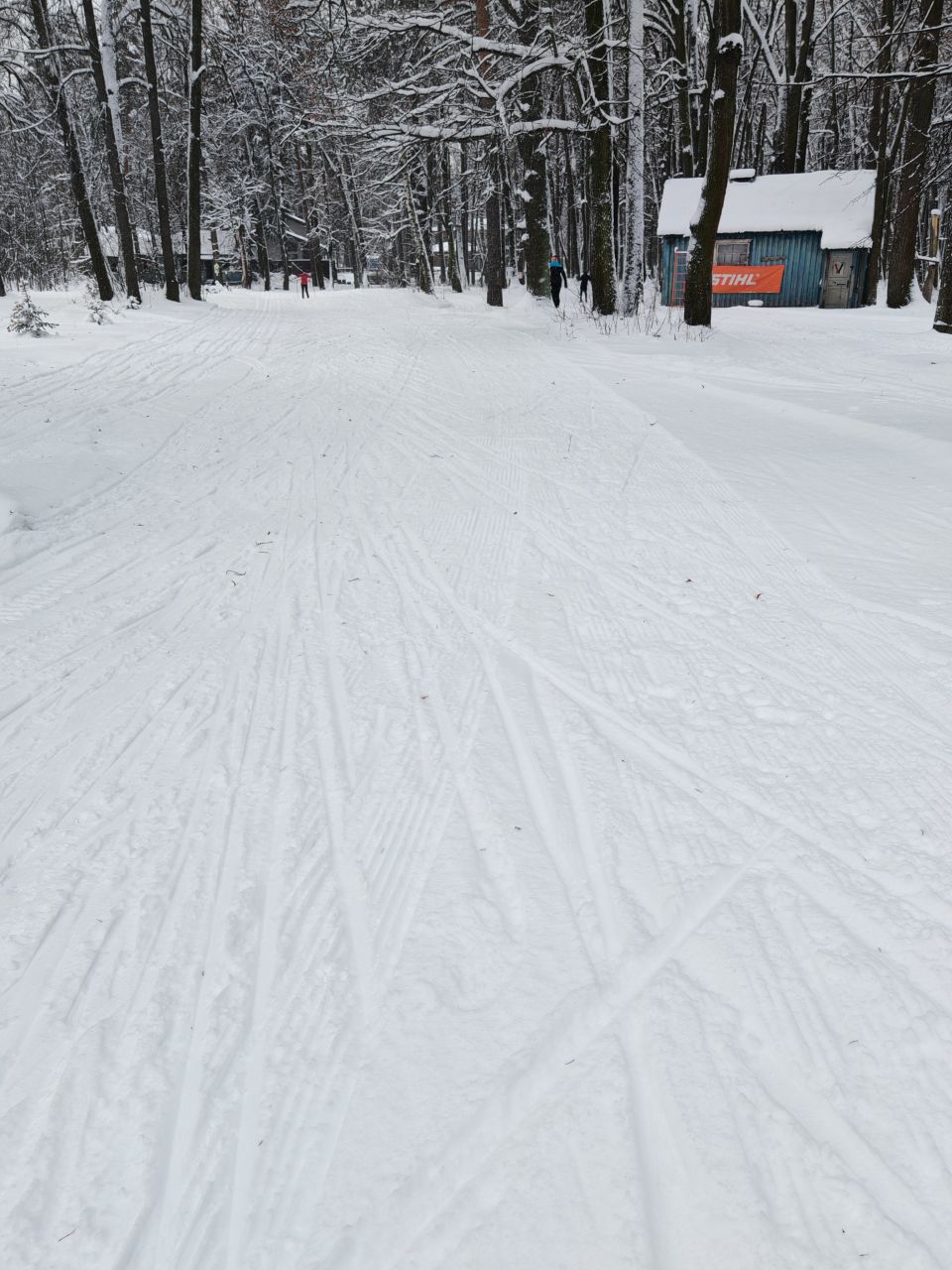 Снегопад закатали. На коньке мягкая основа, лыжи не зарываются. Нарезали классику.