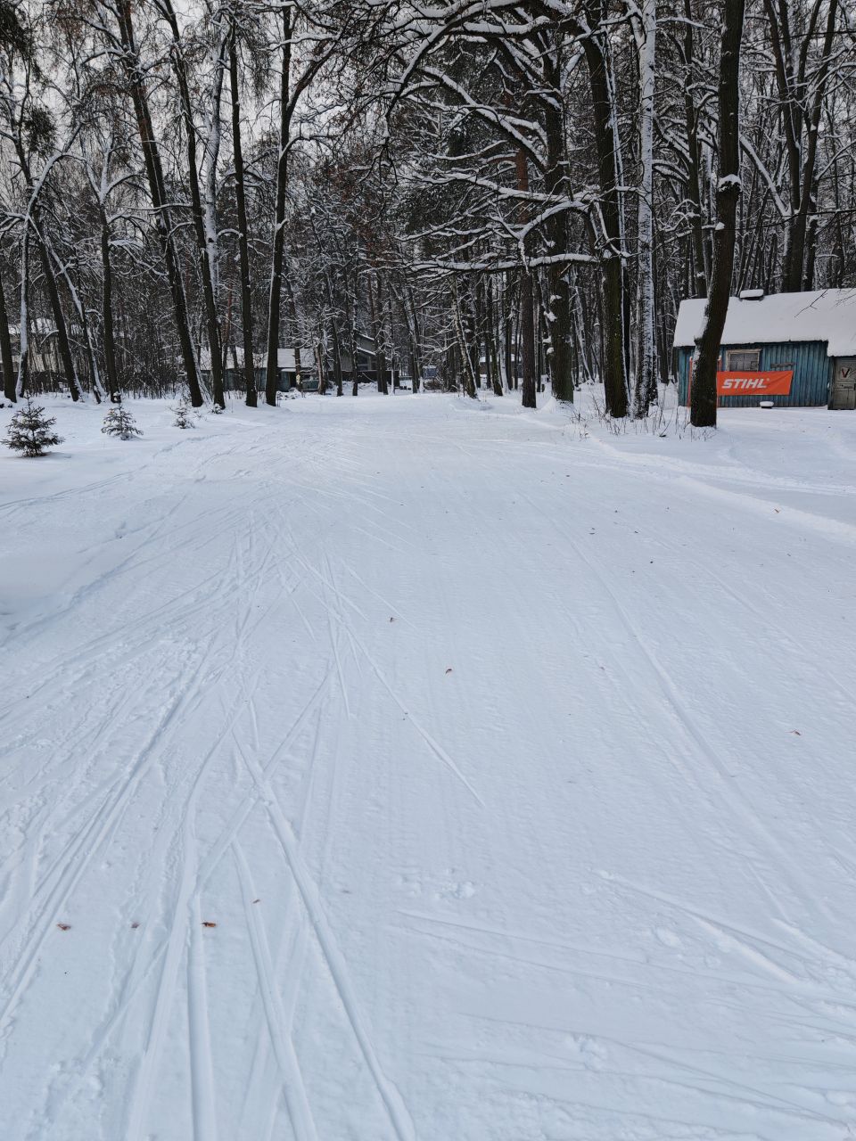 Снега мало. На виражах вылезает щепа из под снега . Круг под конёк 3км. Есть срезки 2км и 1км.1км - равнина