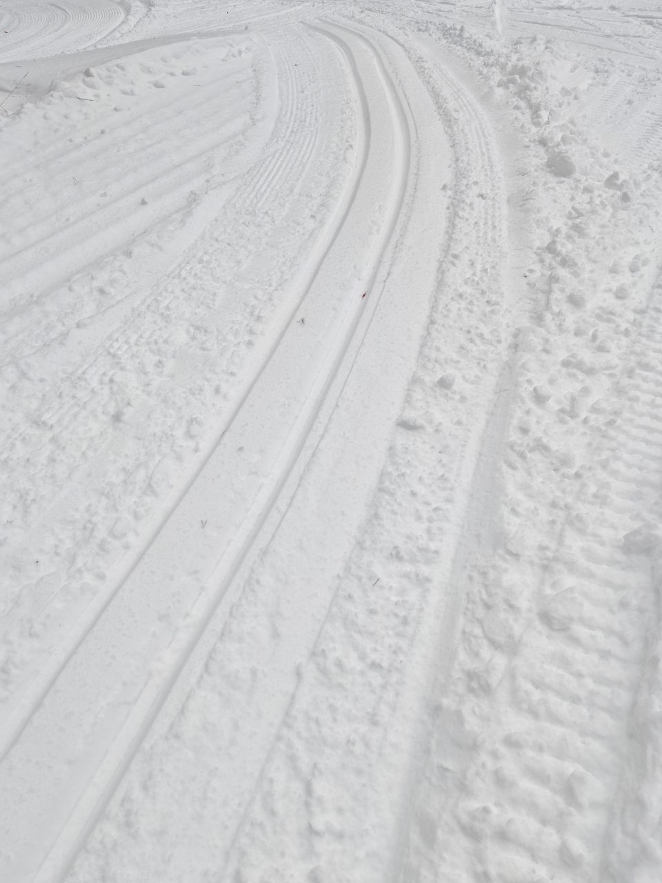 Свежий снег укатан на коньковой части трассы. Классики нет. Уже можно на боевых лыжах
