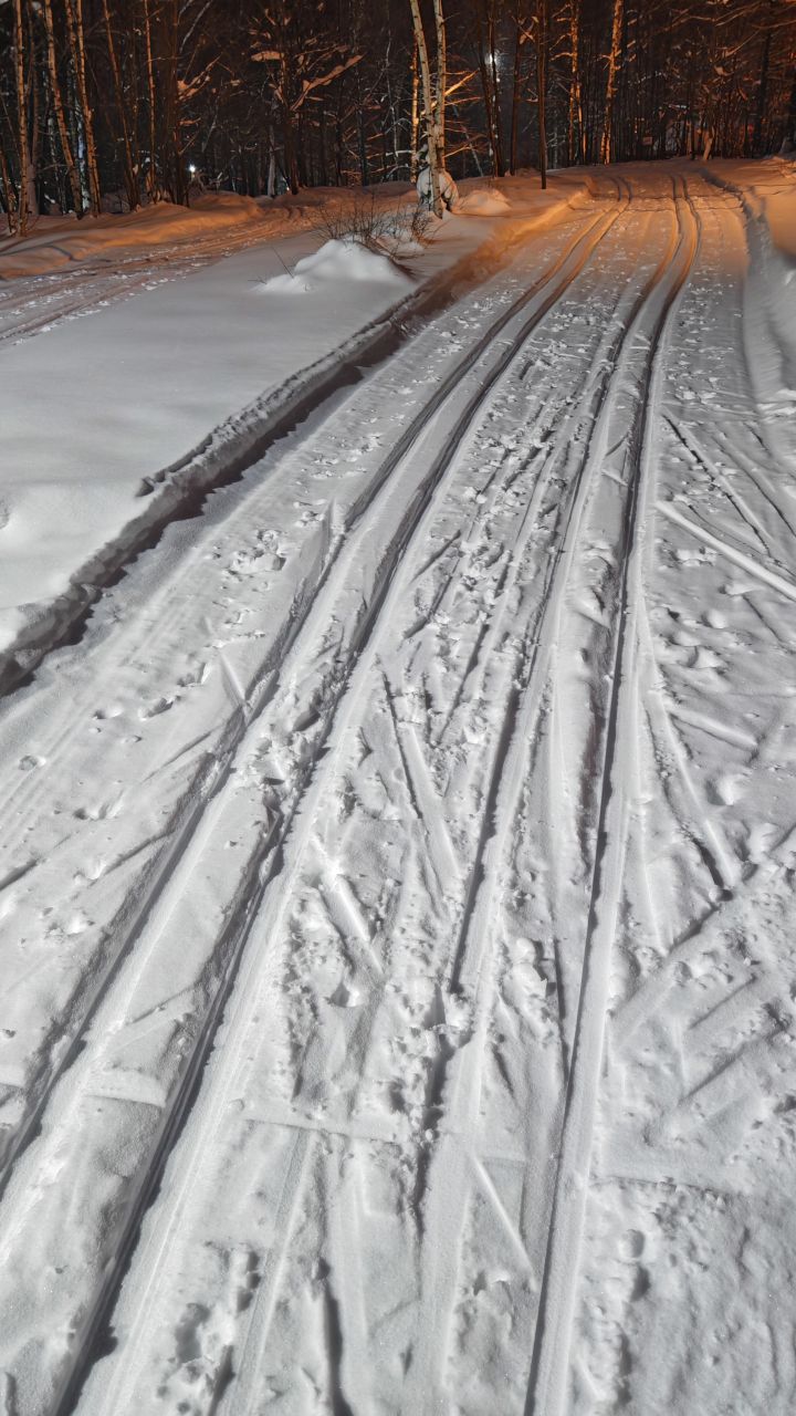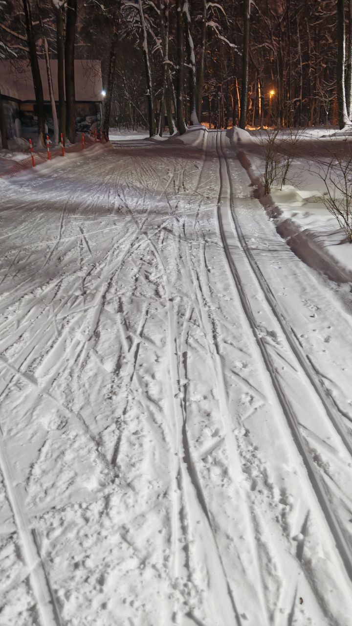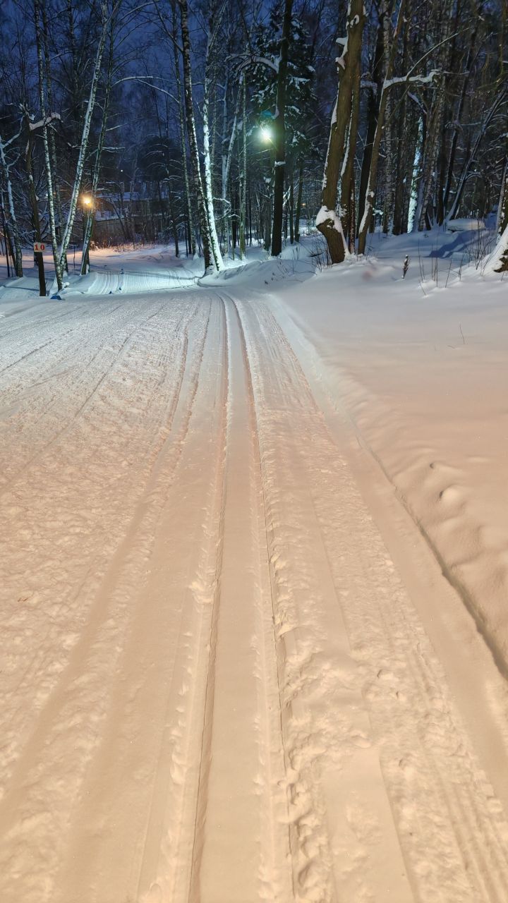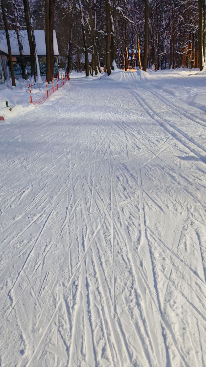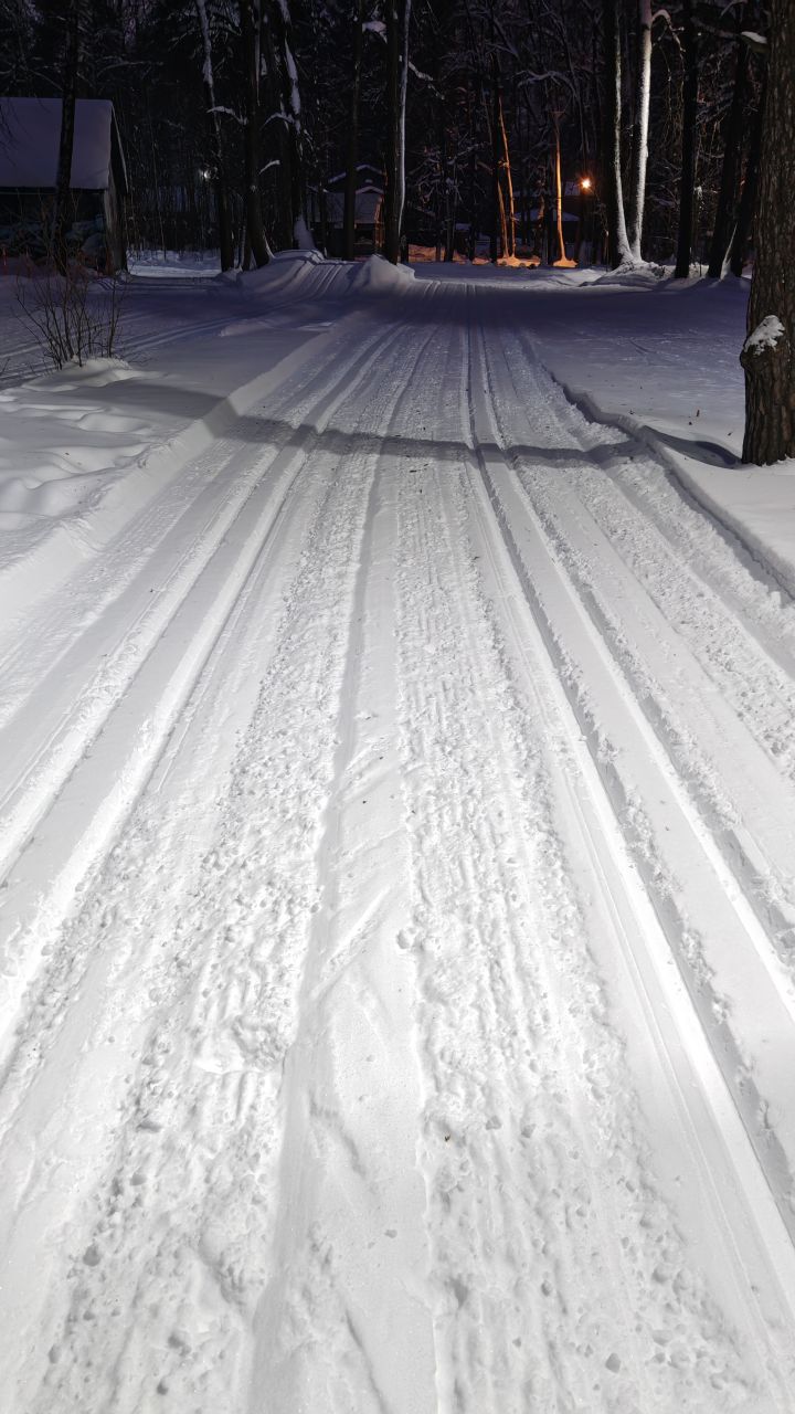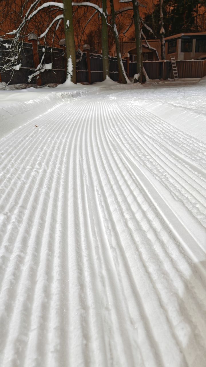 Вечером закатали свежий снег. Трасса подготовлена. И конёк, и классика. Трасса мягковата, но не критически, палки не проваливаются, лыжи не зарываются.
