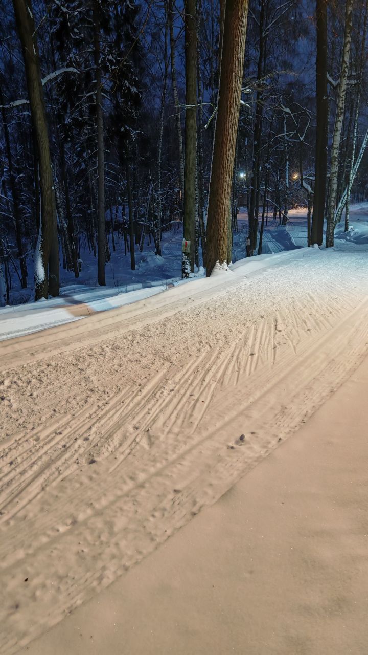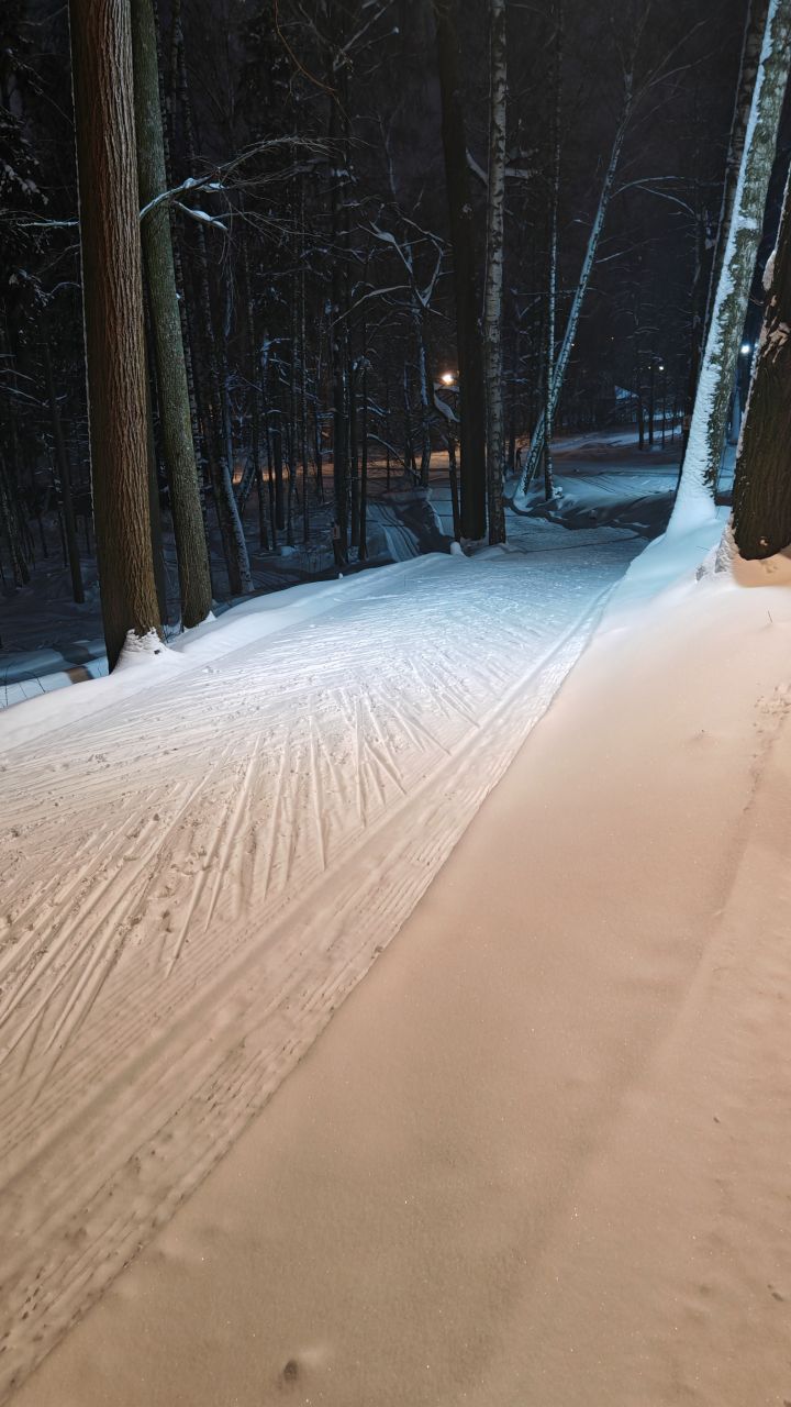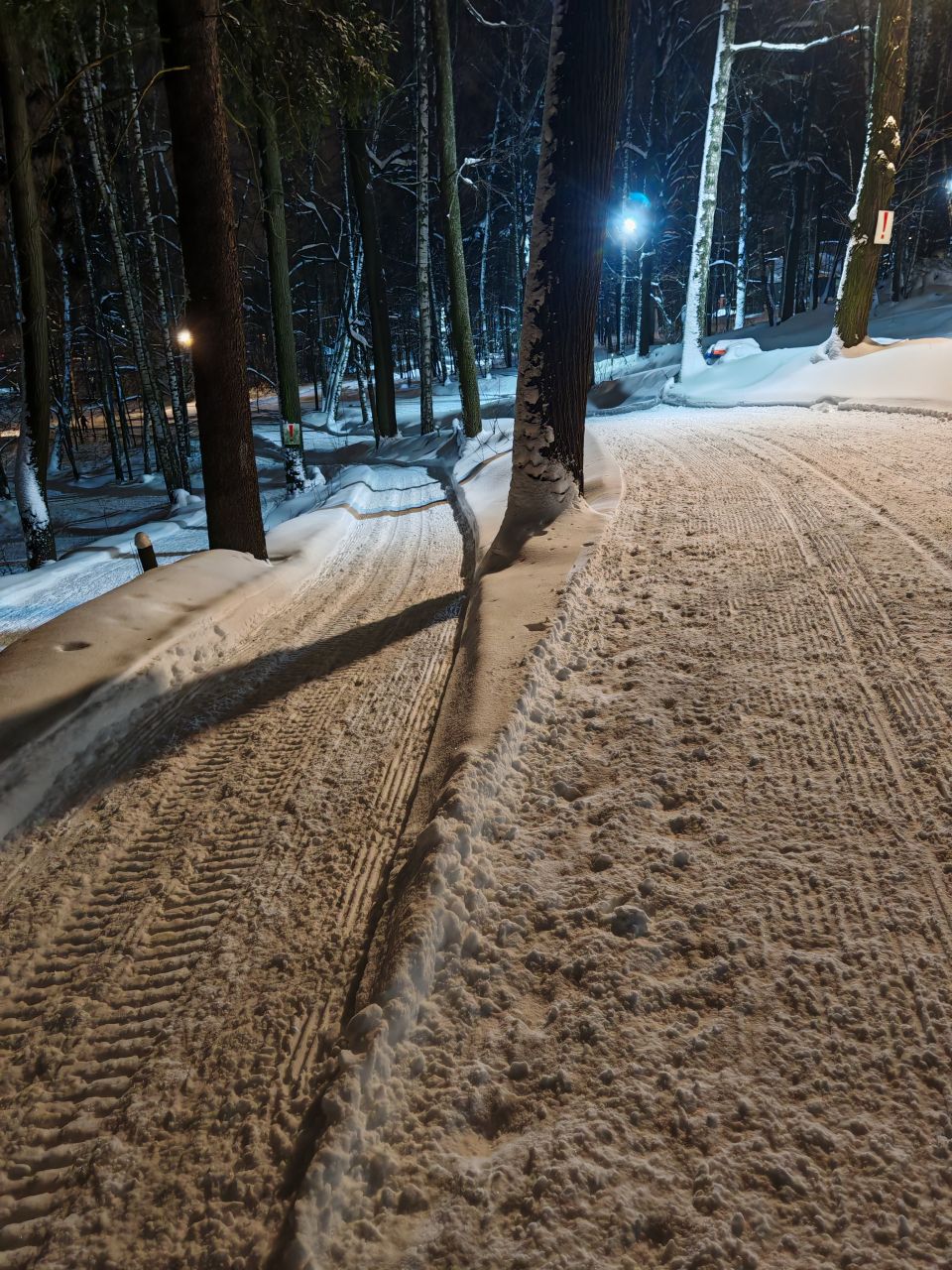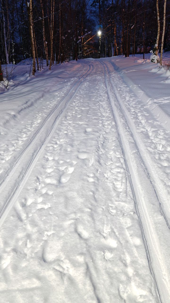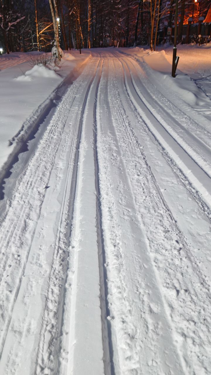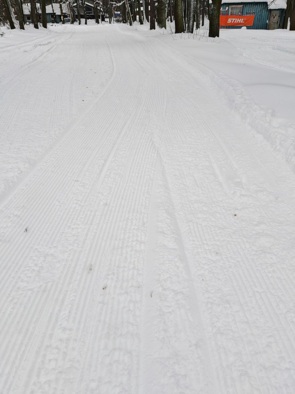 Вечером закатали свежий снег. Трасса подготовлена. И конёк, и классика. Трасса мягковата, но не критически, палки не проваливаются, лыжи не зарываются.