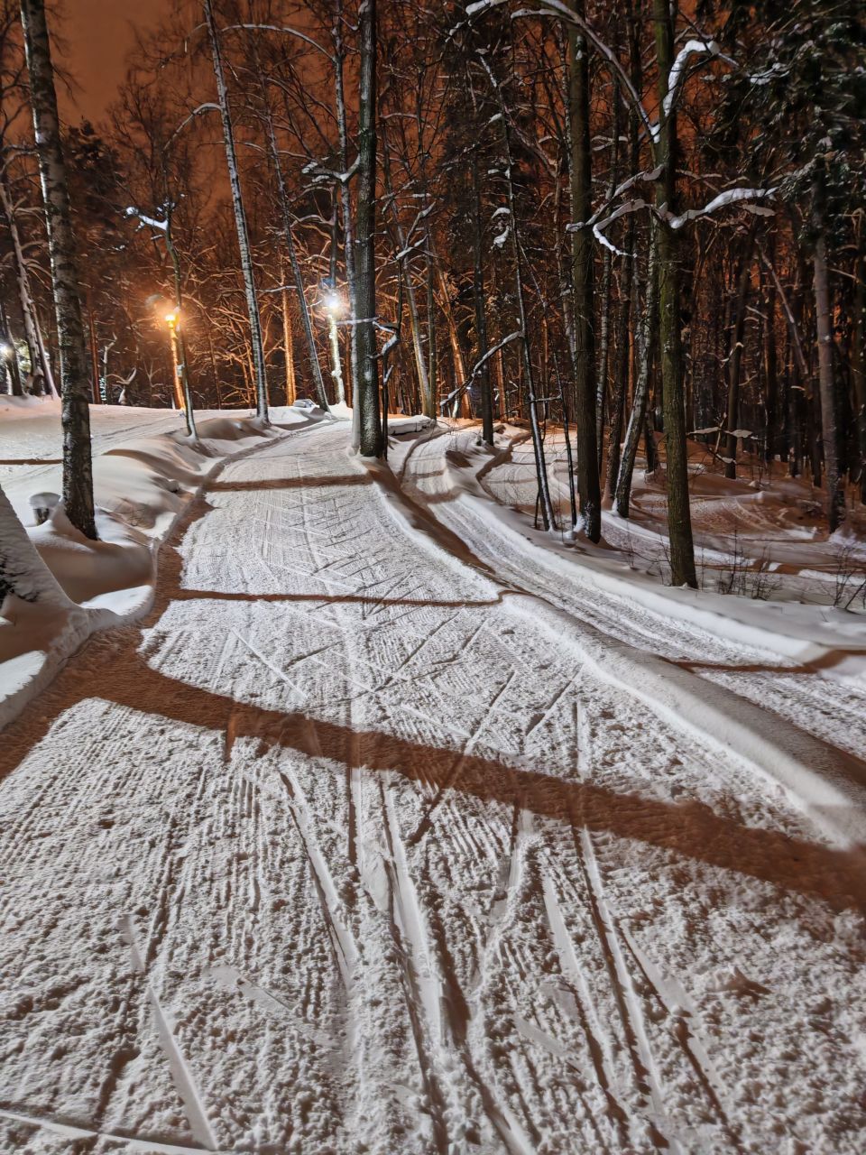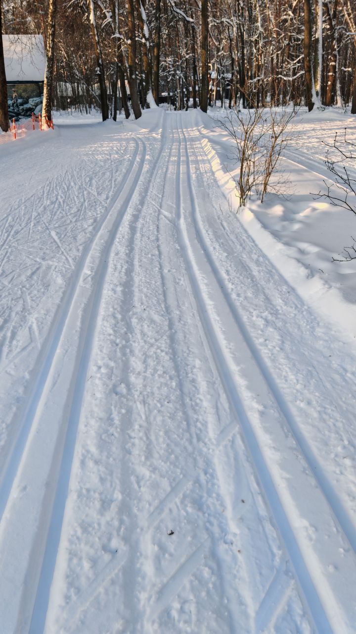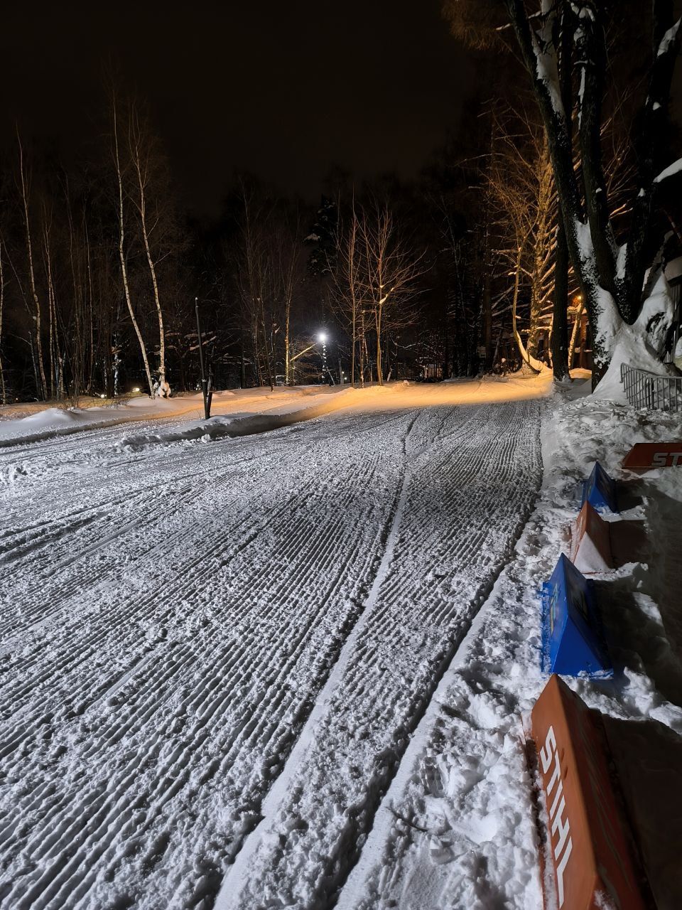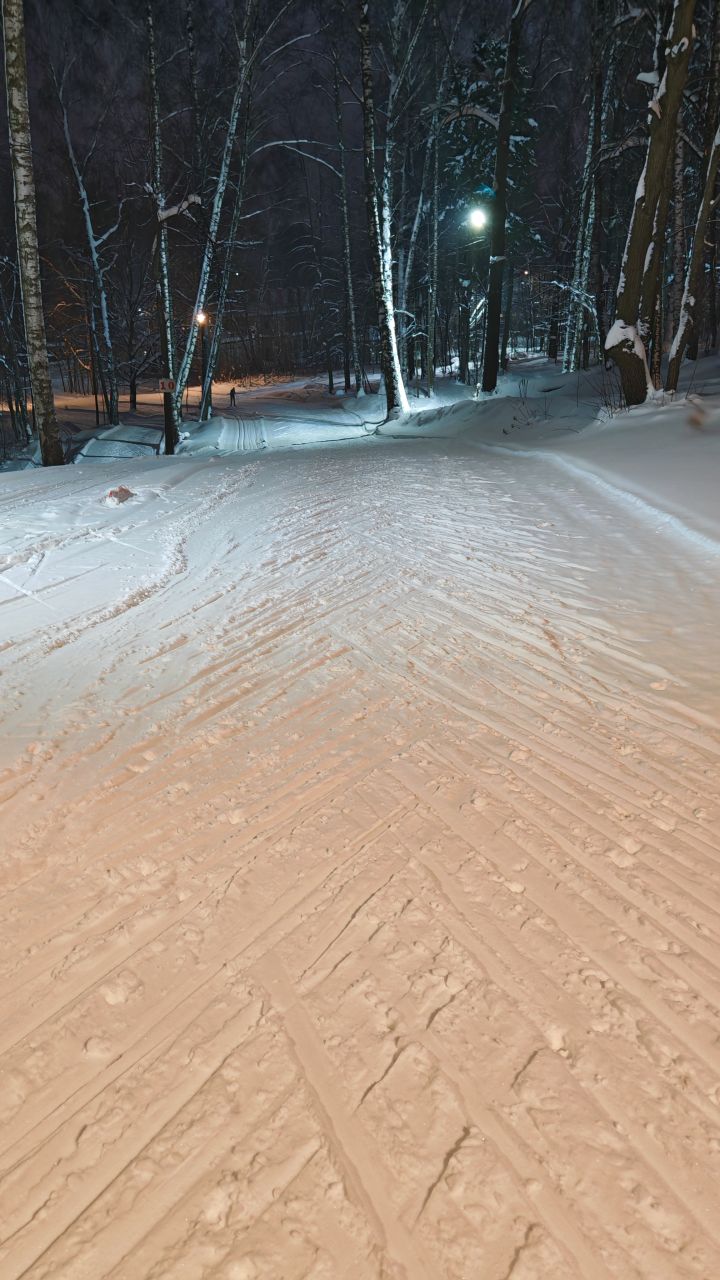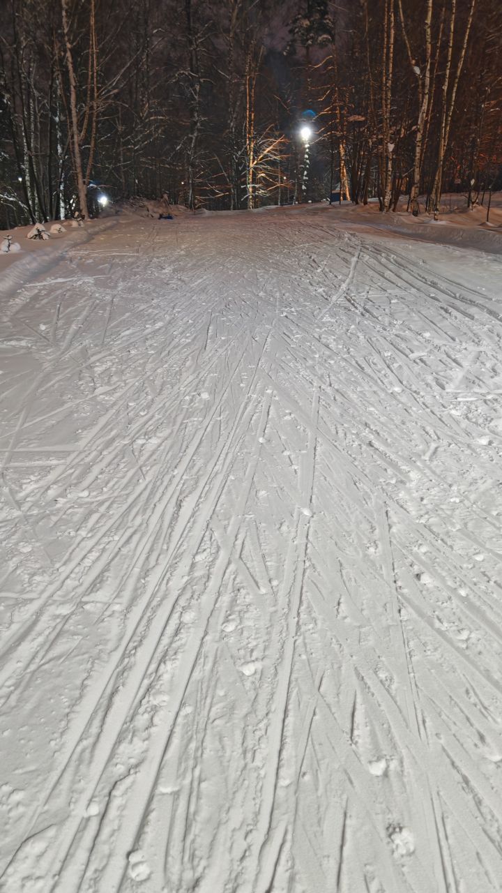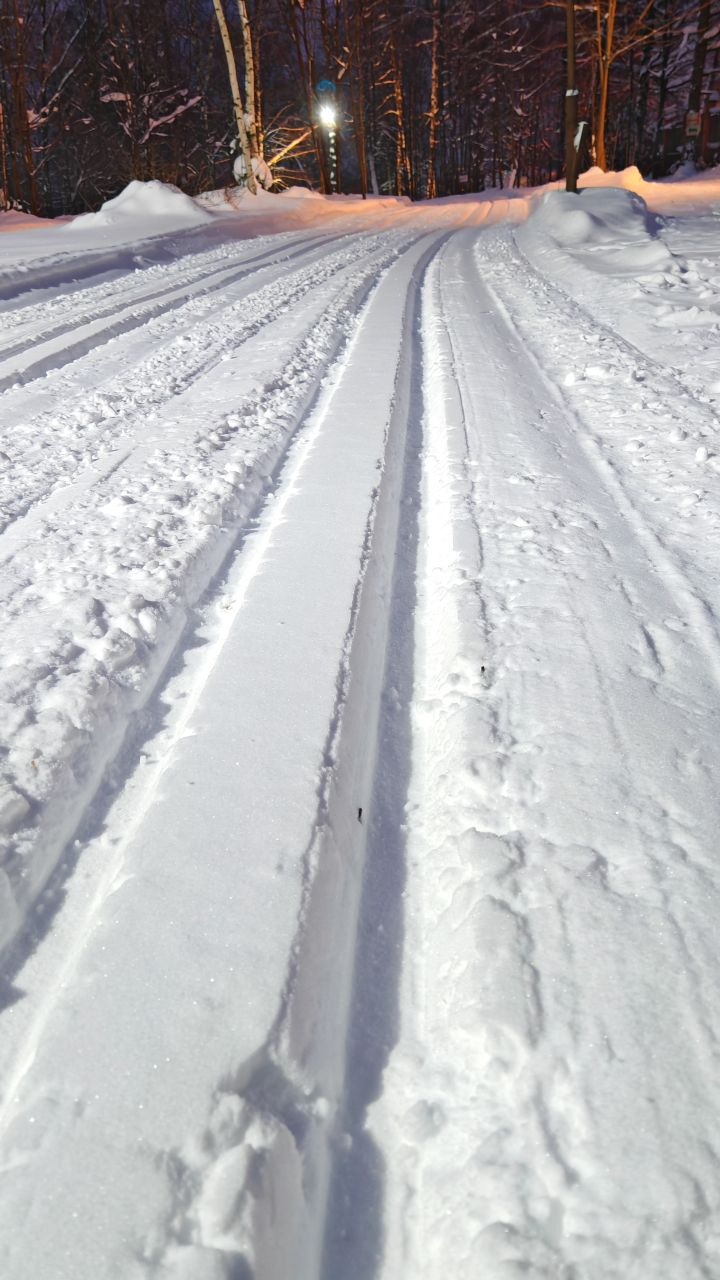 Вечером закатали свежий снег. Трасса подготовлена. И конёк, и классика. Трасса мягковата, но не критически, палки не проваливаются, лыжи не зарываются.