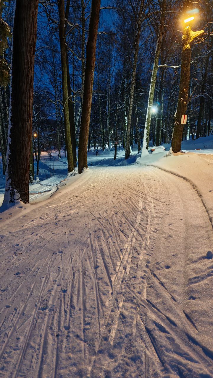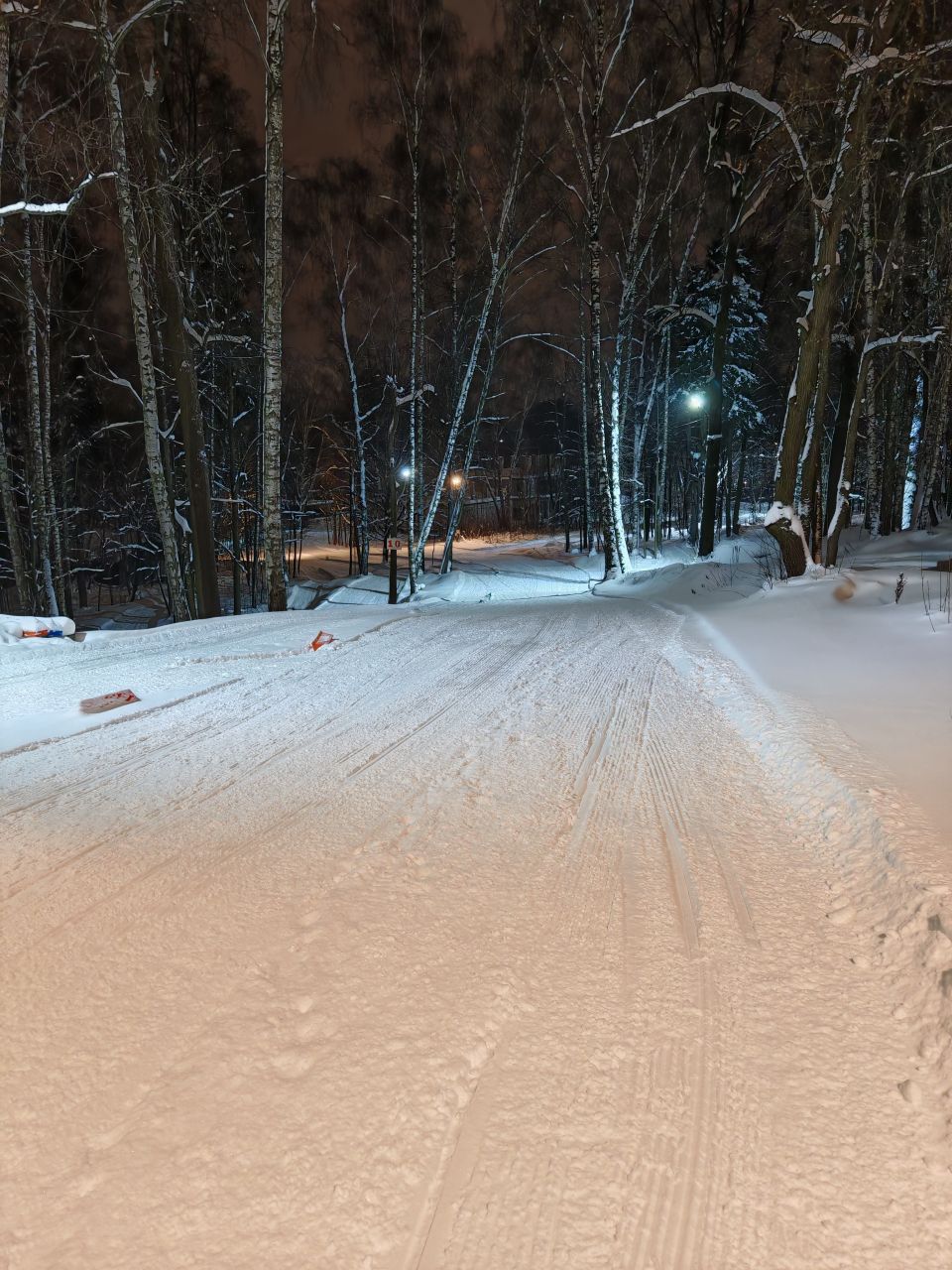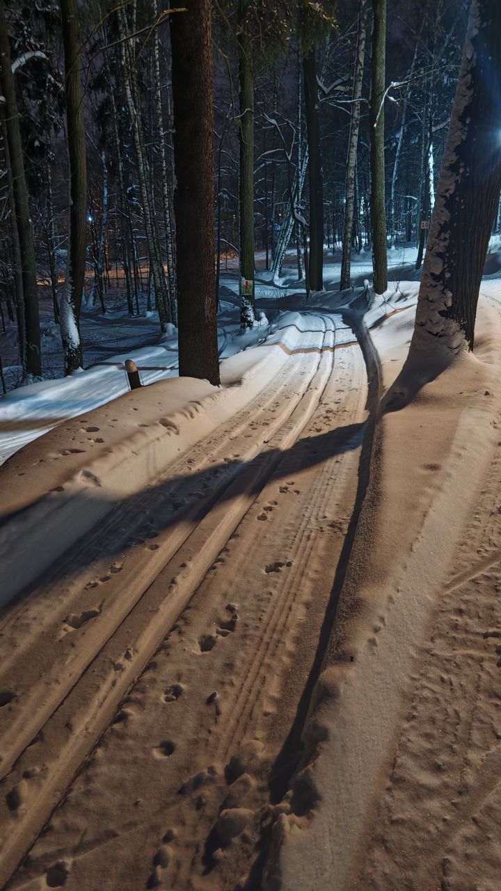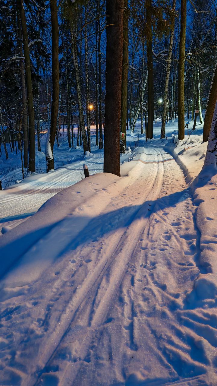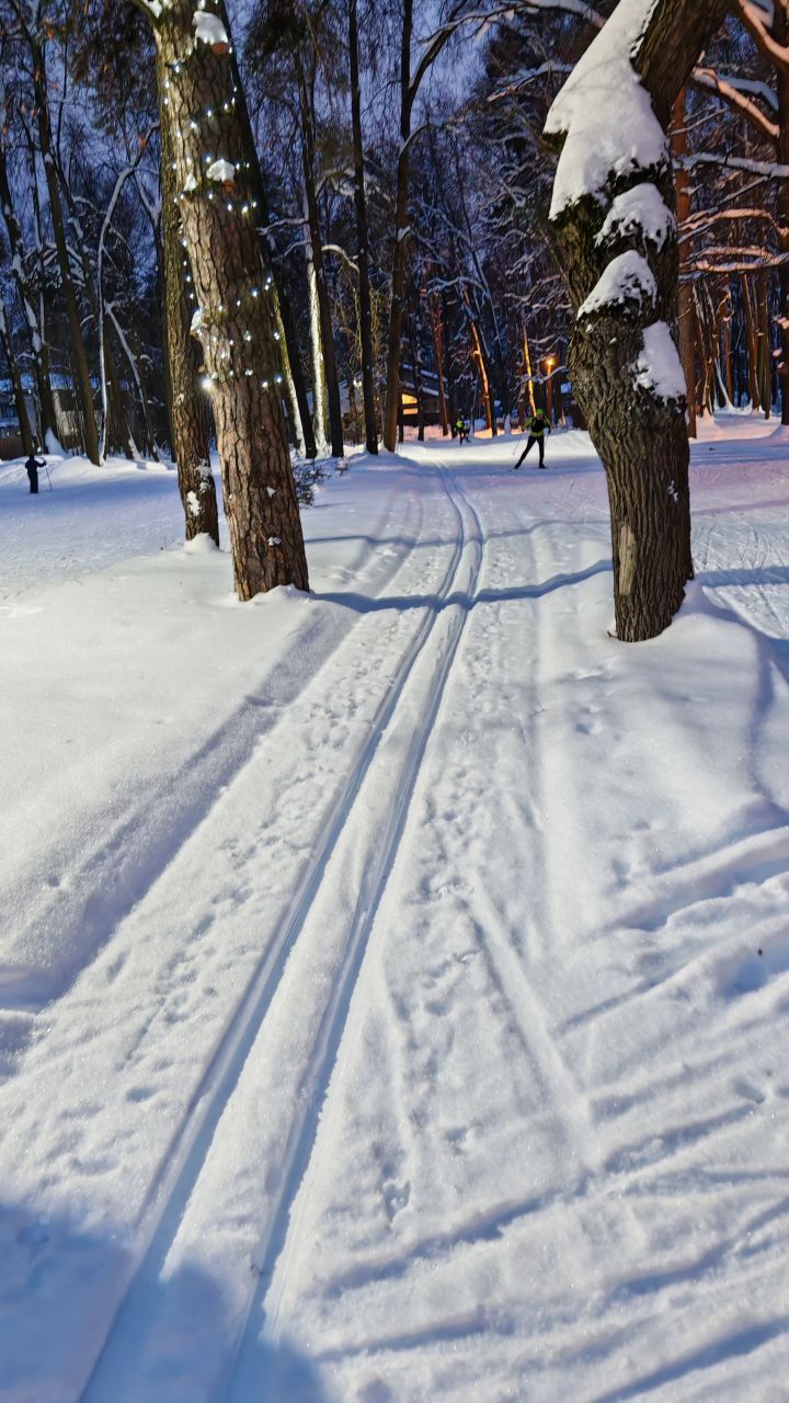 Вечером закатали свежий снег. Трасса подготовлена. И конёк, и классика. Трасса мягковата, но не критически, палки не проваливаются, лыжи не зарываются.