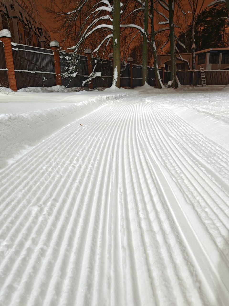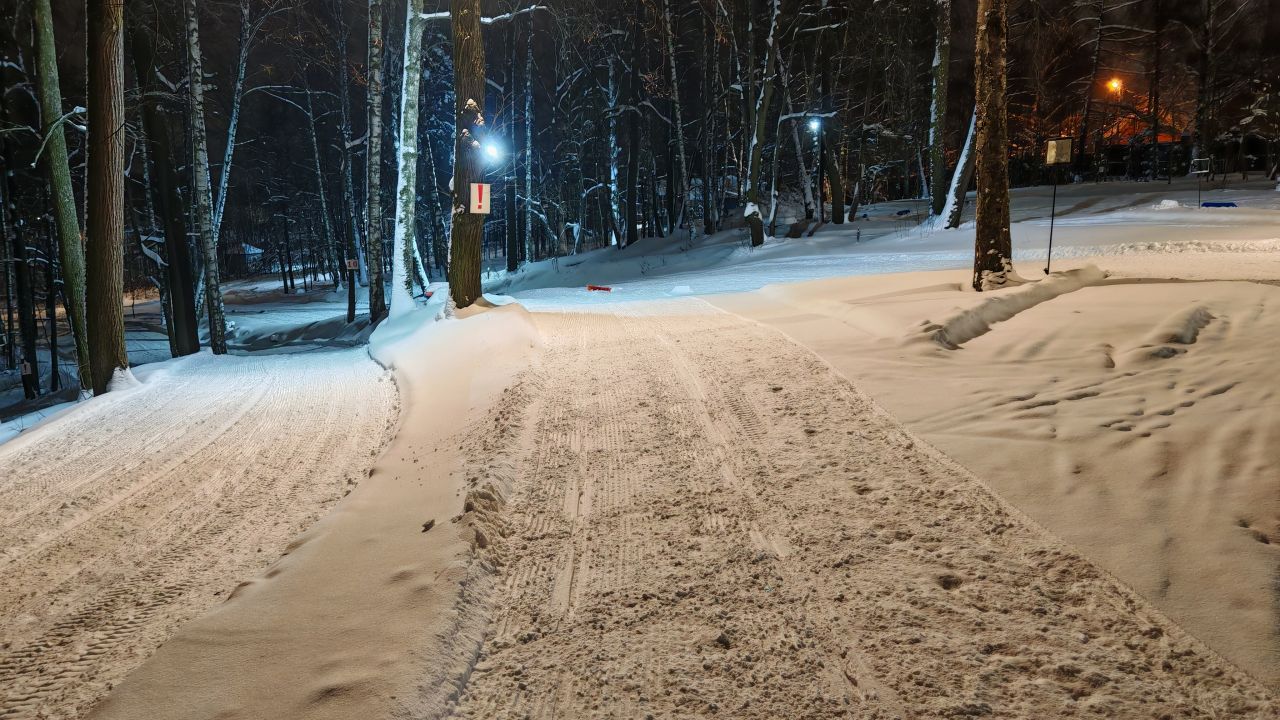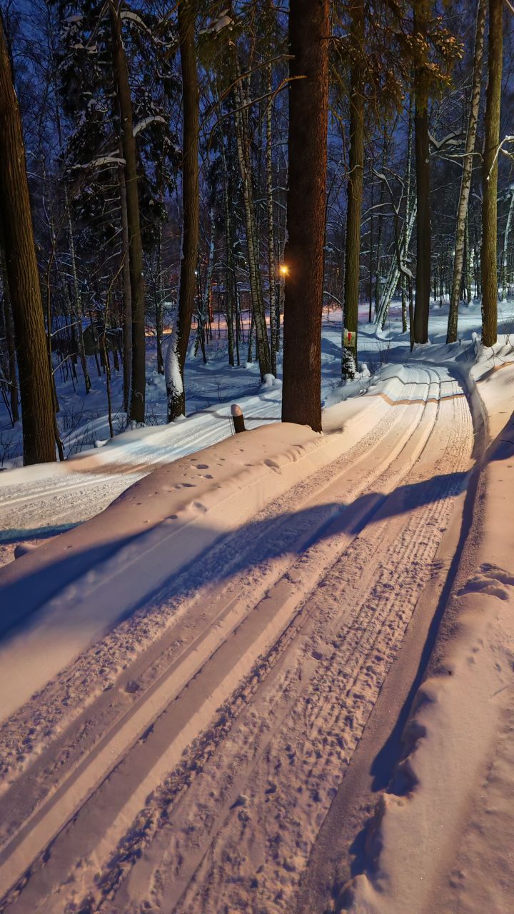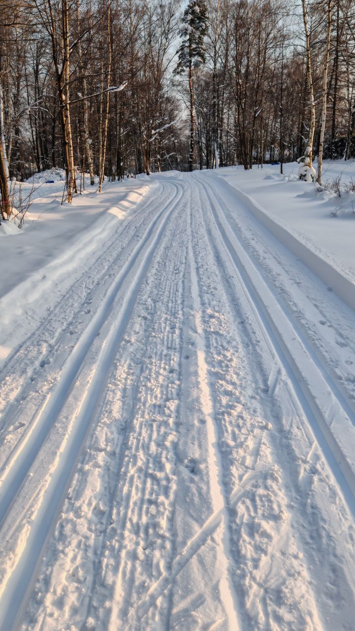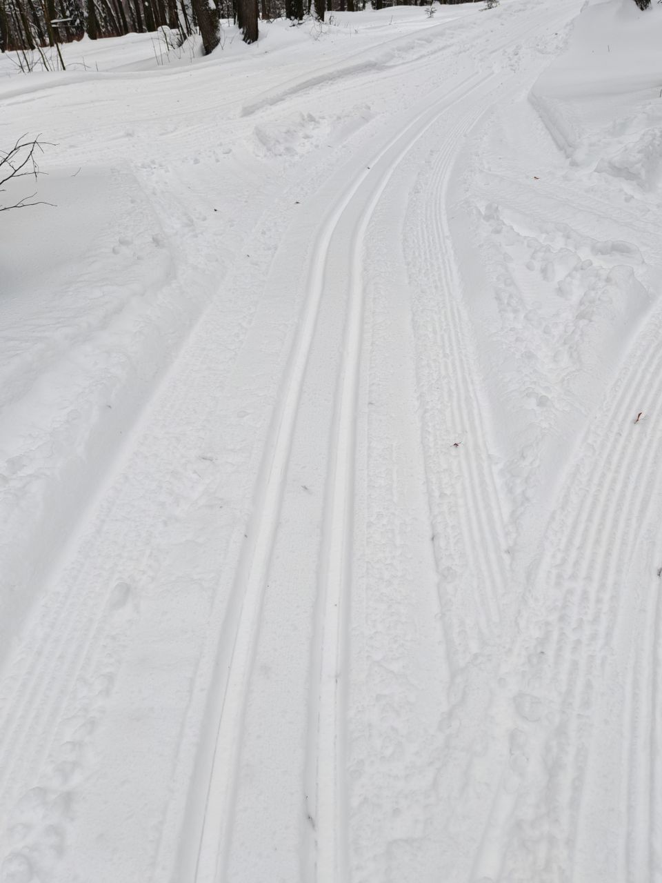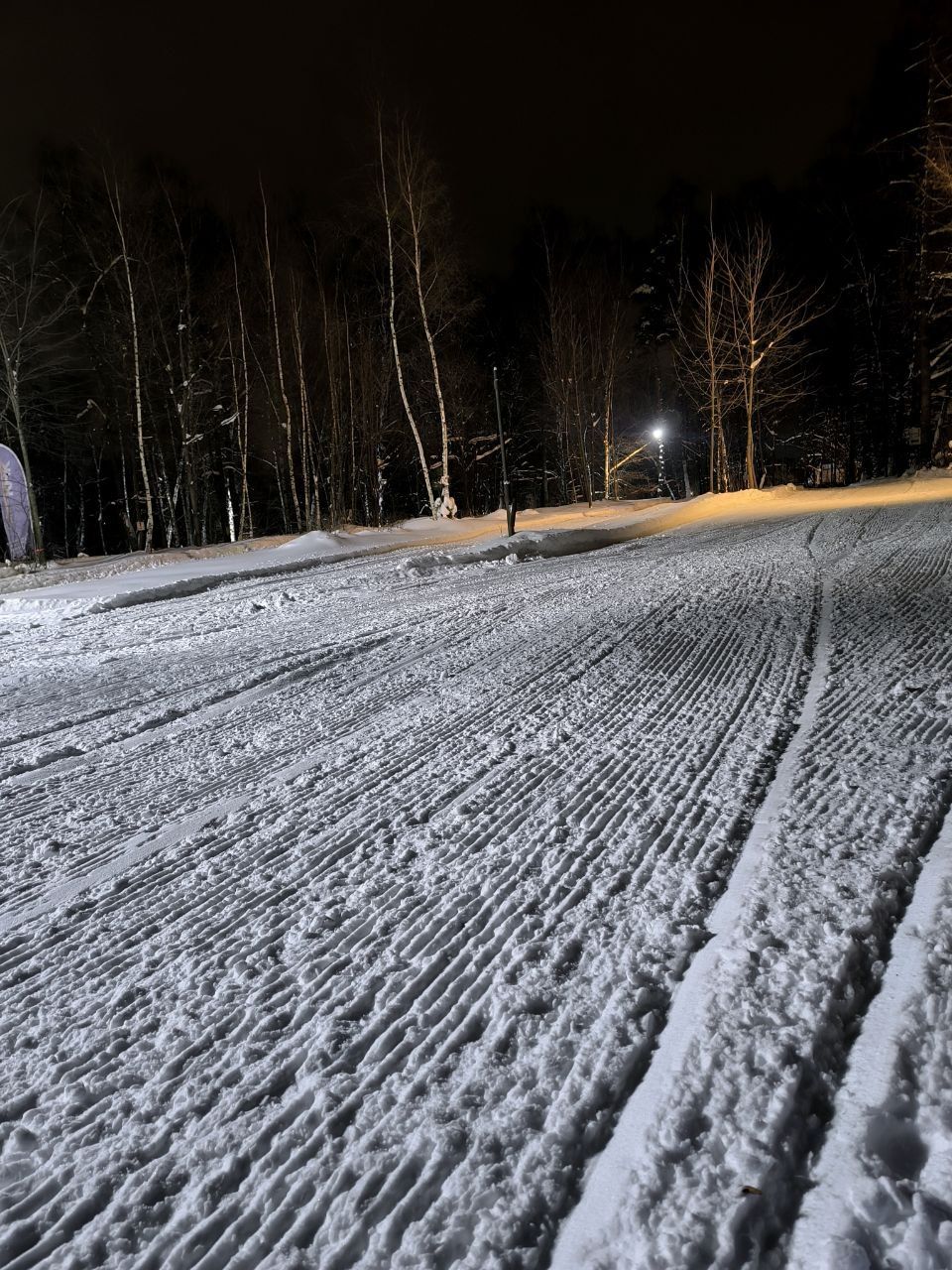Вечером закатали свежий снег. Трасса подготовлена. И конёк, и классика. Трасса мягковата, но не критически, палки не проваливаются, лыжи не зарываются.