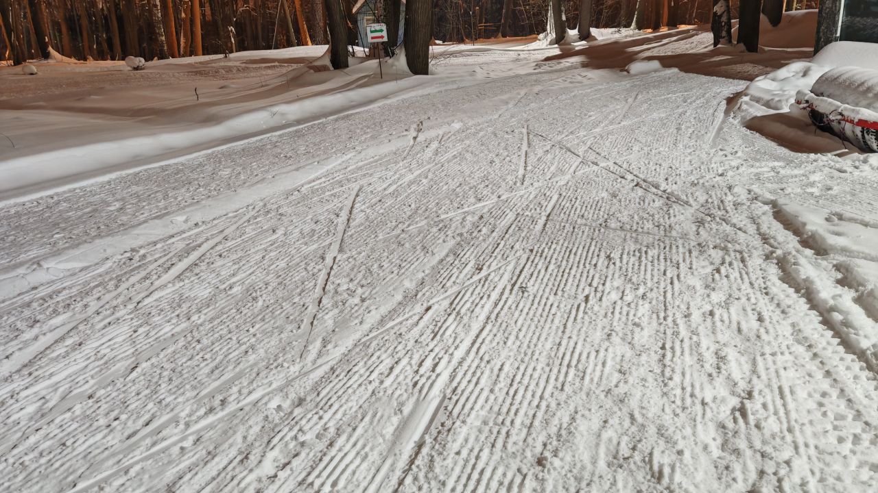 Подготовка не первой свежести. Но на качество трассы не влияет. Ровно. Без бугра. Широко. Свежий снег не критичен. Классика- на три балла.