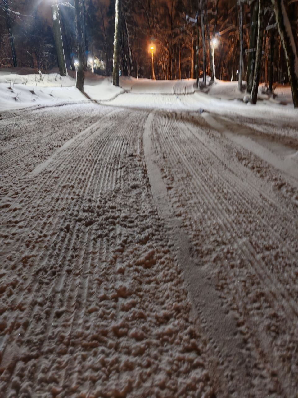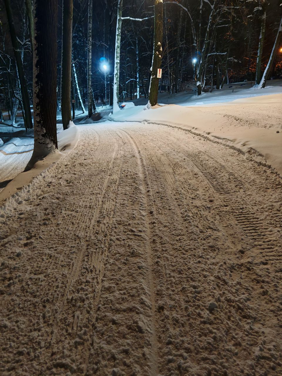Днем все спрессовали катком, а. вечером опять снег насыпал. Каша плотная приходится месить, но в сравнении со вчерашним днем - терпимо.