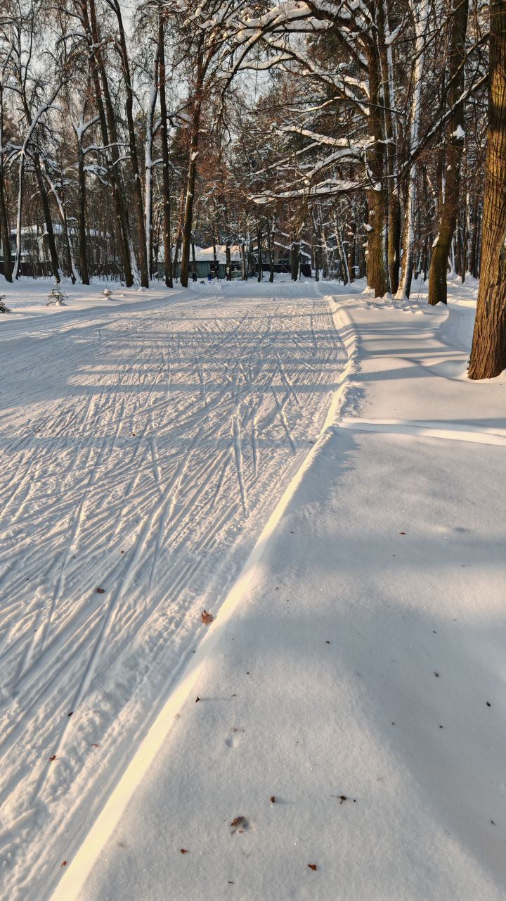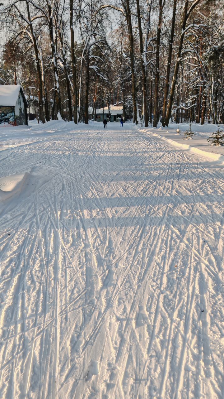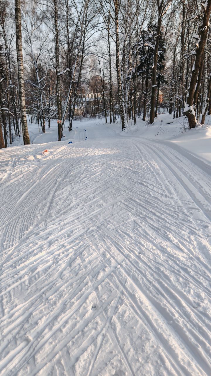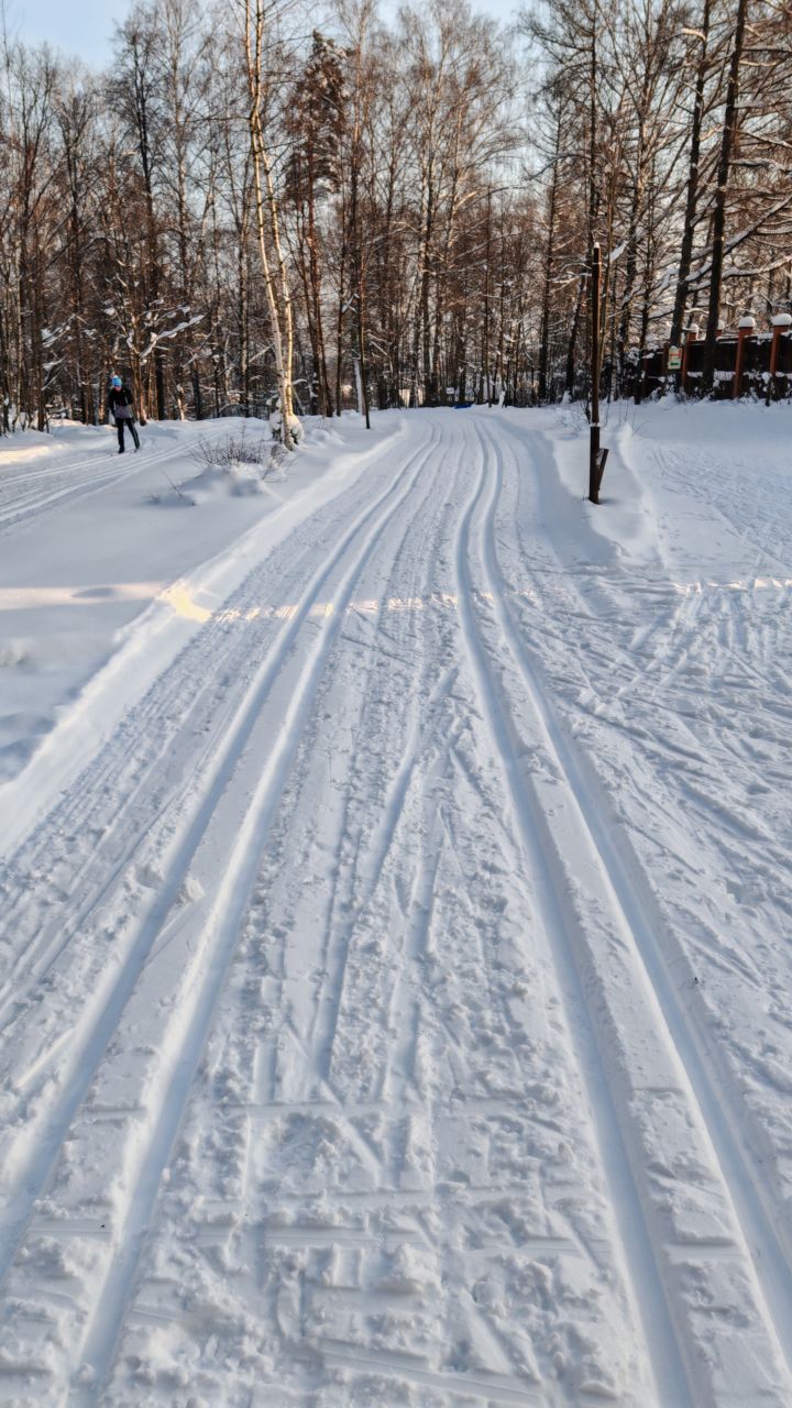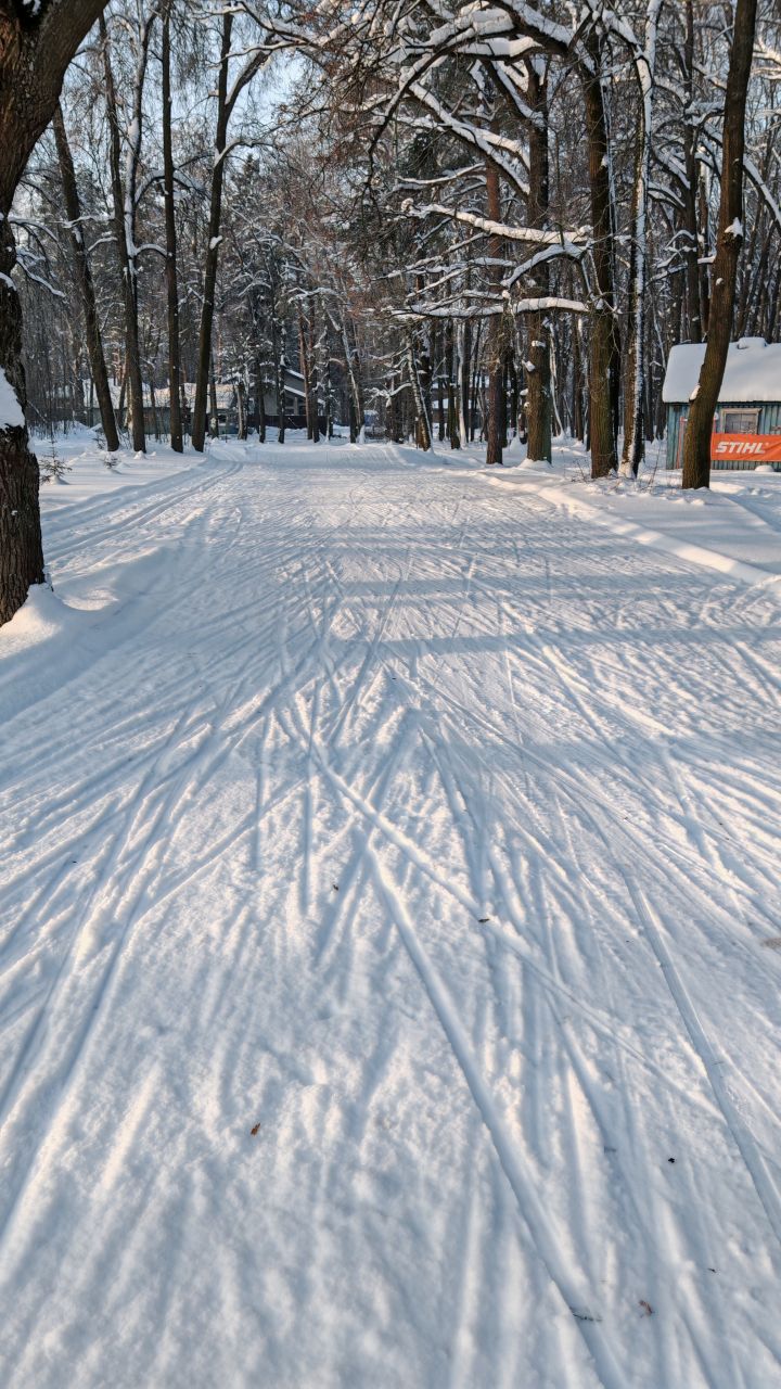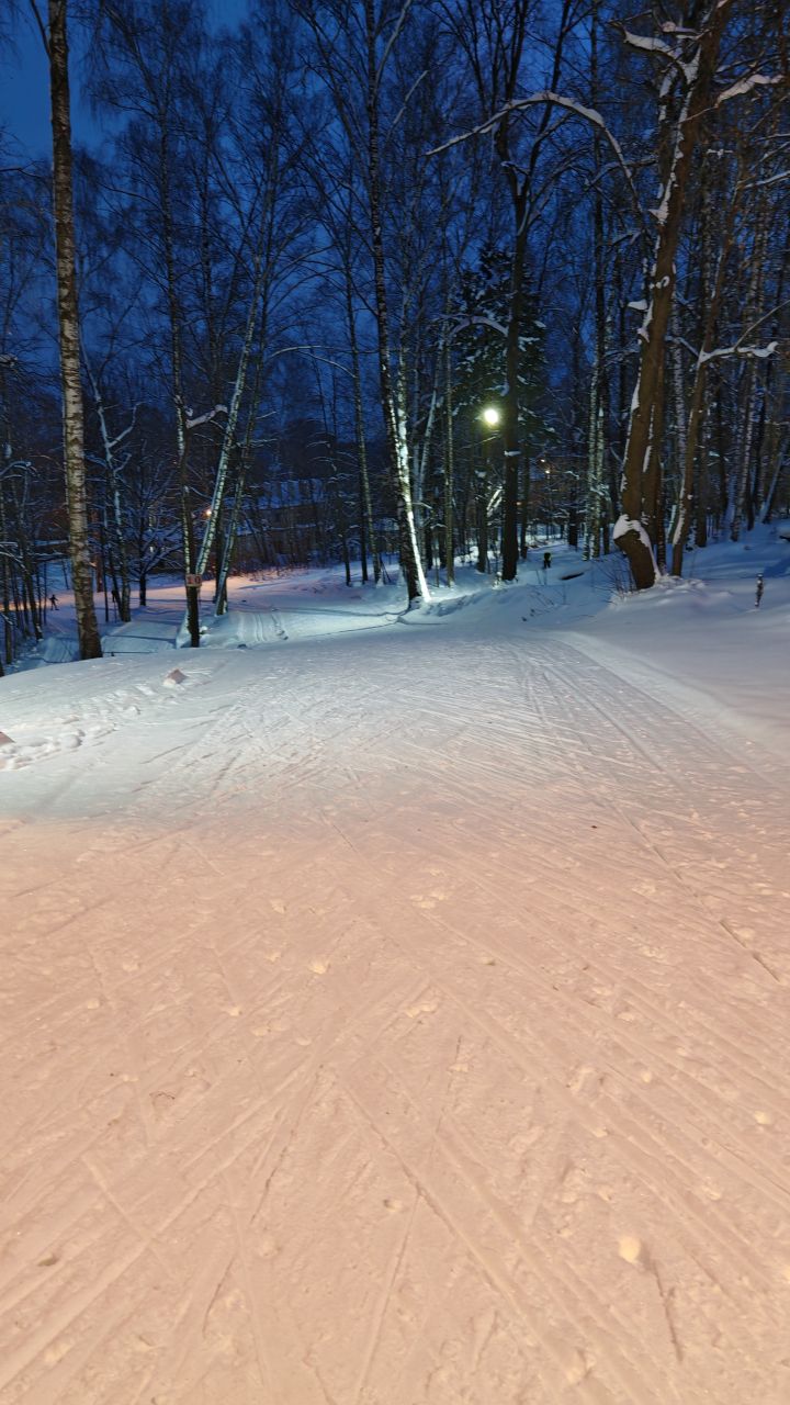С каждым днем все лучше и лучше. По полному 3км кругу на боевых лыжах, правда только коньком. Все ровно, широко, мусора нет!