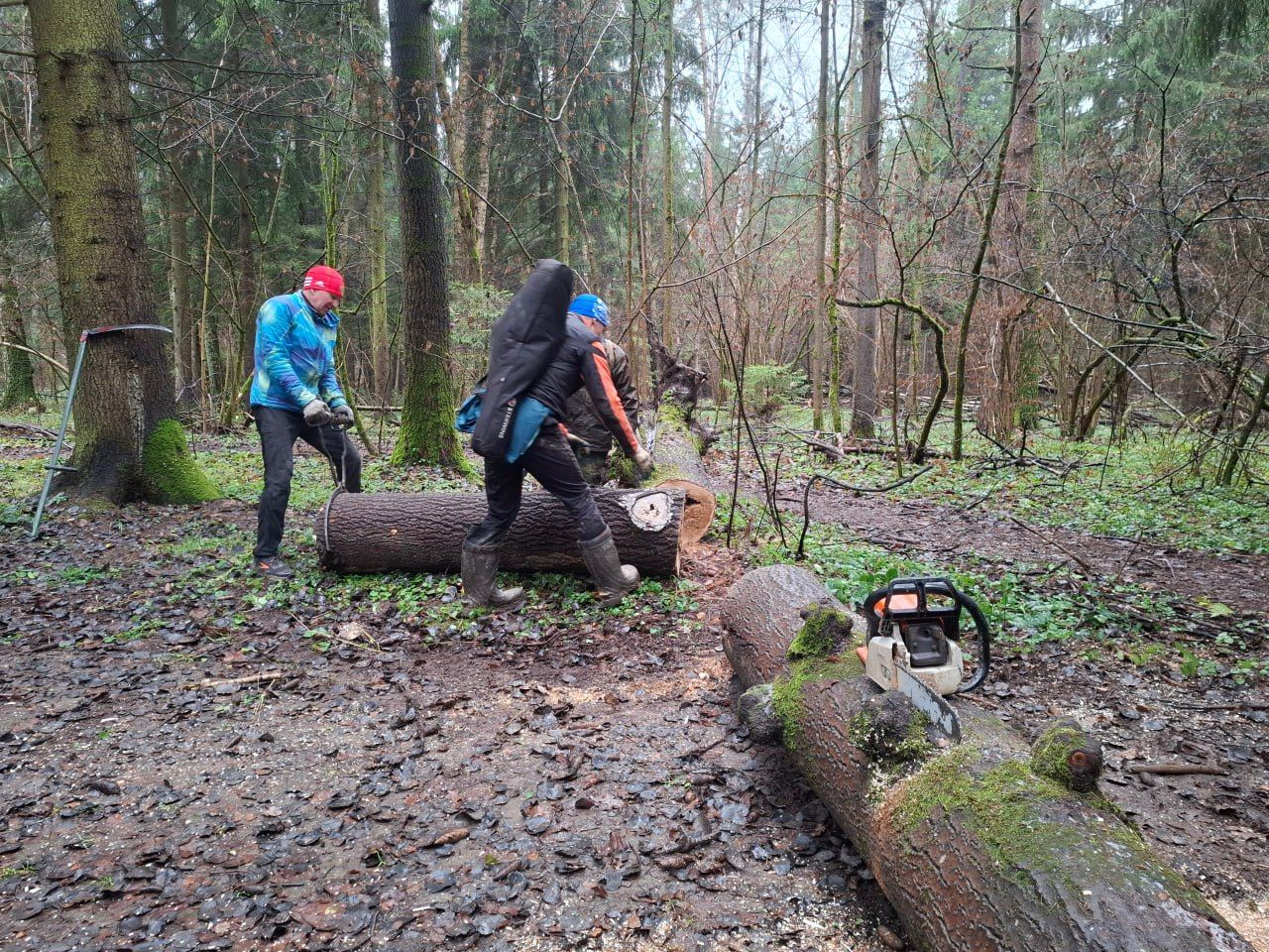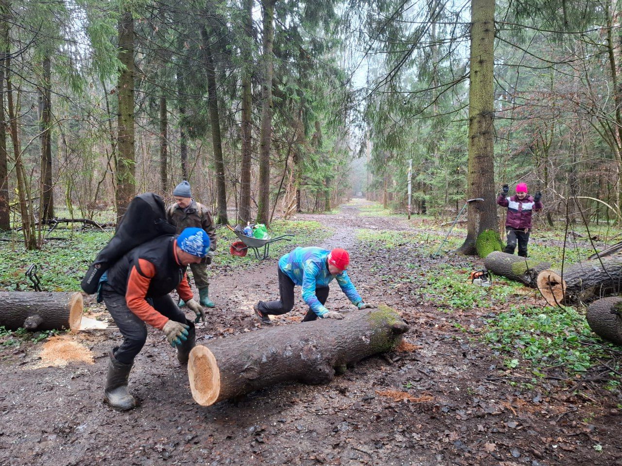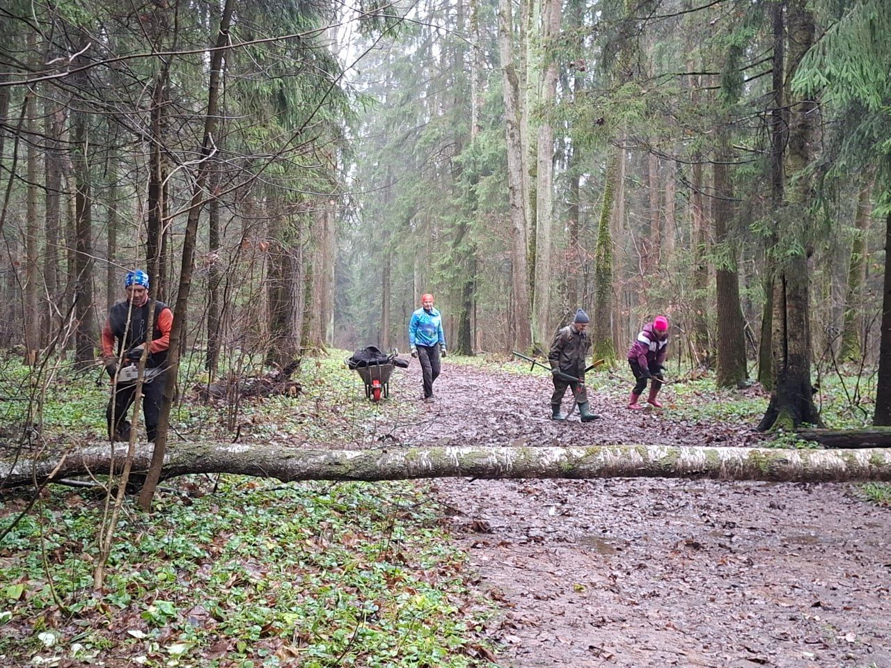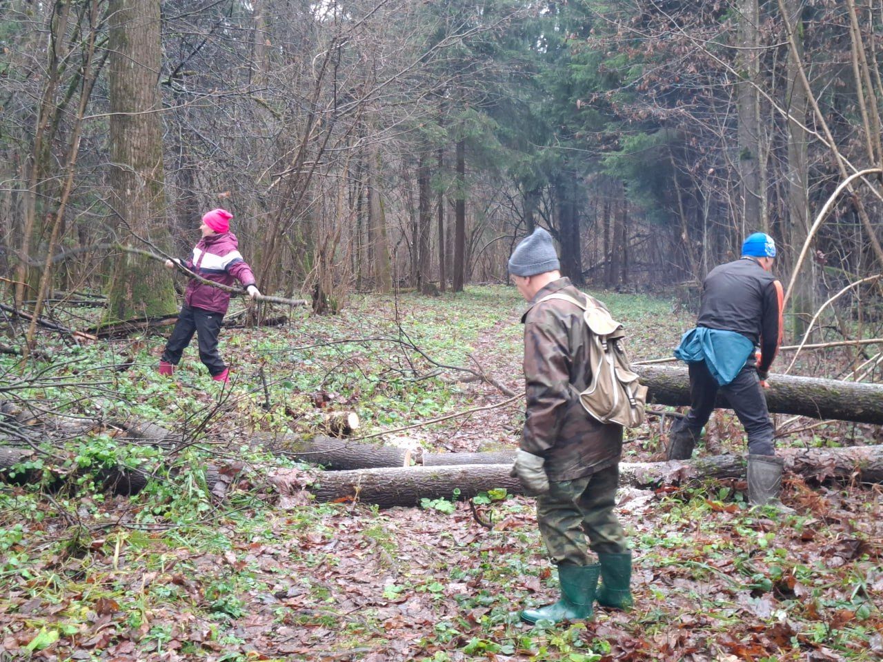 В Красногорком лесу прошел субботник по подготовке трассы к завтрашнему кроссу А. А. Карпова.