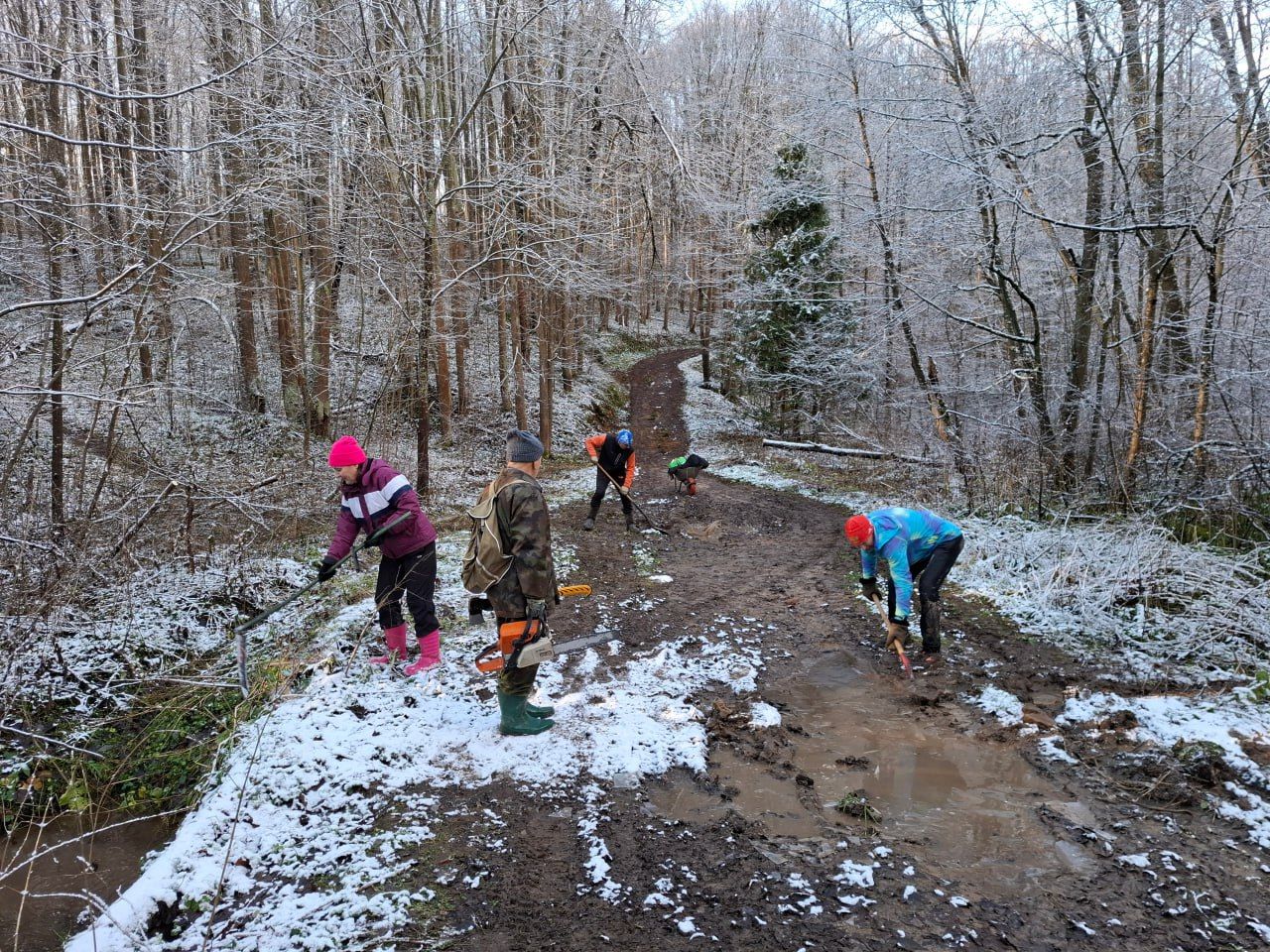 Сегодняшний субботник прошел успешно! В работах на трассе сегодня приняло участие 6 человек (3 из которых женщины!) и еще один снеговик! ☃️