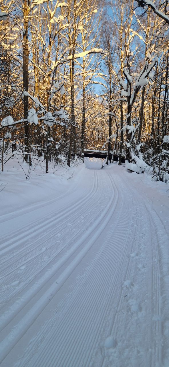 Трасса подготовлена ратраком под классику и конек❄️⛷️🌲 , сделана перемычка в лес к дачам, которую обычно прокладывают перед Касногорским марафоном. В общем, великолепно👍