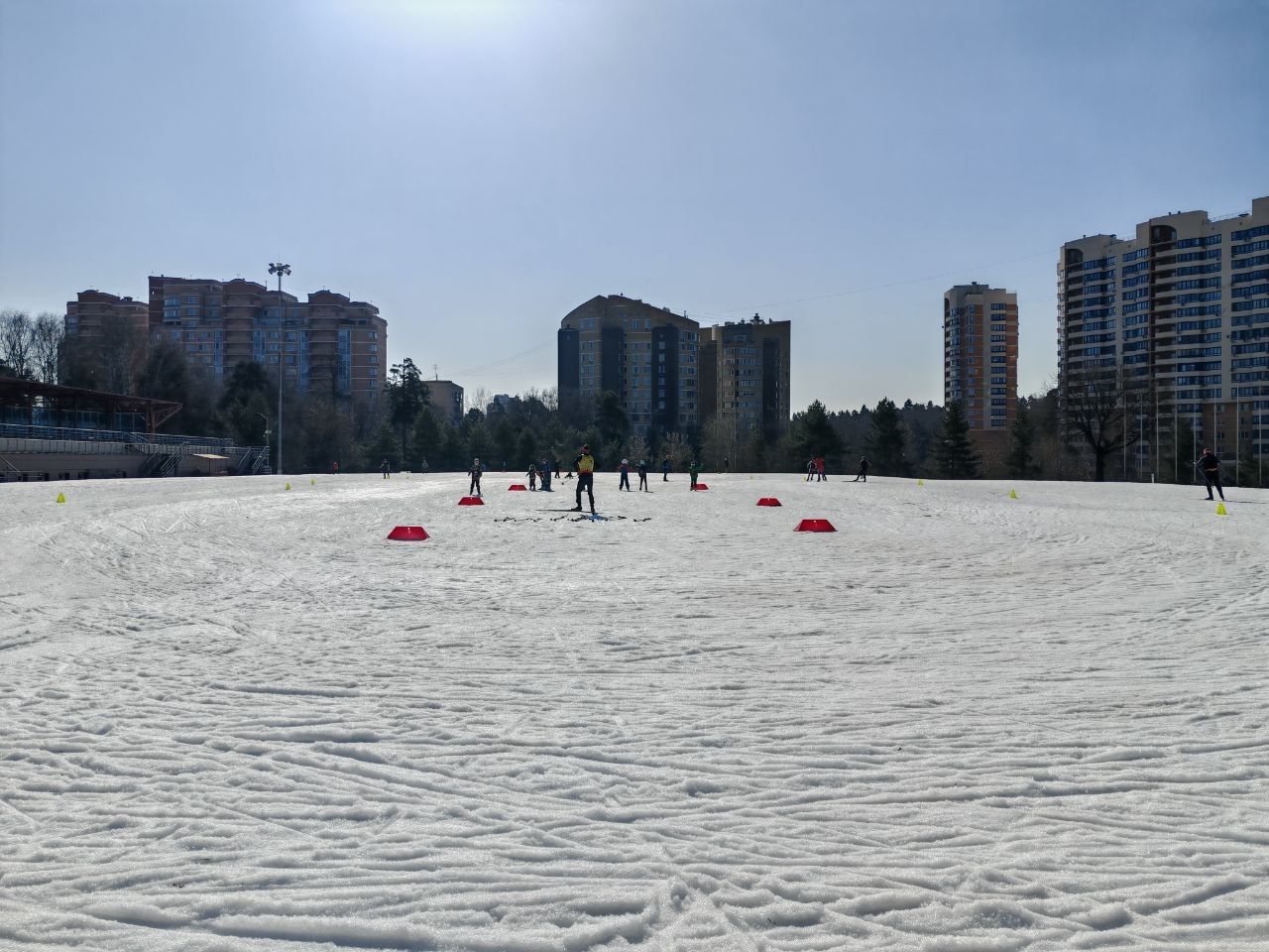 На стадионе отлично, белый снег и жаркое солнце. На обратных спусках несёт, последний подъем в тени очень жёсткий, остальные подъёмы на солнце комфортно размягчаются. Не всегда зимой так комфортно катался как сегодня. До выходных думаю продержится, слабое место нижний стадион.