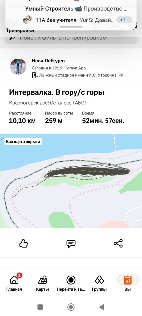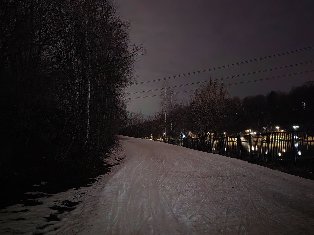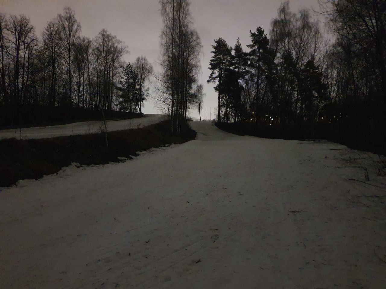 На трассе появилось много разрывов. Наверху кататься невозможно из-за каких-то больших масляных цветных пятен на снегу, которые останавливают лыжи. В итоге покатался в гору/с горы на северном склоне со стороны плотины. И это закрытие сезона. На лыжном стадионе больше делать нечего!